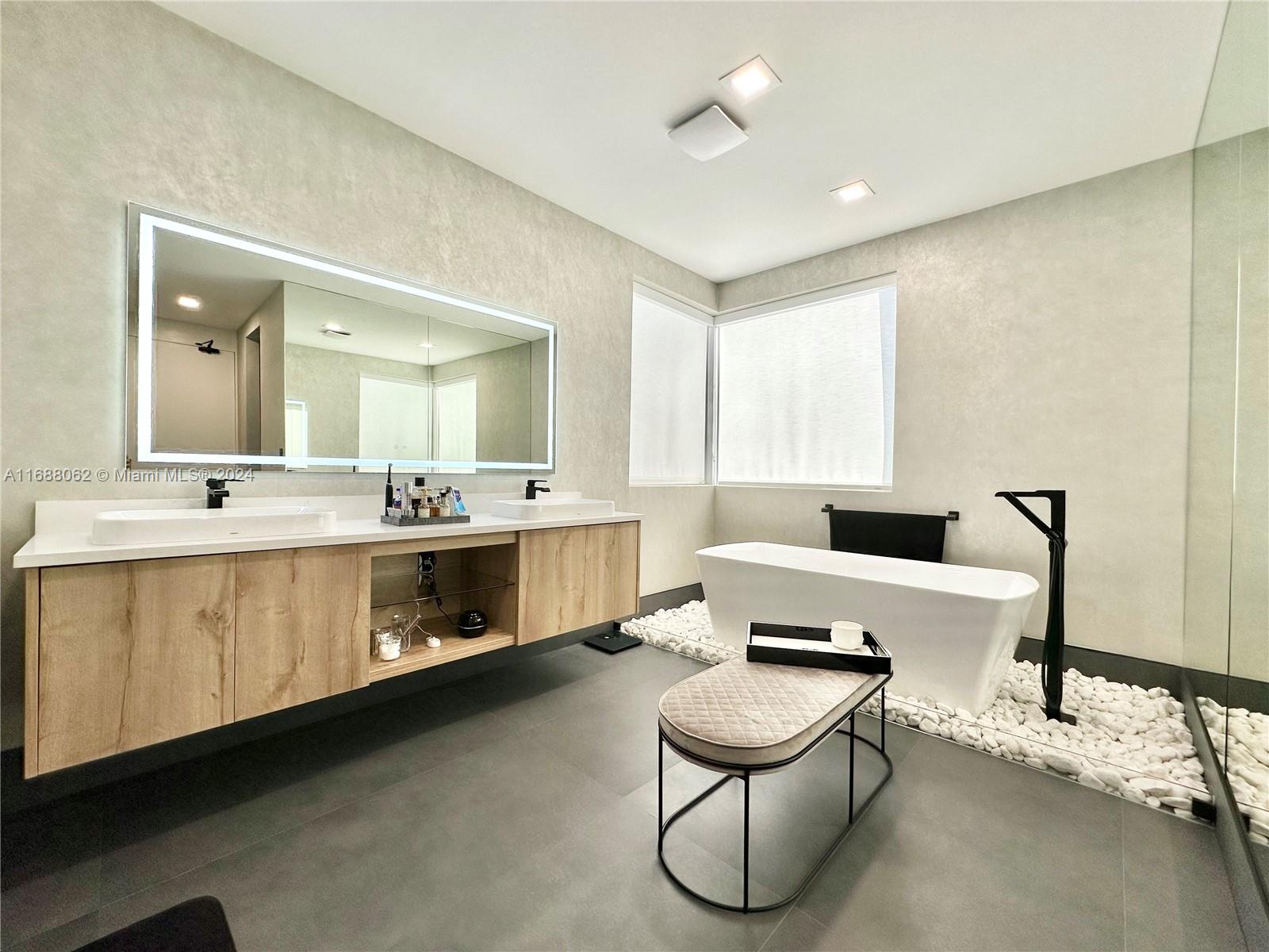 For sale in the exclusive Modern Doral 45 community. This fully renovated 5-bedroom, 5-bathroom home blends elegance and functionality. Fully remodeled, it features Italian porcelain floors, a new heated pool, and modern bathrooms and kitchen. The property boasts impact windows, a glass balcony and staircase, and motorized blackout curtains. Enjoy advanced amenities such as a gas-powered kitchen, LED lighting, electric car charging, and a high-tech camera system. With a 4-car driveway and 2-car garage, it accommodates up to 6 vehicles. A unique opportunity for luxury living in Doral, surrounded by a wealth of amenities, shopping centers, restaurants, highly rated A+ public and private schools, and much more. Enjoy the convenience of quick access to Miami's most important highways.
