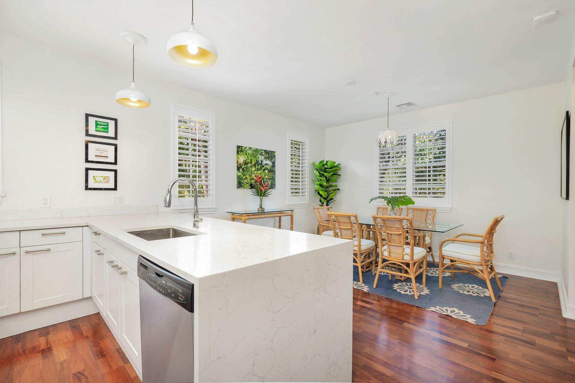 Beautiful 3 bedroom, 3.5 bath townhouse in Magnolia Court on leafy Olive Ave at the North end of El Cid historic district. Features 9+ ft ceilings on 3 levels, this home is spacious and sunny - a rare, oversized end unit overlooking the pool and a block from the Intercoastal. Short distance to many popular restaurants, markets and shopping venues. A 5 minute bike ride will take you over Middle Bridge to the heart of Palm Beach.