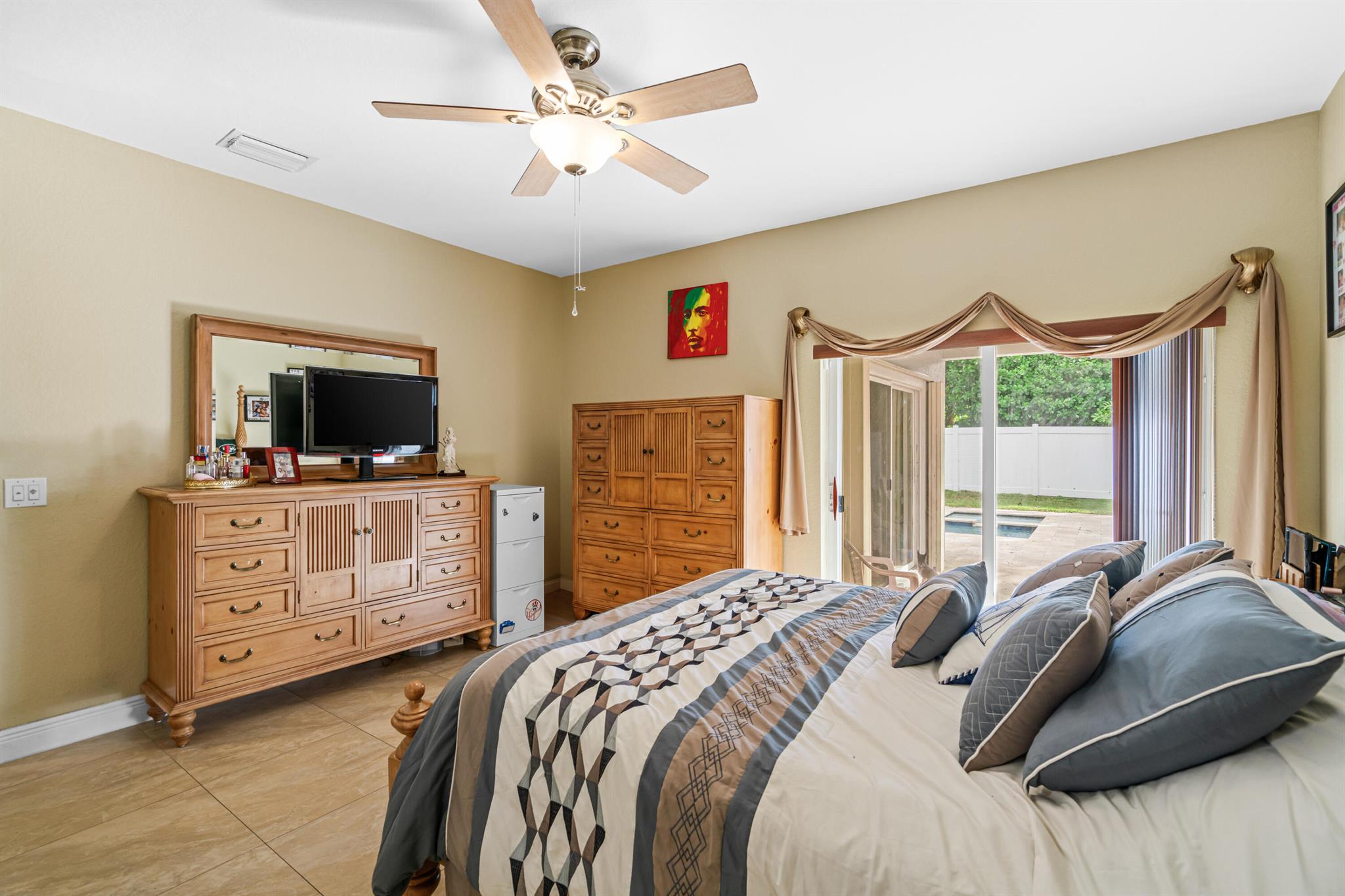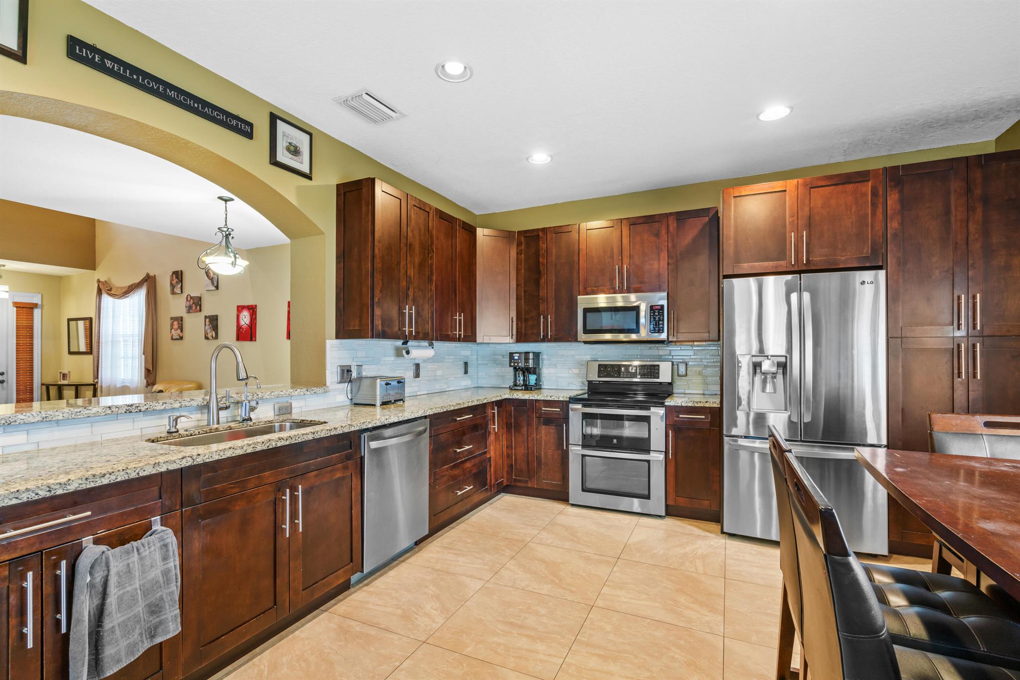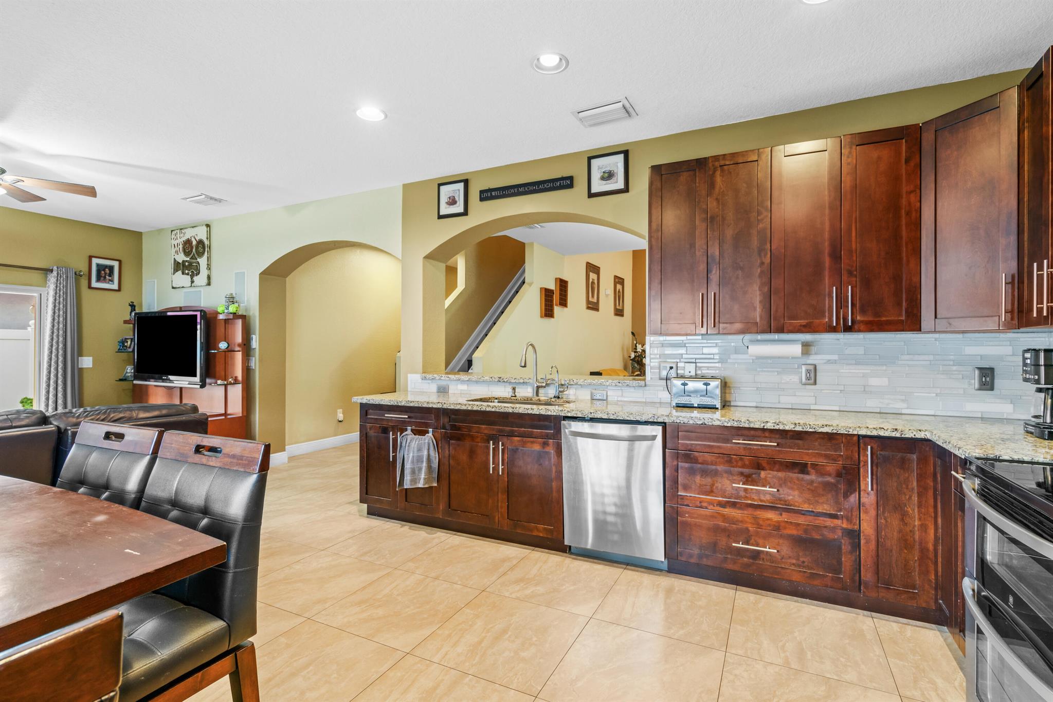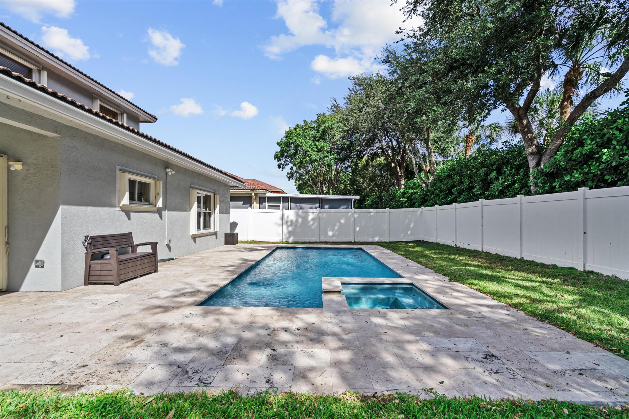 Set in the sought-after Walnut Creek community of Pembroke Pines, this refined two-story home spans 2180 sq ft w/ 4 bedrooms, 2 and a half baths, & a spacious 3-car garage. Community perks include a pool, playground, & clubhouse, ideal for an active lifestyle. Inside, tile flooring flows through the main level's airy layout, complemented by vaulted ceilings & stylish arched wall cutouts. The gourmet kitchen shines w/ granite countertops, stainless steel appliances & rich wood cabinetry. The primary suite, w/ direct pool access, offers serene luxury, while the private, fenced backyard boasts an electric-heated saltwater pool, spa & a covered patio for ultimate relaxation or entertaining. Upstairs, bedrooms feature a flex space for versatile use & a full bath w/ double vanities.