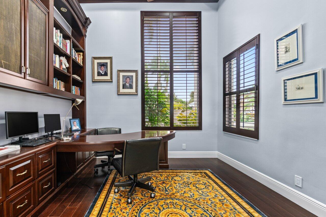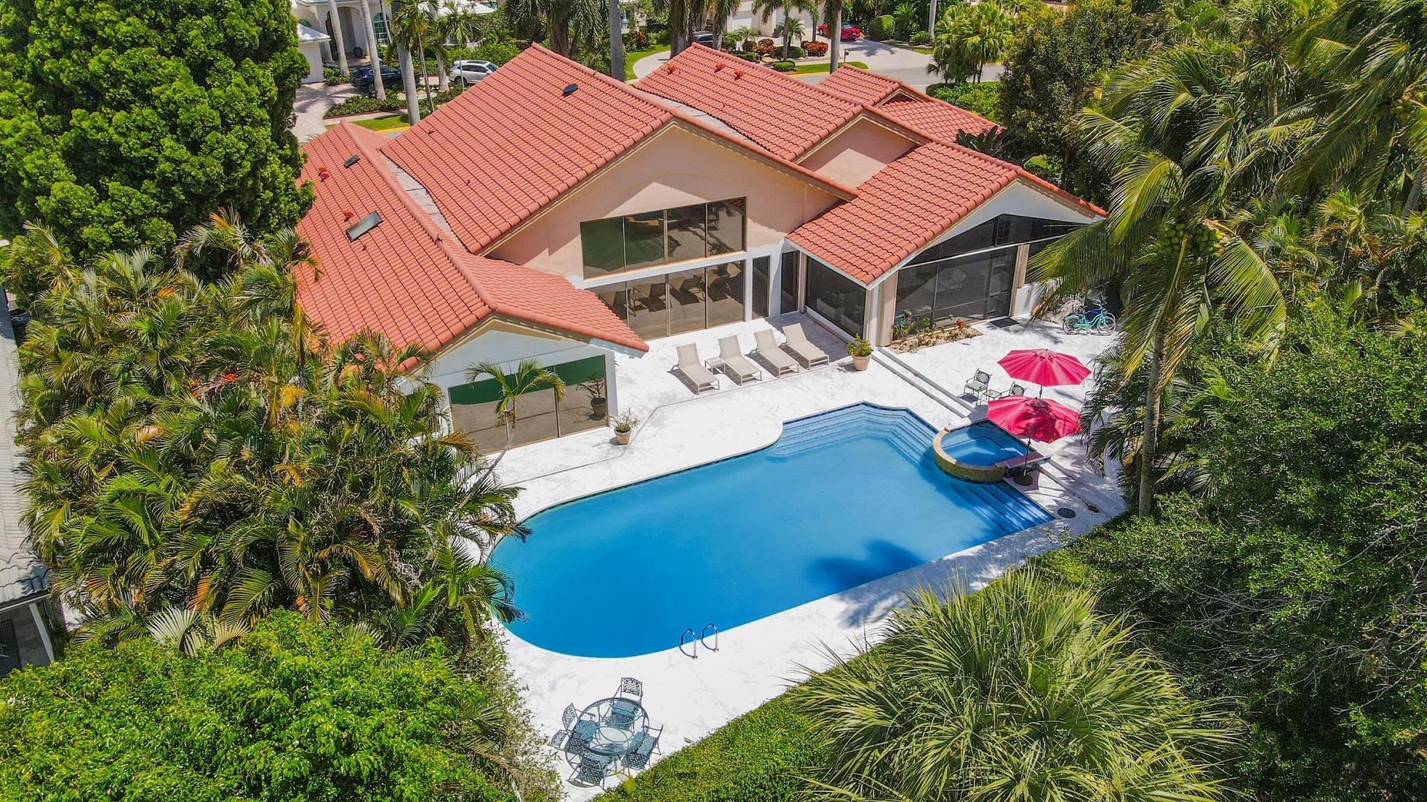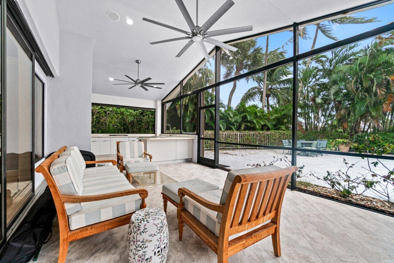 Sun-Filled Custom Home on Over Half an Acre of Lush Grounds!Nestled on more than half an acre, this exceptional home offers over 4,000 square feet of living space with 16-foot soaring ceilings that invite natural light to pour in. Enjoy stunning, panoramic views of the 17th hole & tranquil lake. With 3 spacious bedrooms, a separate office, and 4 renovated ensuite bathrooms, this home is as functional as it is beautiful. Designed for both relaxation and entertaining, the home features an expansive screened porch (438 sq. ft.) with a brand-new summer kitchen, and an oversized swimming pool, spa, and vast patio area. A luxurious sauna in the cabana bath! The spacious primary suite is a true retreat: a sitting area, two walk-in closets, and a spa-like bathroom featuring a steam shower