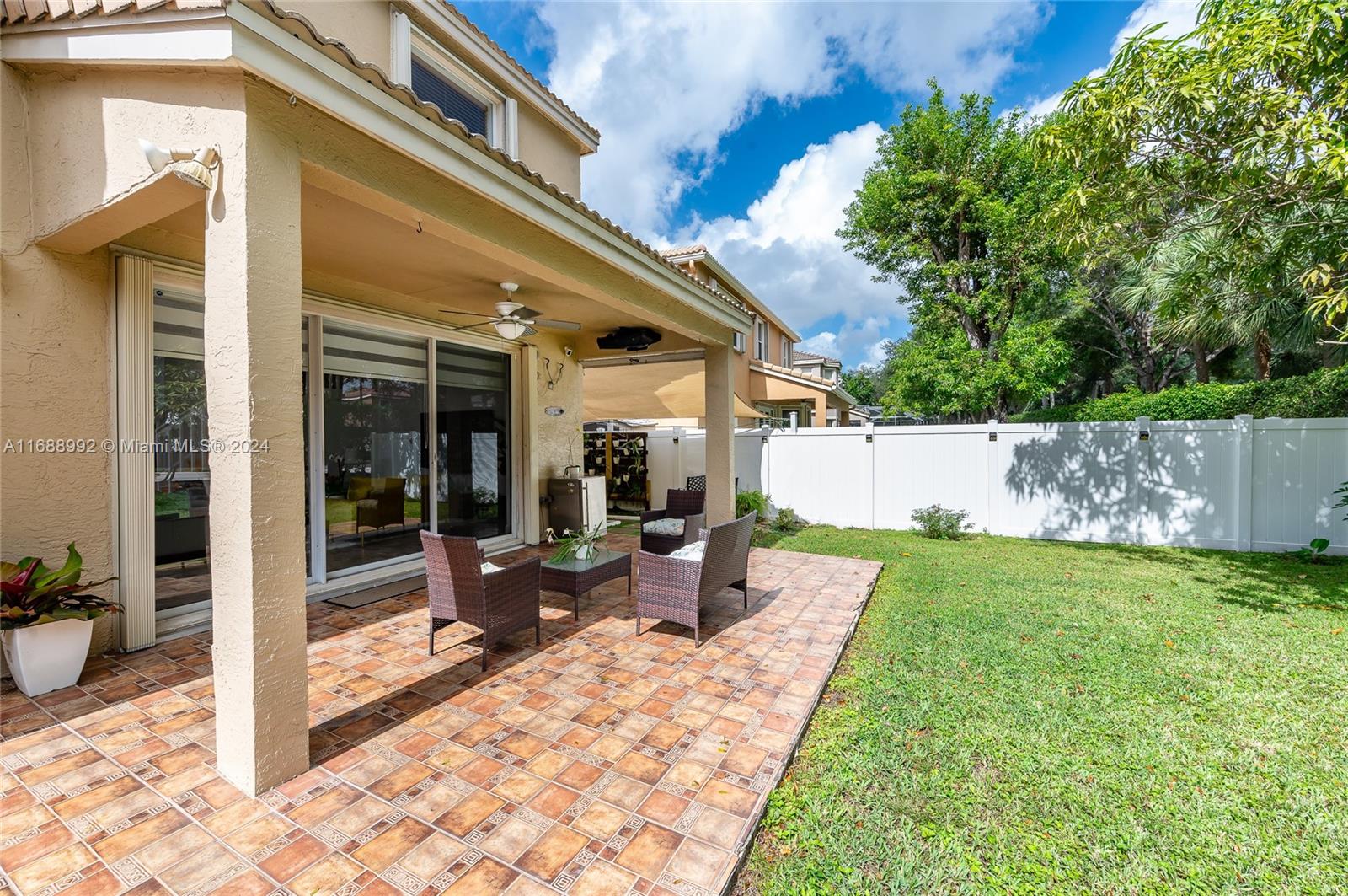 Discover your dream home in Riviera Isles, a gated community in Miramar. This elegant two-story home offers over 2,500 SF of open living space. The bright living area has high ceilings, large windows, and tile/laminate floors. The gourmet kitchen, with granite countertops and stainless steel appliances, opens to a breakfast nook and family room. The primary suite has a walk-in closet and luxury bath; three additional bedrooms offer ample space. Outside, relax on the covered patio and landscaped yard. Community amenities include a resort pool, courts, fitness center, and trails. Near top schools, shopping, dining, and highways—this home blends luxury and convenience.