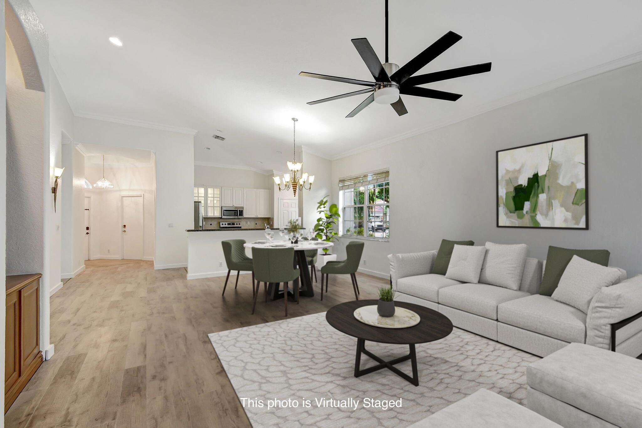 Spacious 3/2 townhome. Vaulted ceilings with open concept floor plan Illuninates natural light throughout the home, Eat in Kitchen with abundance of cabinet space and pantry. Split floor plan . Master Bedroom has a tray ceiling and his and hers walk in closets. Top of line laminate flooring throughout. Large private screened patio perfect for entertaining,. Two car attached garage with plenty of driveway space to park extra vehicles. Freshly painted, new window treatments, newer appliances, Ready to move in and waiting for you to make this your own. Community boasts of resort style amenities of pool, tennis & pickleboall courts, clubhouse, and fitness center. Close to shopping, dining, major roadways and airport. Minutes to the Beach.