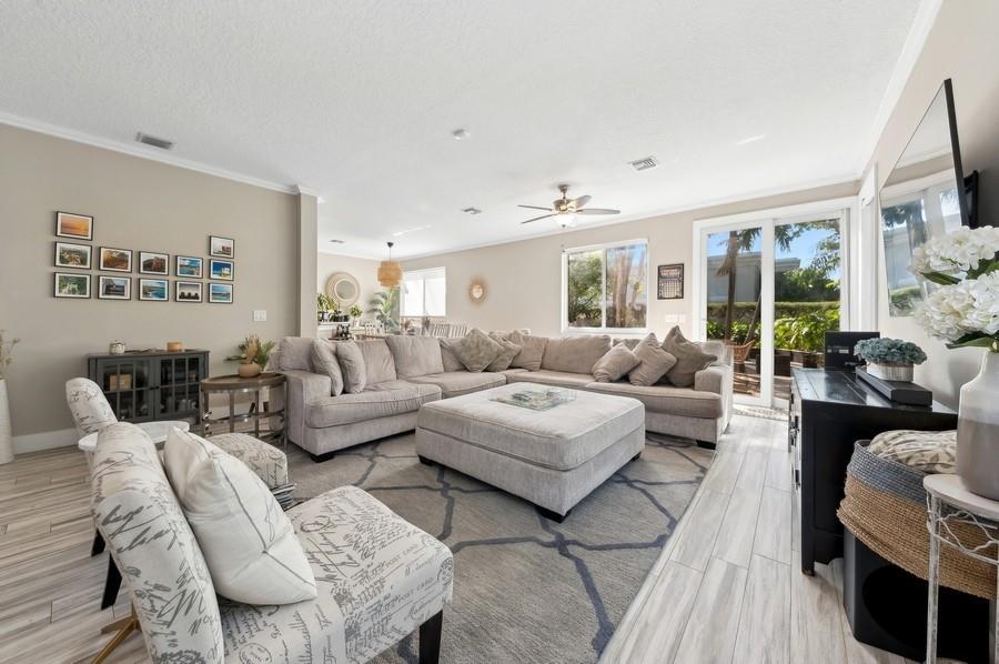 Welcome to your dream home! This stunning corner-unit townhouse boasts the space and privacy of a single-family residence, complete with a huge backyard and expansive 900 square foot deck area—perfect for outdoor gatherings and relaxation. Step inside to discover soaring vaulted ceilings that fill the living space with natural light. This beautifully updated home features three spacious bedrooms and two and a half bathrooms, providing ample room for family and guests. The home boasts beautiful, wood-plank, porcelain tile through out, a beautifully renovated master bathroom with separate tub/shower and all impact windows/doors. Don’t miss this true gem—experience the perfect blend of comfort and style!