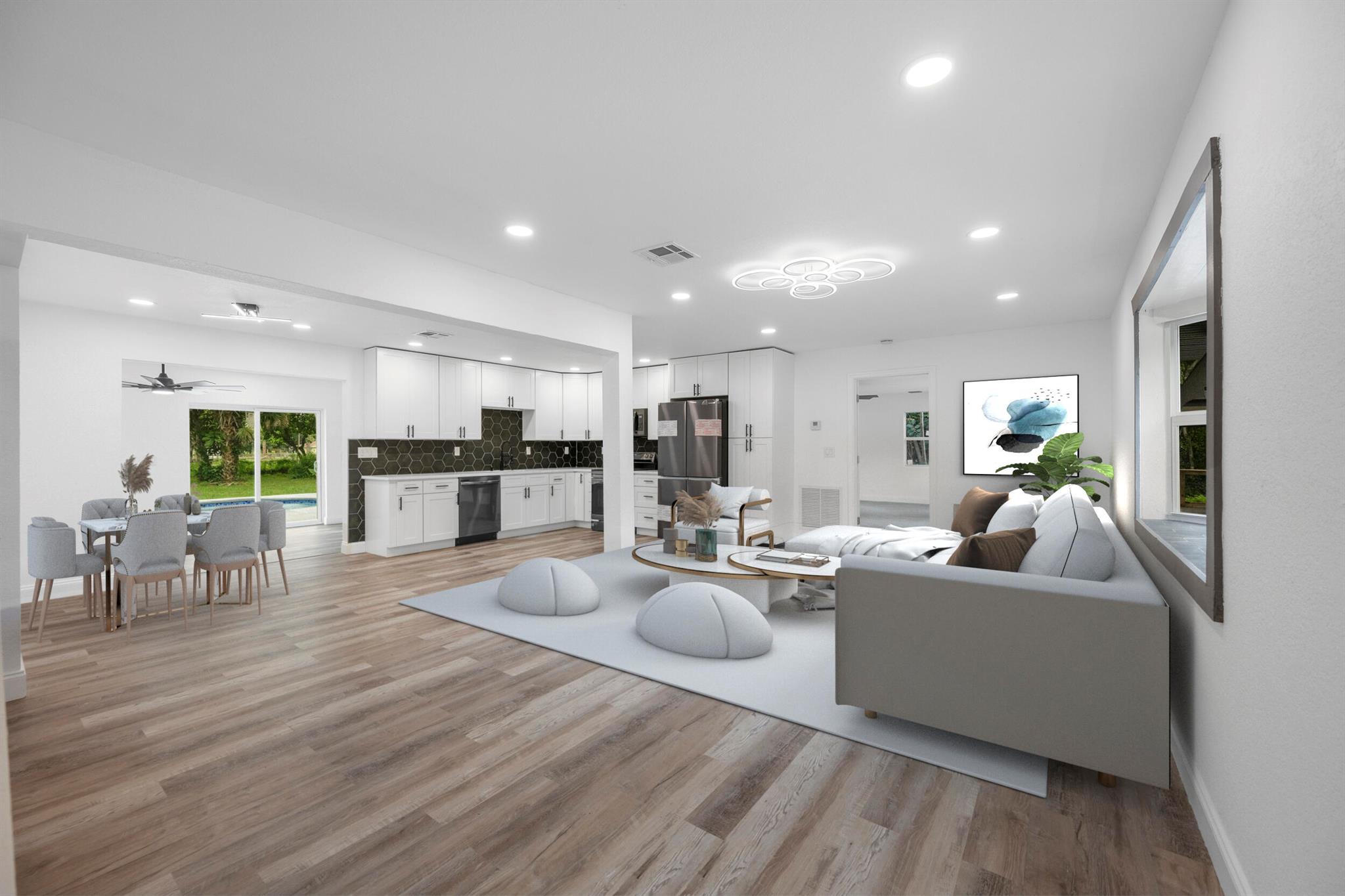 *CITY WATER!** Welcome to your dream home! This fully renovated 5-bedroom, 3-bath gem on 1.25 acres offers a perfect mix of tranquility and convenience. **Key Features:**- **Modern Upgrades:** updates include two AC units,(2024) new roof(2023), water heater, electric panel, and meter.(2024), (2023) Impact window- **Security & Efficiency:** Impact windows and doors provide safety and energy savings.- **Outdoor Oasis:** Refinished pool and deck with new pool pump, plus a sprinkler system to keep the landscape lush.- **Ample Parking:** Spacious paved circular driveway for family and guests.- **Sleek Kitchen:** New kitchen with Samsung appliances for all your culinary needs.- **Generous Space:** 2,144 sq. ft. for family gatherings and relaxation.Schedule a showing today