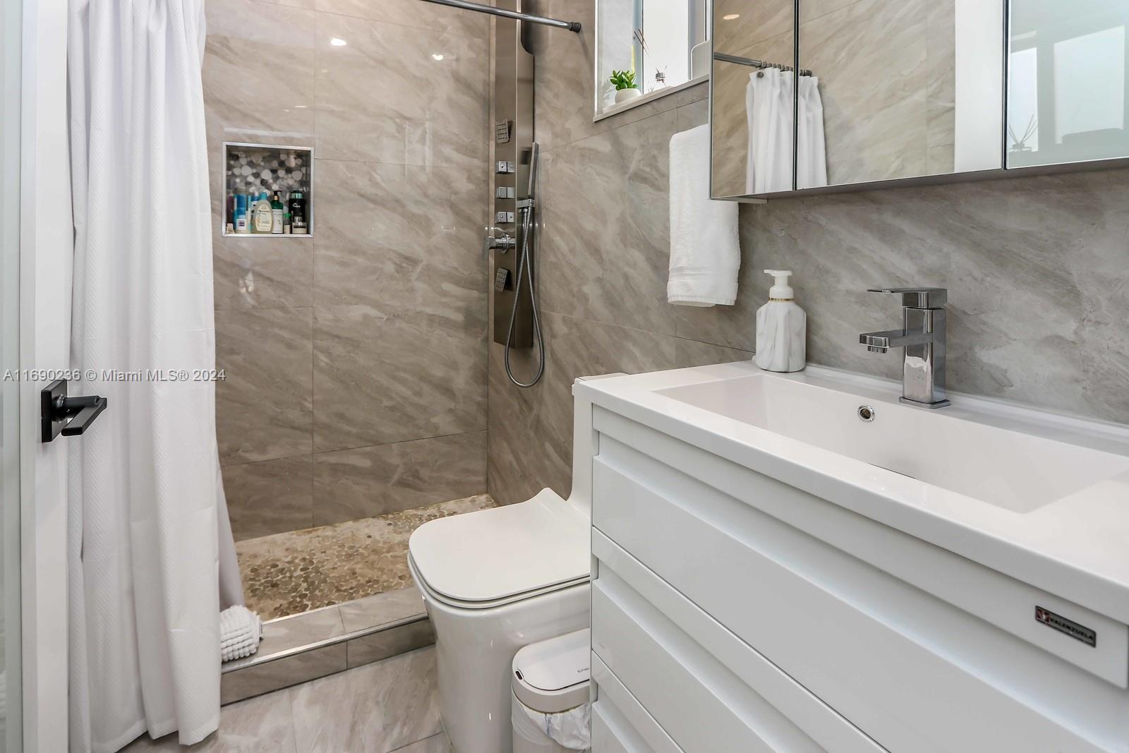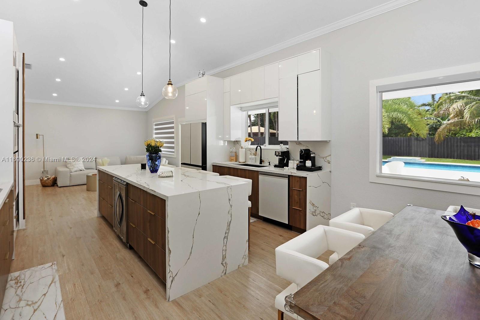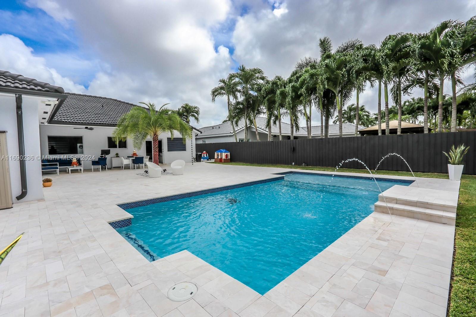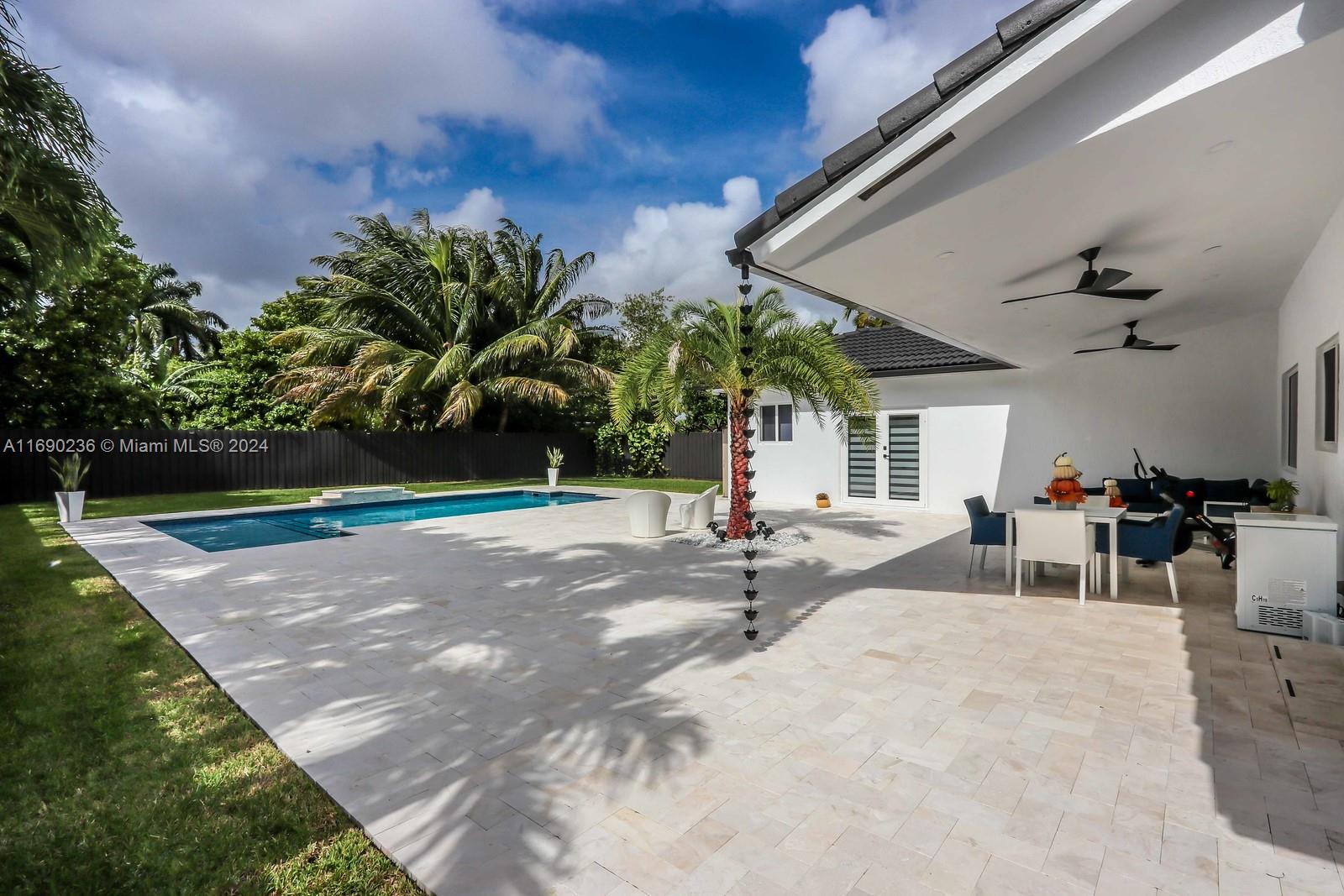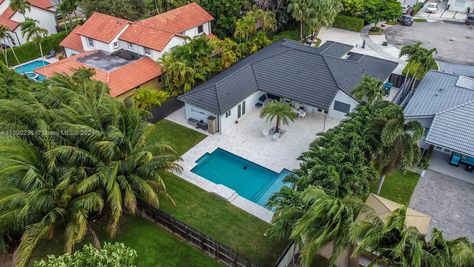 The Perfect Home!! Situated in a quiet and private cul-de-sac, sitting on a 11,055 SQ FT lot. This home provides easy access to top-rated schools, shopping, dining, and recreational facilities. This spectacular 4-bedroom, 2.5-bathroom home in Miami has a 2-car garage, and a spectacular travertine driveway holding up to almost 16 cars. The open-concept design offers a layout filled with natural light, a spacious and inviting atmosphere, perfect for both relaxation and entertaining. Offers a beautiful renovated open kitchen with sleek stainless steel appliances and quartz countertops, completely remodeled bathrooms, Impact resistance doors and windows. New 2 AC Units . Step outside to a large terrace with travertine and a beautiful saltwater pool and heater.