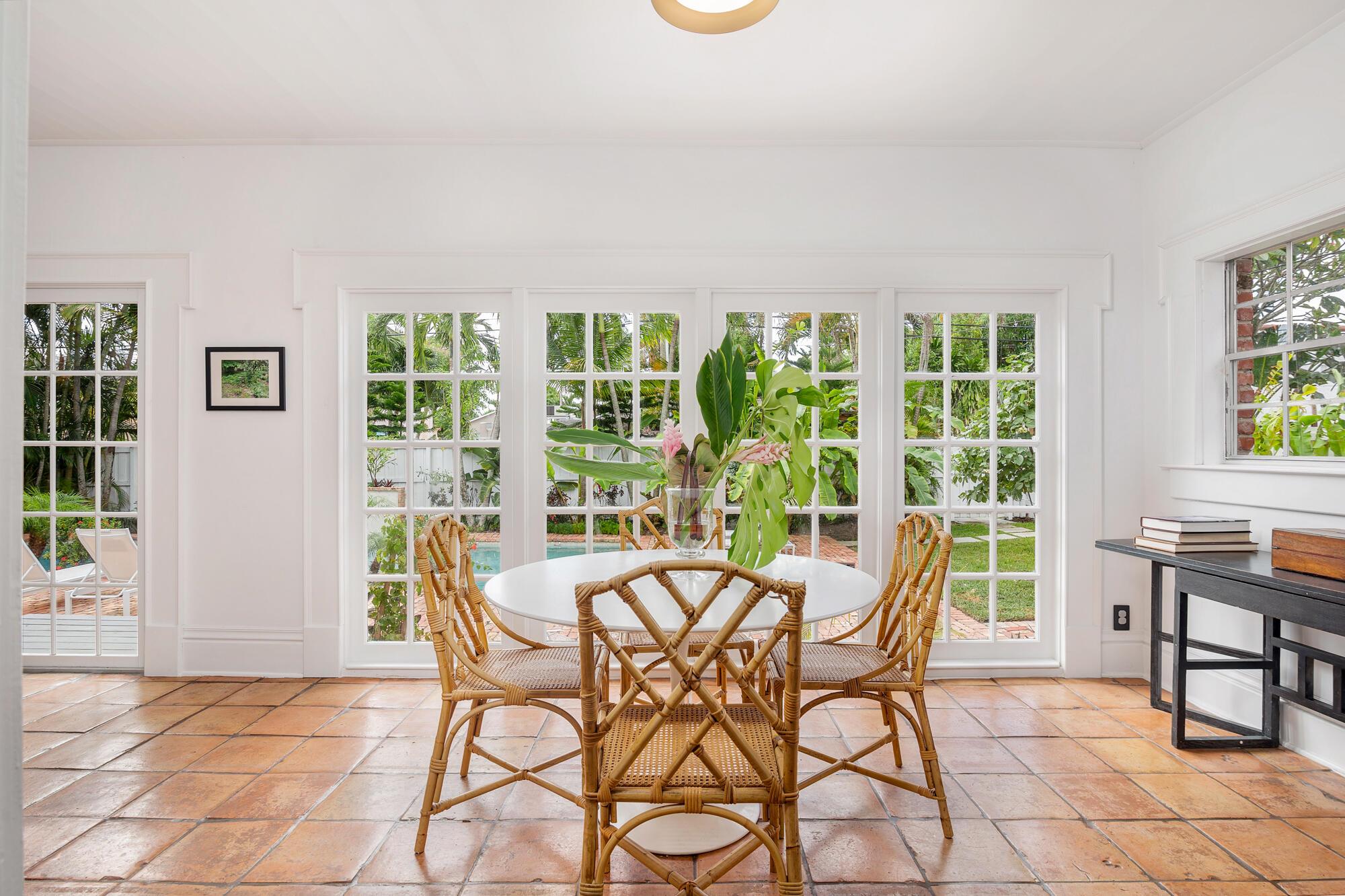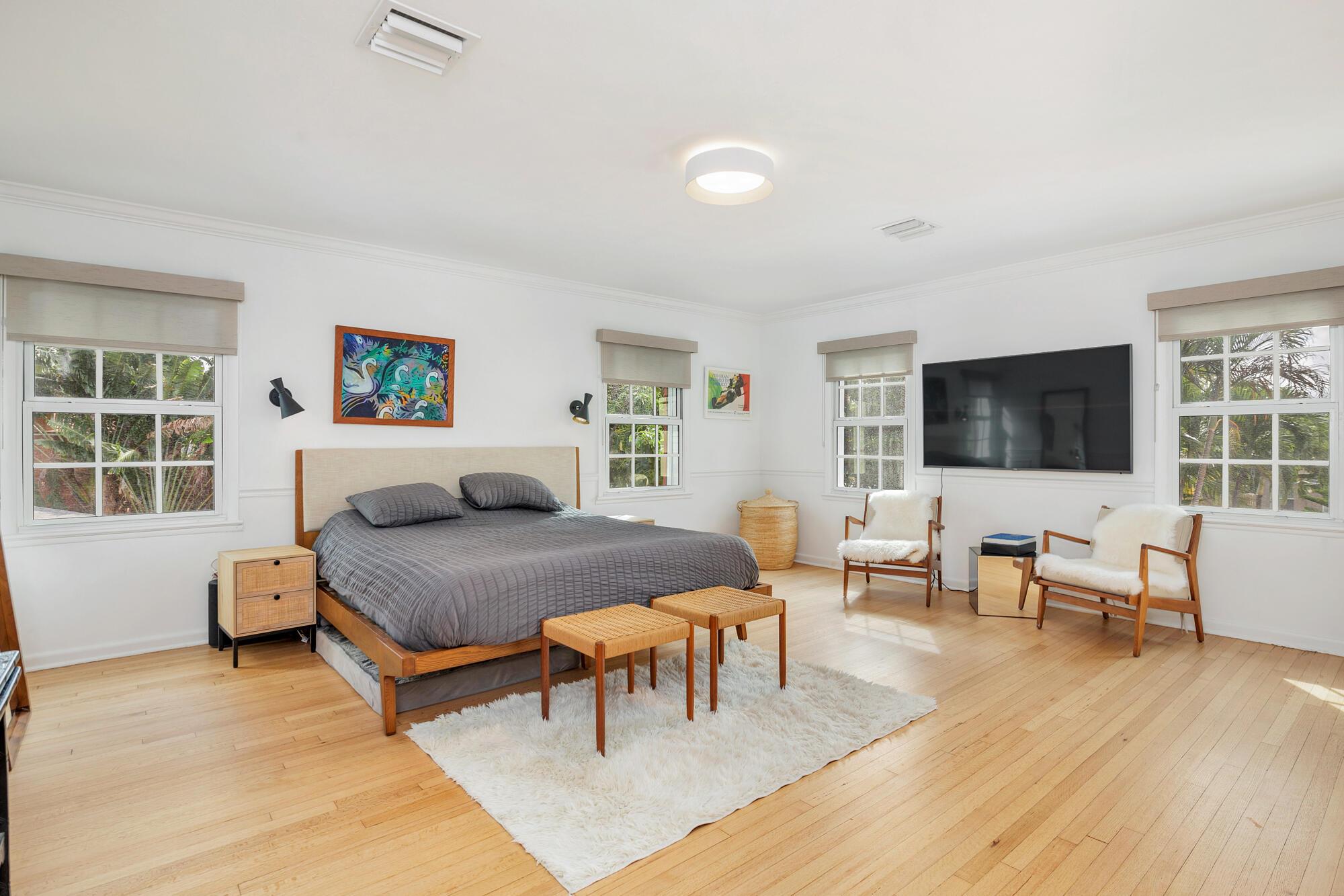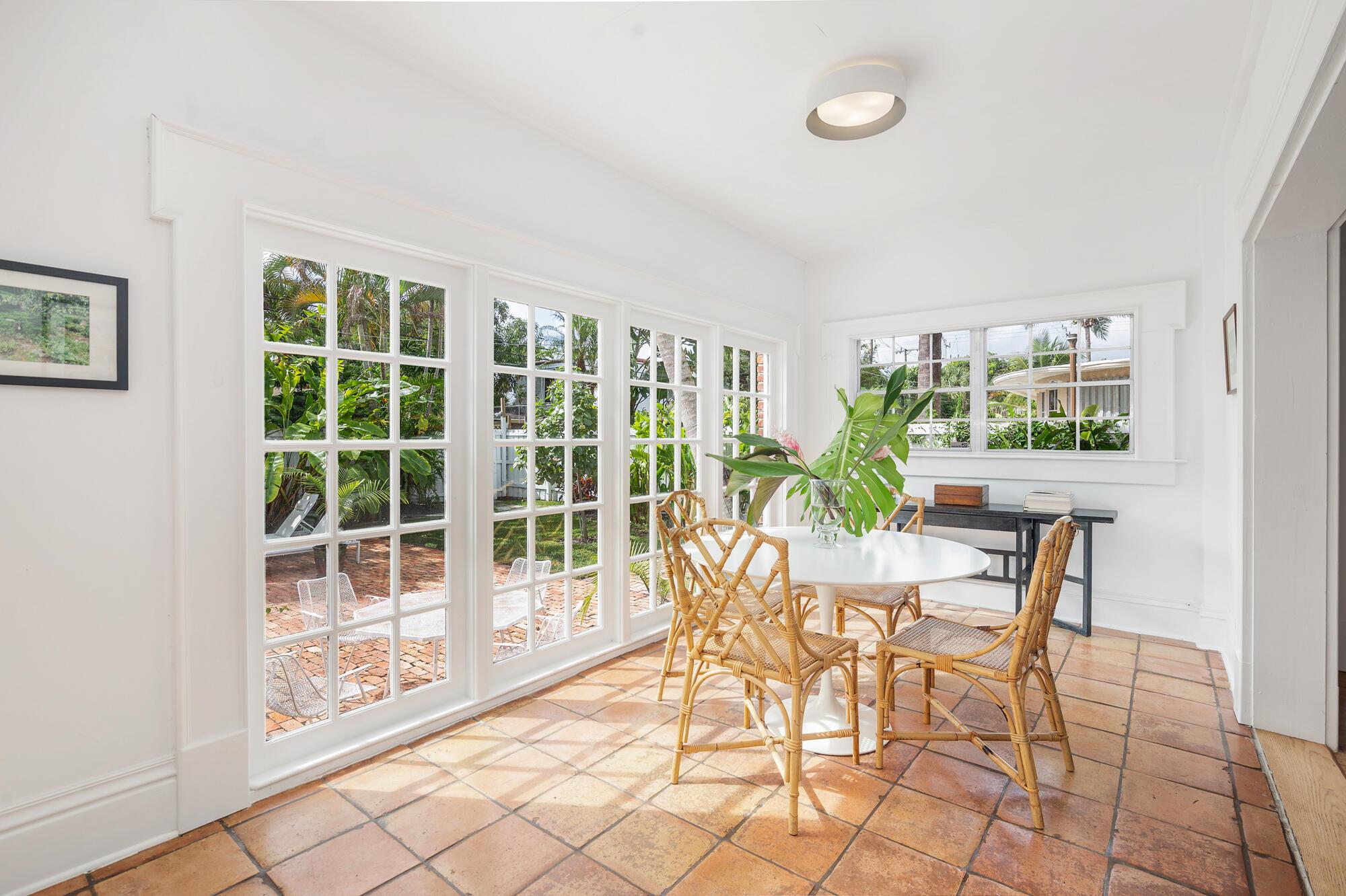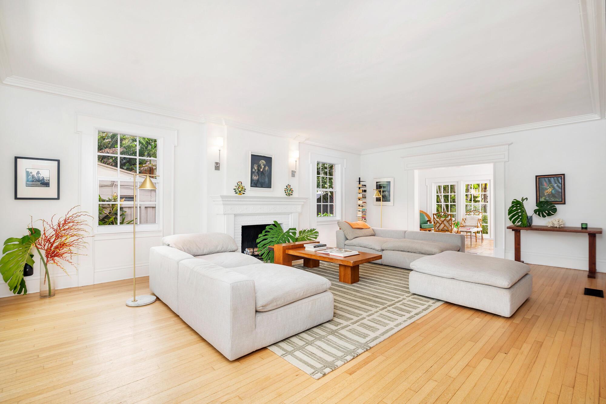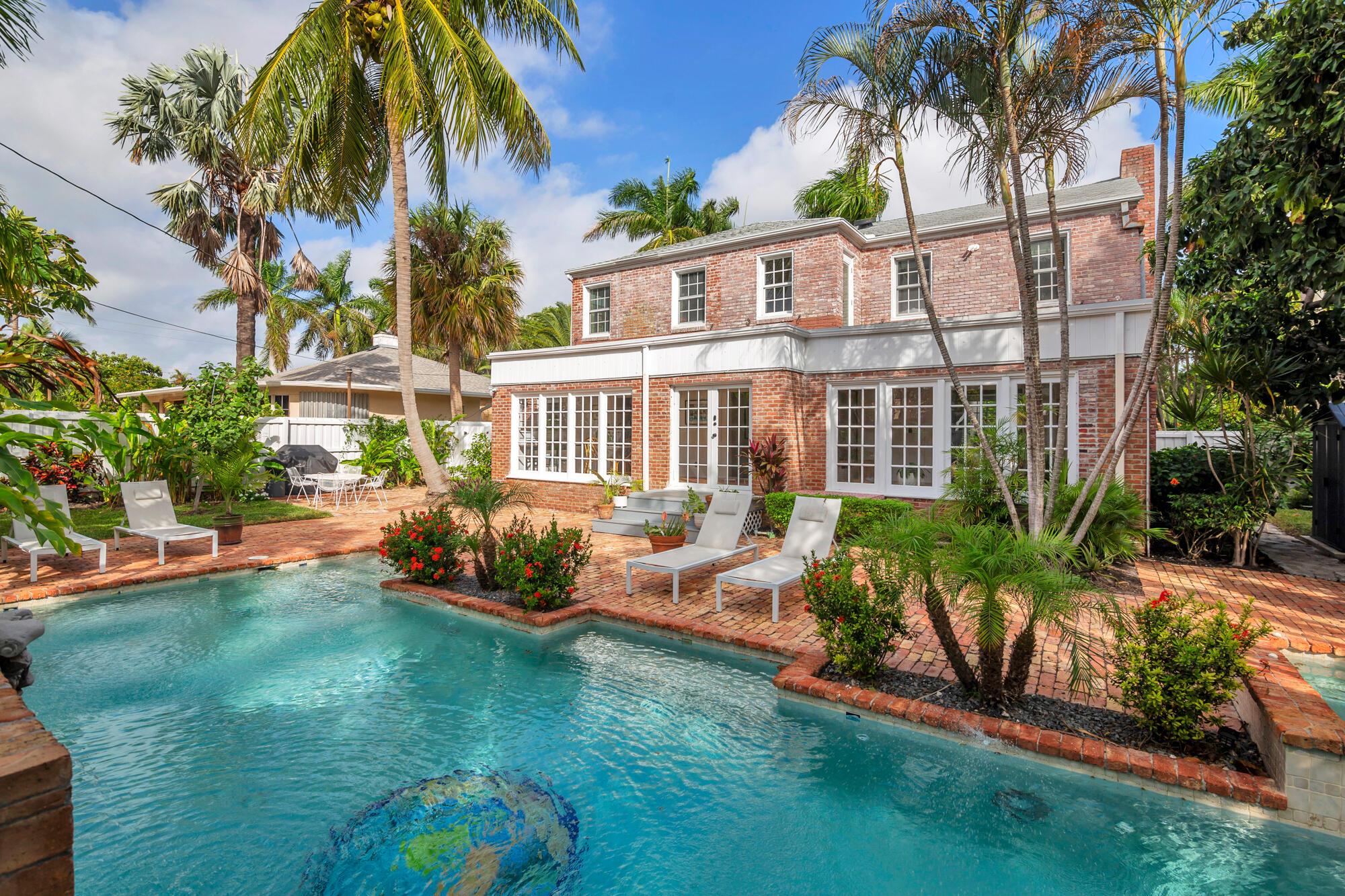 Welcome to a rare and unique Architectual design for Old Historic Northwood. This 1957 4-bedroom 3 bath brick Monterey style colonial was built by a prominent WPB business owner. Designed for entertaining and large family living, the recently meticulously renovated home boasts large gracious light filled rooms throughout. The living room and first floor ensuite guest room have floor to ceiling bowfront windows. A crisp, modern take has been created with white walls, light refinished original wood floors, a gourmet cook's kitchen with Designer finishes, 2024 AC'S, a dedicated laundry area and open formal dining room. The entire length of home in the rear encompasses a family room/casual dining area that has a bank of French doors and windows leading out to the backyard.