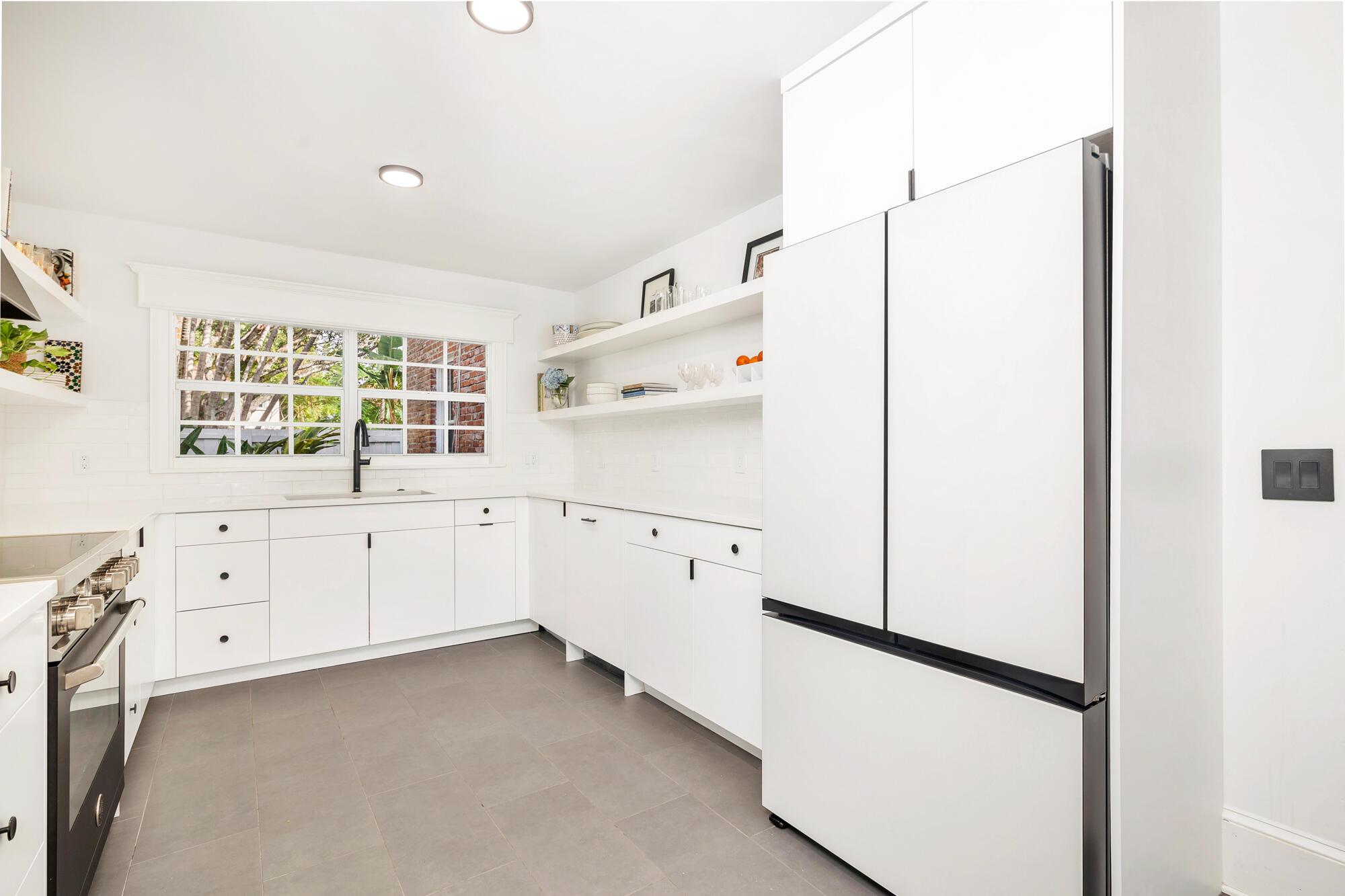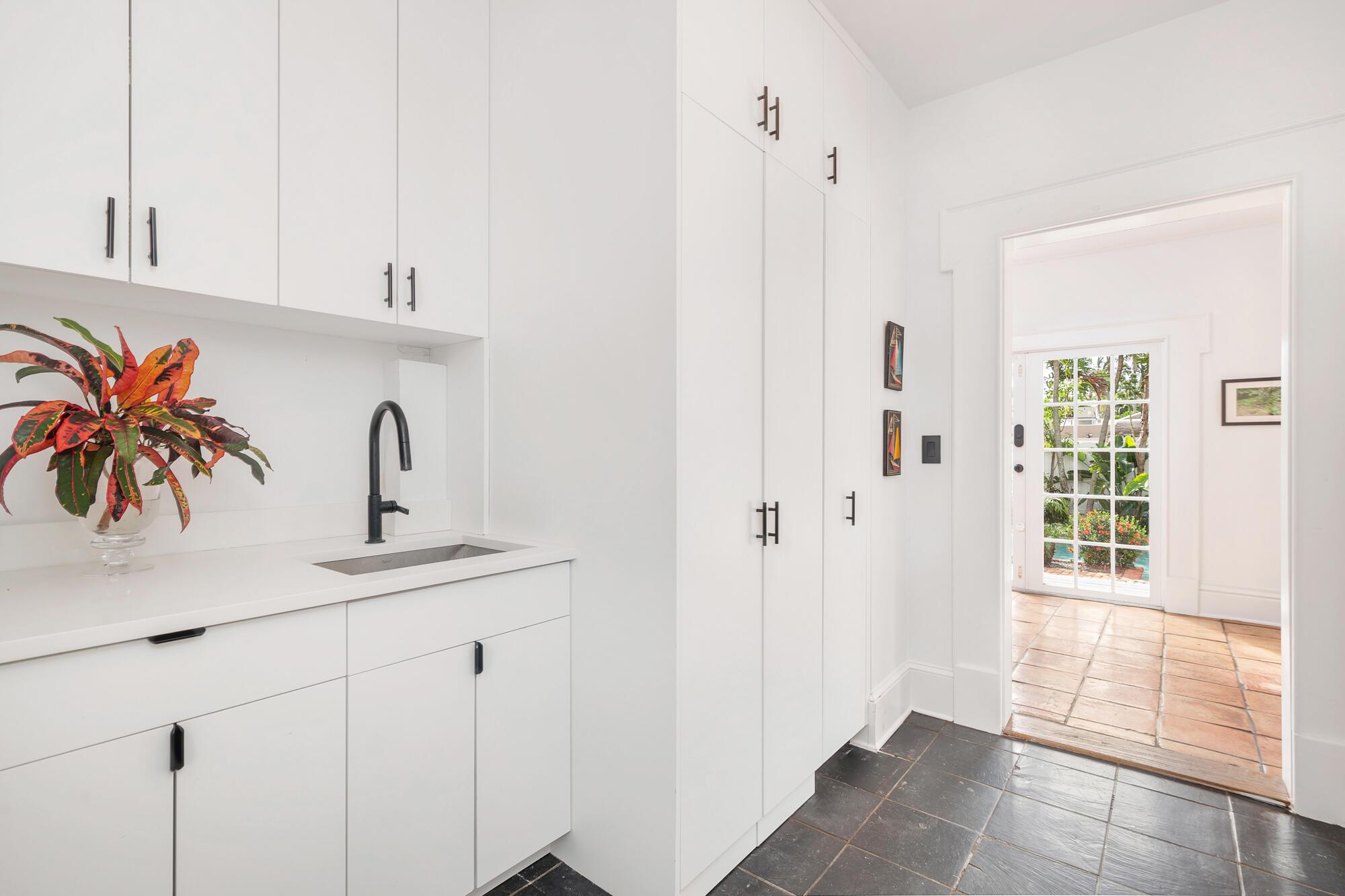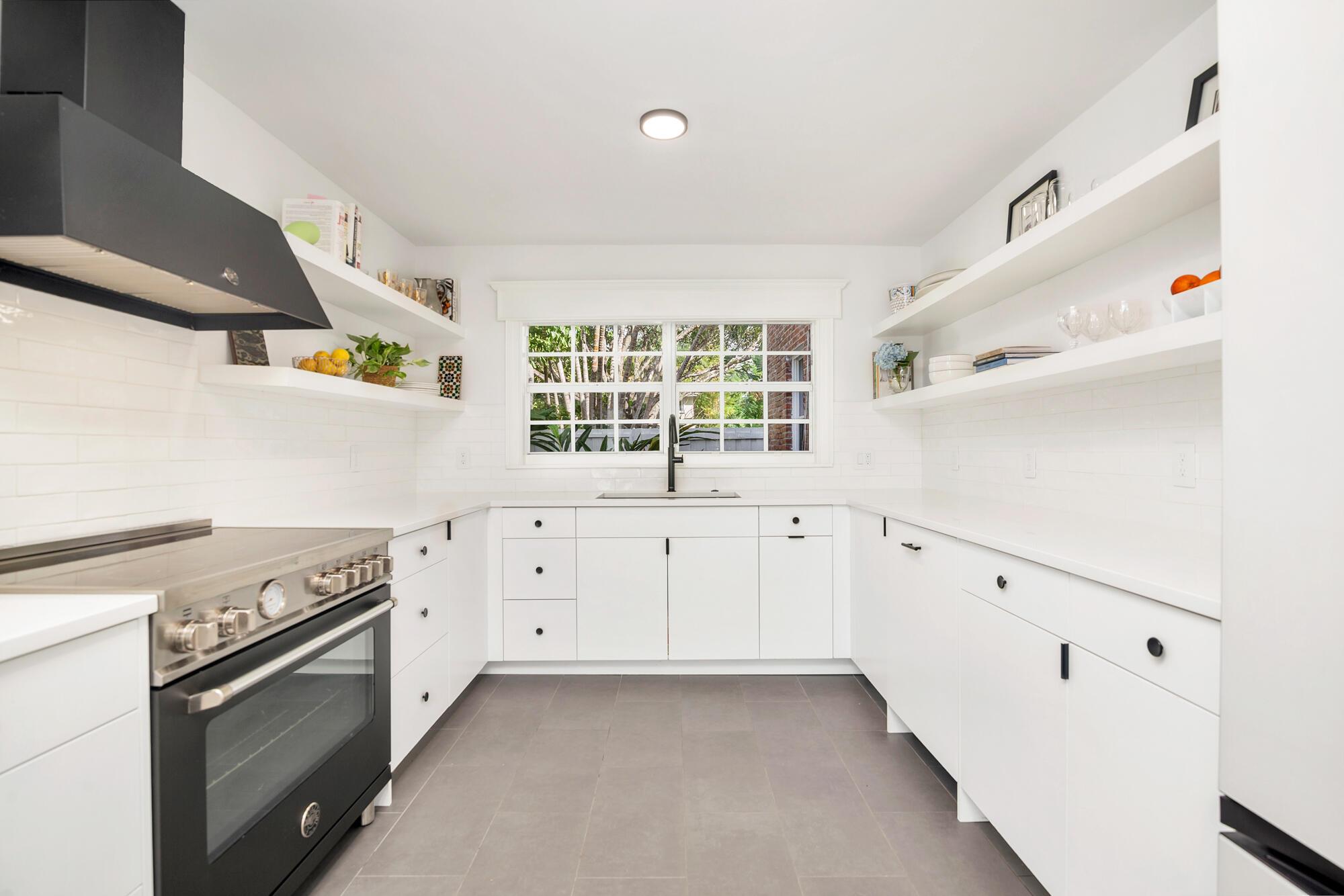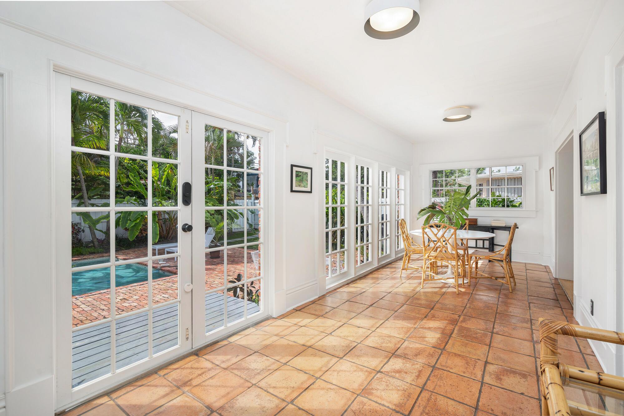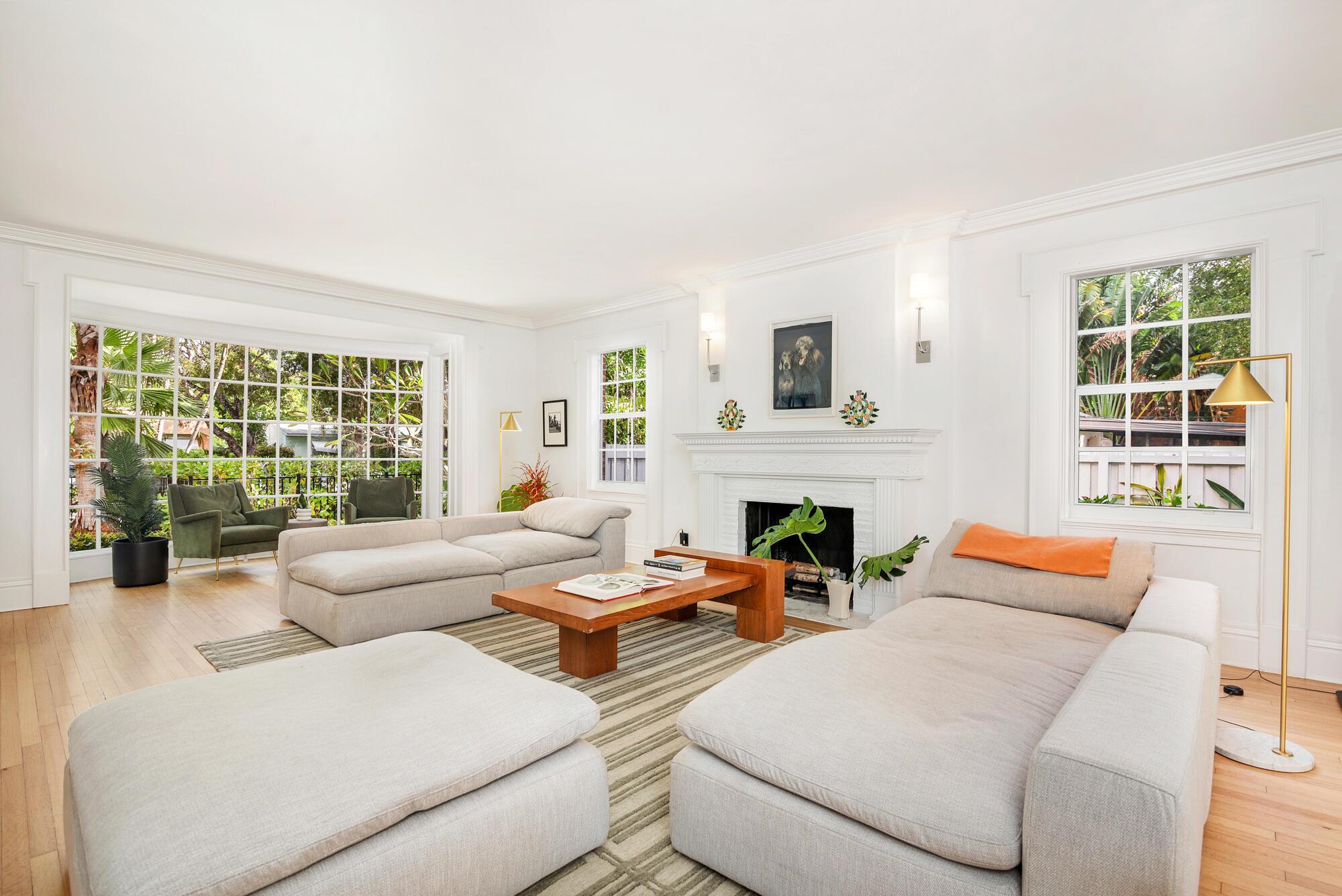 Welcome to a rare and unique Architectual design for Old Historic Northwood. This 1957 4-bedroom 3 bath brick Monterey style colonial was built by a prominent WPB business owner. Designed for entertaining and large family living, the recently meticulously renovated home boasts large gracious light filled rooms throughout. The living room and first floor ensuite guest room have floor to ceiling bowfront windows. A crisp, modern take has been created with white walls, light refinished original wood floors, a gourmet cook's kitchen with Designer finishes, 2024 AC'S, a dedicated laundry area and open formal dining room. The entire length of home in the rear encompasses a family room/casual dining area that has a bank of French doors and windows leading out to the backyard.