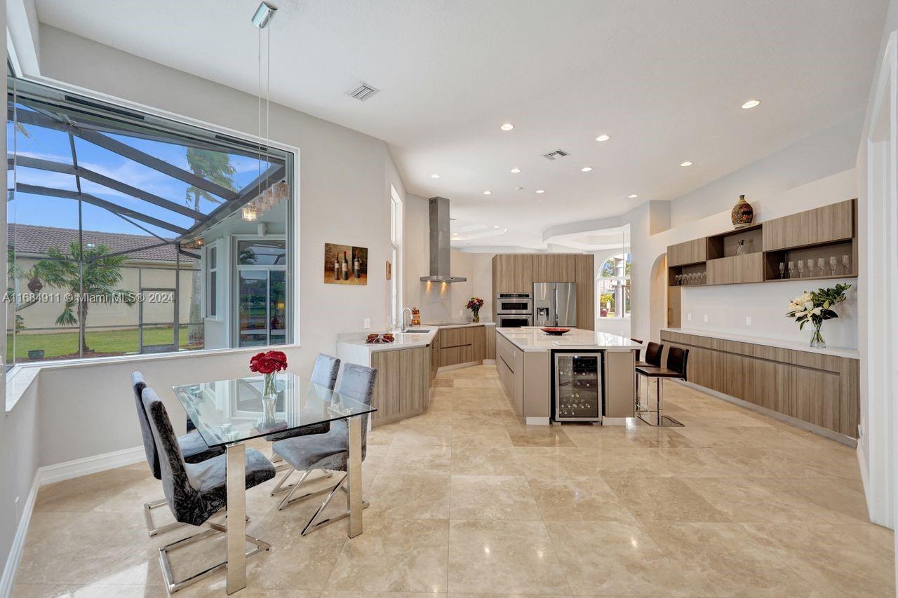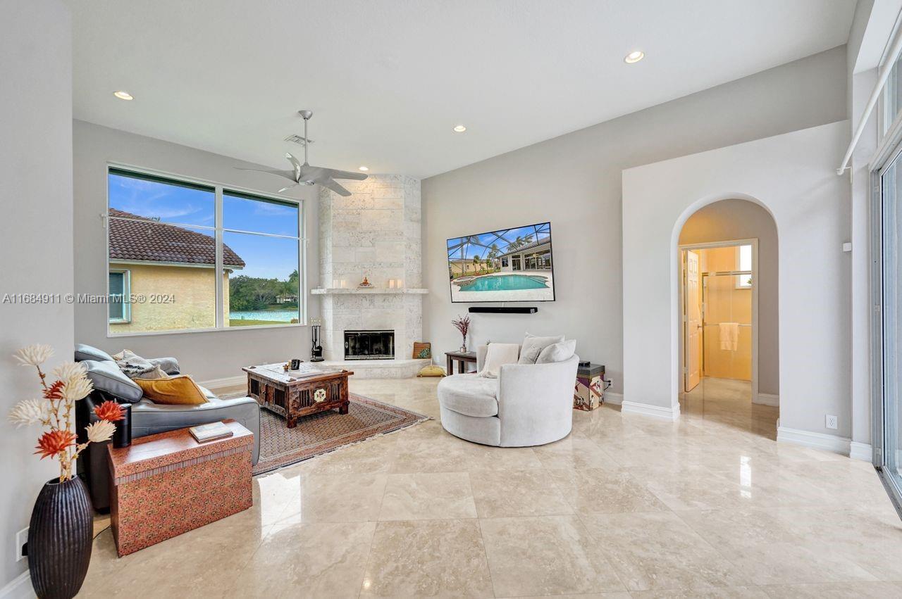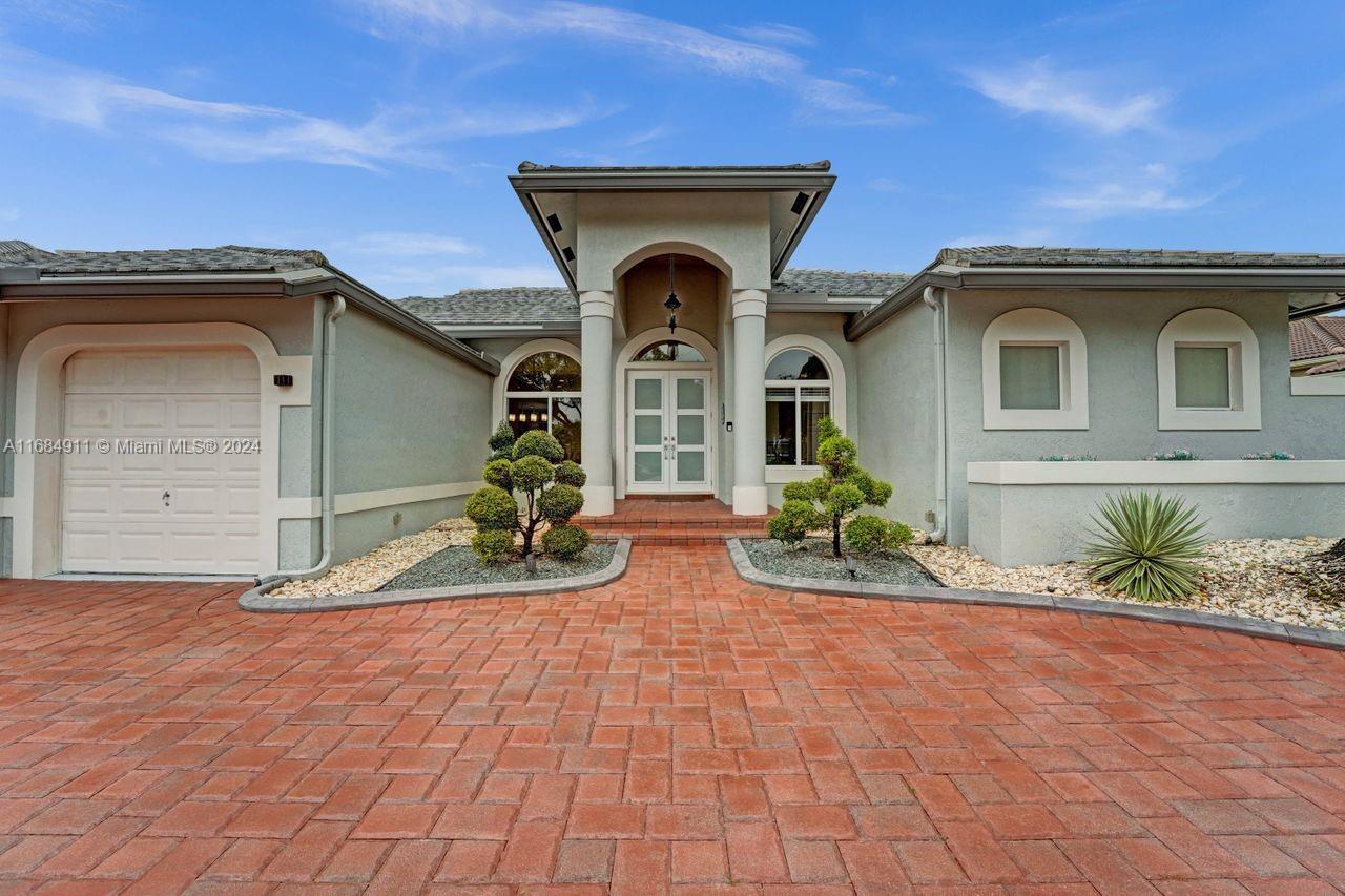 Experience luxury in the prestigious community of The Landings, Weston. This single story, spacious 5BDRM/3.5BATH, plus an Office, home boasts stunning curb appeal, circular driveway and 3-car garage. Step inside to find stunning lake views, UPDATED swimming pool, travertine marble deck. Outside patio/yard is ideal for entertaining w/ Summer kitchen. Travertine flooring, REMODELED stunning modern kitchen with wine fridge- a chef’s dream! Spacious bedrooms with custom closets, NEWER dishwasher, NEW ROOF, partial IMPACT windows/doors, accordions, NEW hot water heater, pool pump. FRESHLY painted exterior, epoxy flooring in garage, driveway resurfaced/resealed. Community includes Gated Access, Pickleball, Basketball, Playground & convenient access to shopping, dining, schools, and highways.