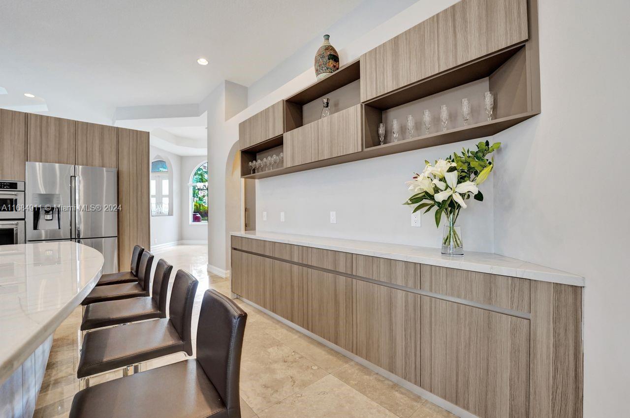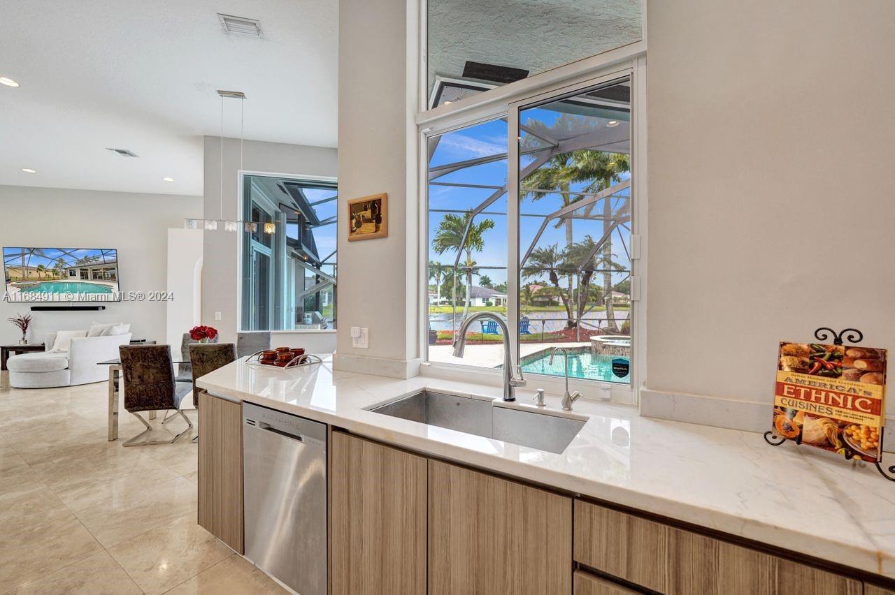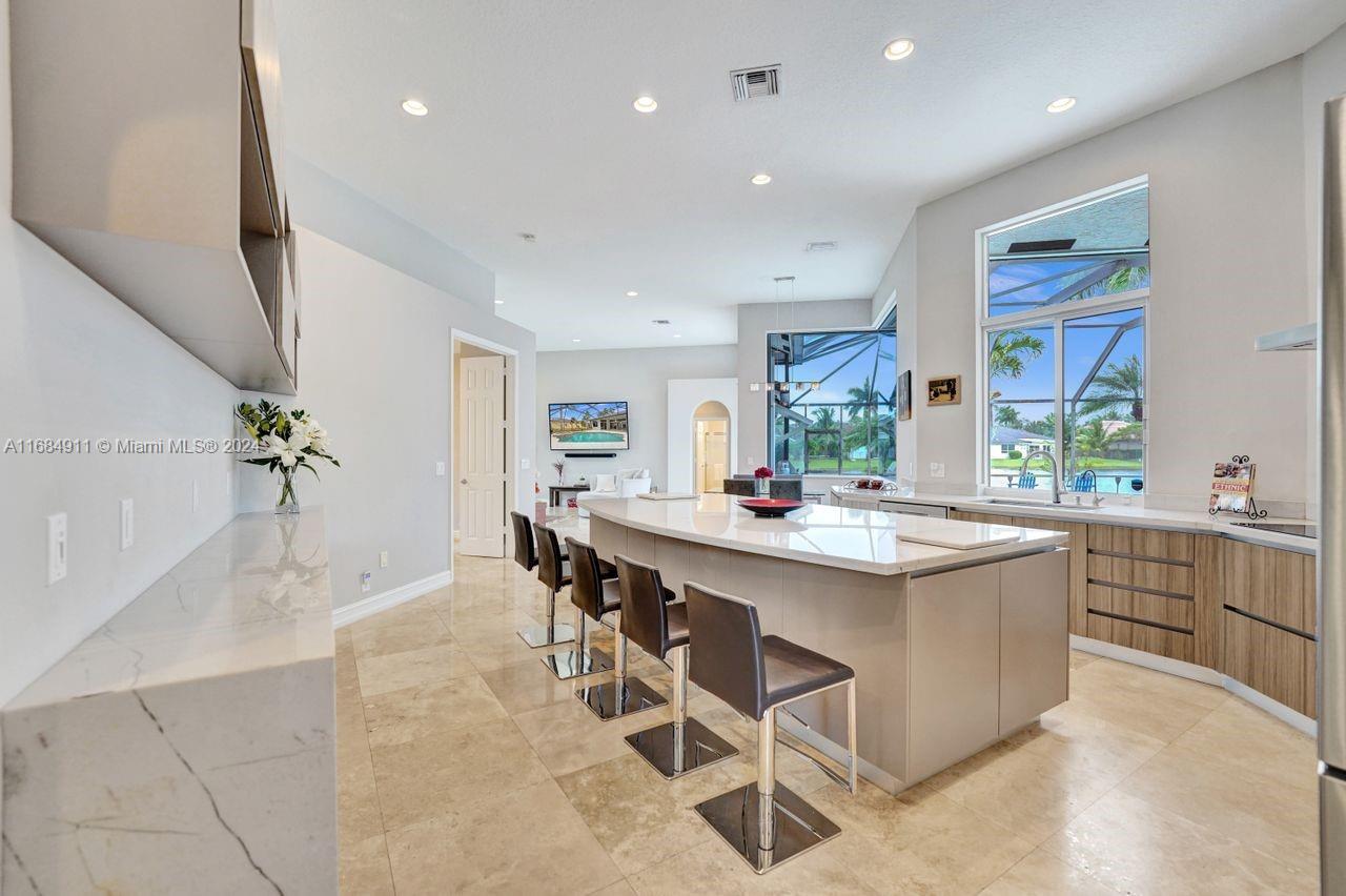 Experience luxury in the prestigious community of The Landings, Weston. This single story, spacious 5BDRM/3.5BATH, plus an Office, home boasts stunning curb appeal, circular driveway and 3-car garage. Step inside to find stunning lake views, UPDATED swimming pool, travertine marble deck. Outside patio/yard is ideal for entertaining w/ Summer kitchen. Travertine flooring, REMODELED stunning modern kitchen with wine fridge- a chef’s dream! Spacious bedrooms with custom closets, NEWER dishwasher, NEW ROOF, partial IMPACT windows/doors, accordions, NEW hot water heater, pool pump. FRESHLY painted exterior, epoxy flooring in garage, driveway resurfaced/resealed. Community includes Gated Access, Pickleball, Basketball, Playground & convenient access to shopping, dining, schools, and highways.