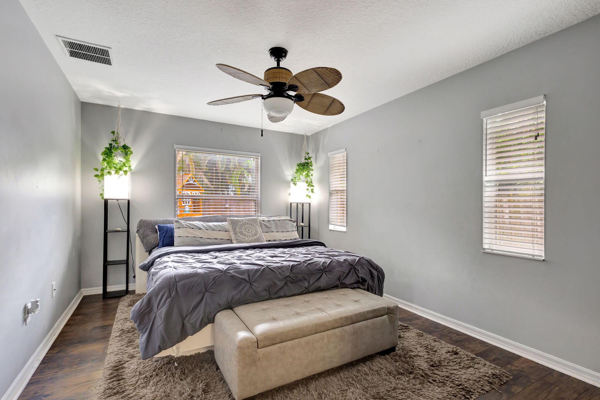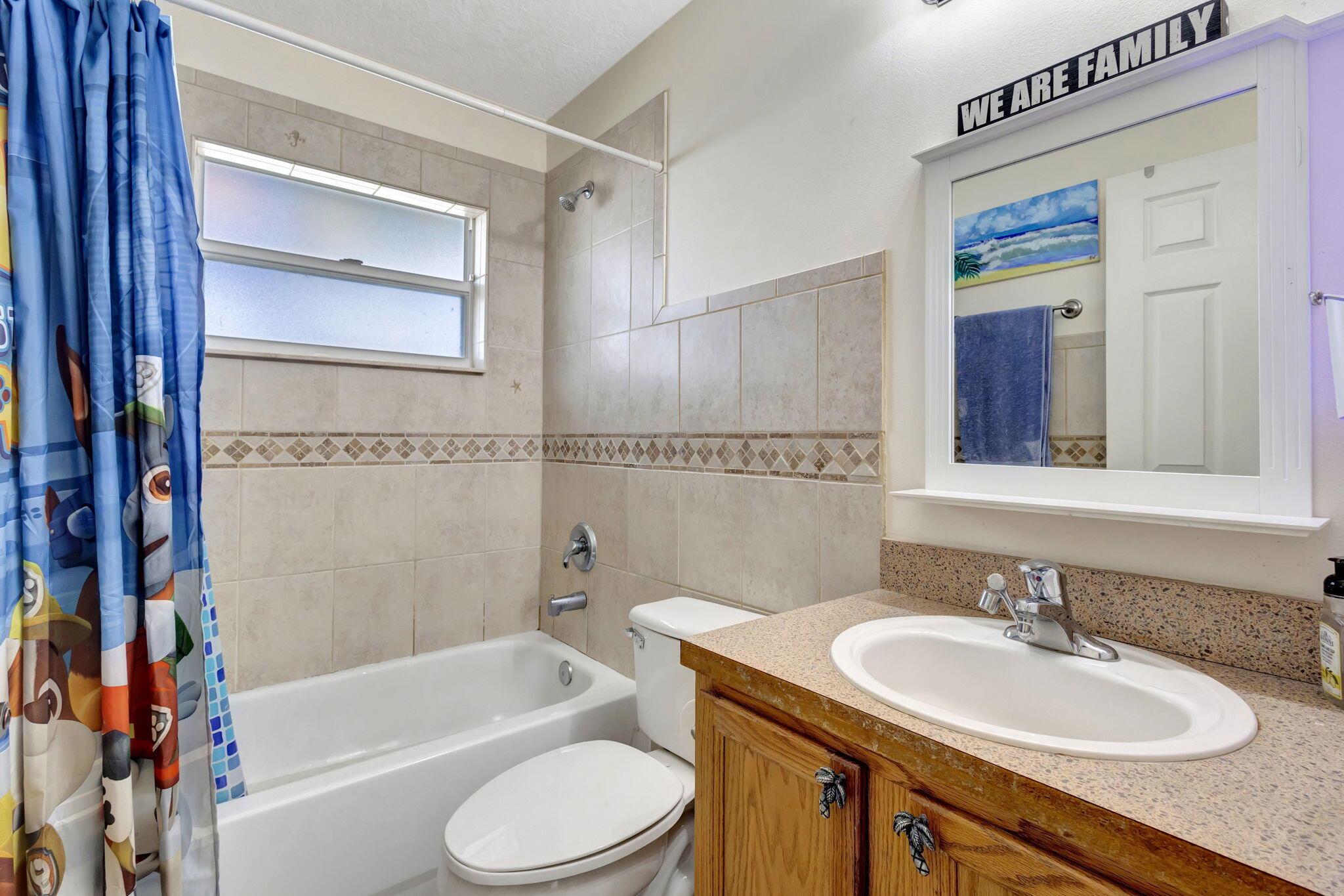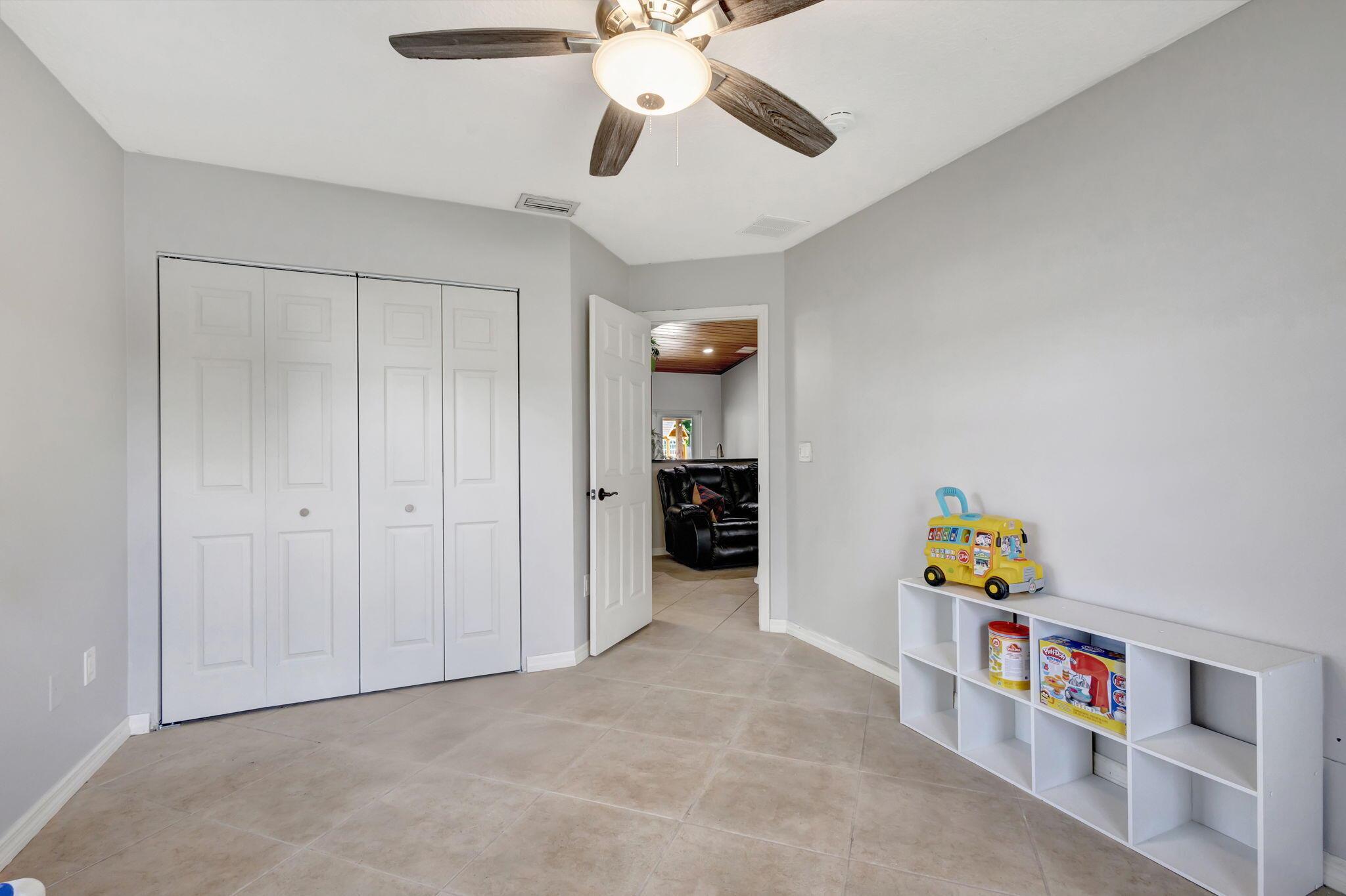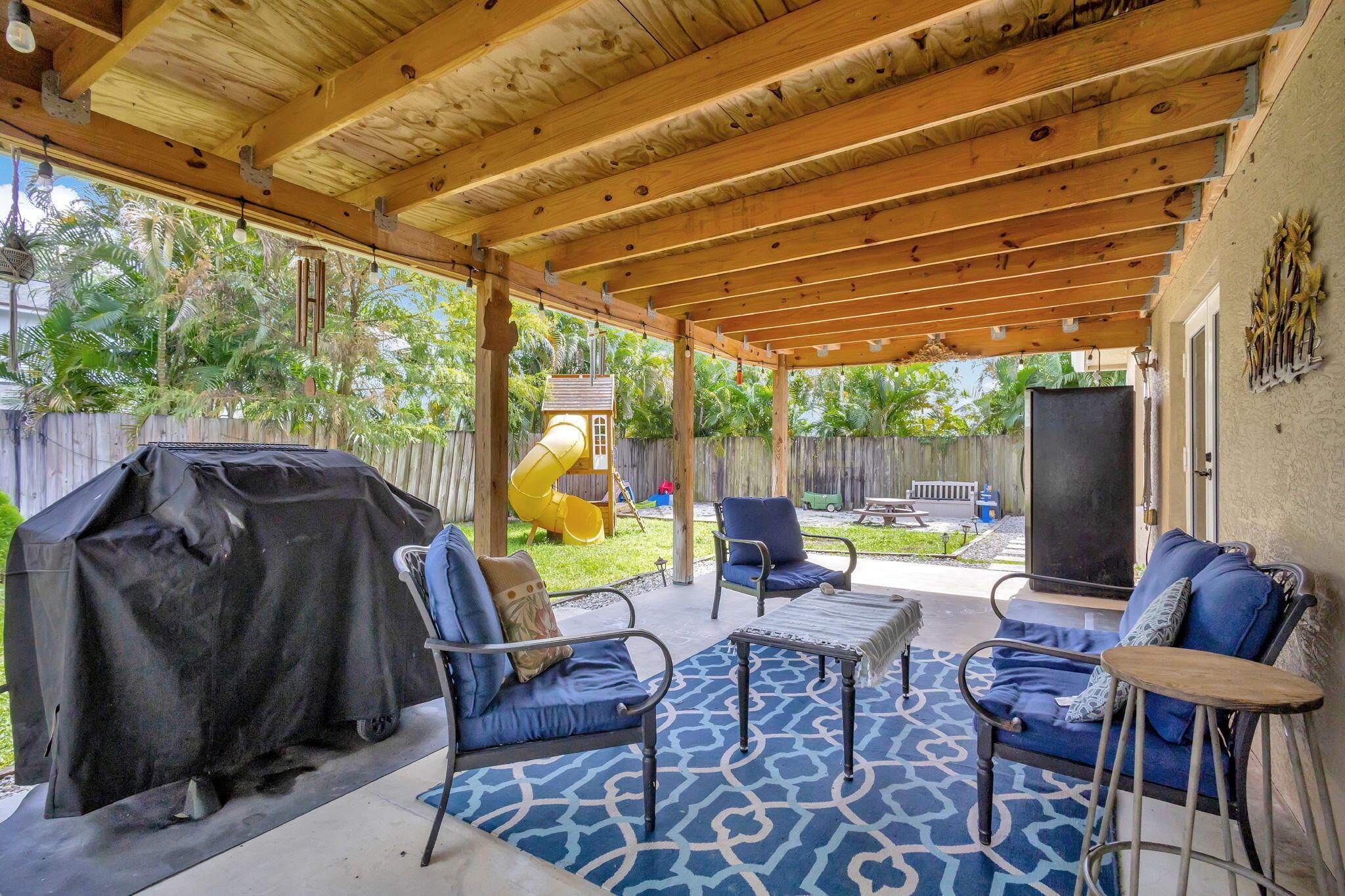 Escape to this beautifully updated 3-bedroom, 2-bath gem, nestled on a quiet, end-of-street location in the heart of West Palm Beach. This nearly 1/4-acre property offers peace, privacy, and a modern touch, perfect for those who crave a serene lifestyle. Step inside to find tile flooring throughout, a sleek kitchen with granite countertops, and stainless steel appliances--all designed to impress. The open floor plan is highlighted by a vaulted ceiling with wood shiplap, adding warmth and character to the space. The layout seamlessly flows into a spacious covered lanai with elegant twilight lighting, blending indoor and outdoor living beautifully. Outside, a privacy fence encloses the lush, landscaped backyard that backs up to a tranquil canal, enhancing the sense of seclusion.