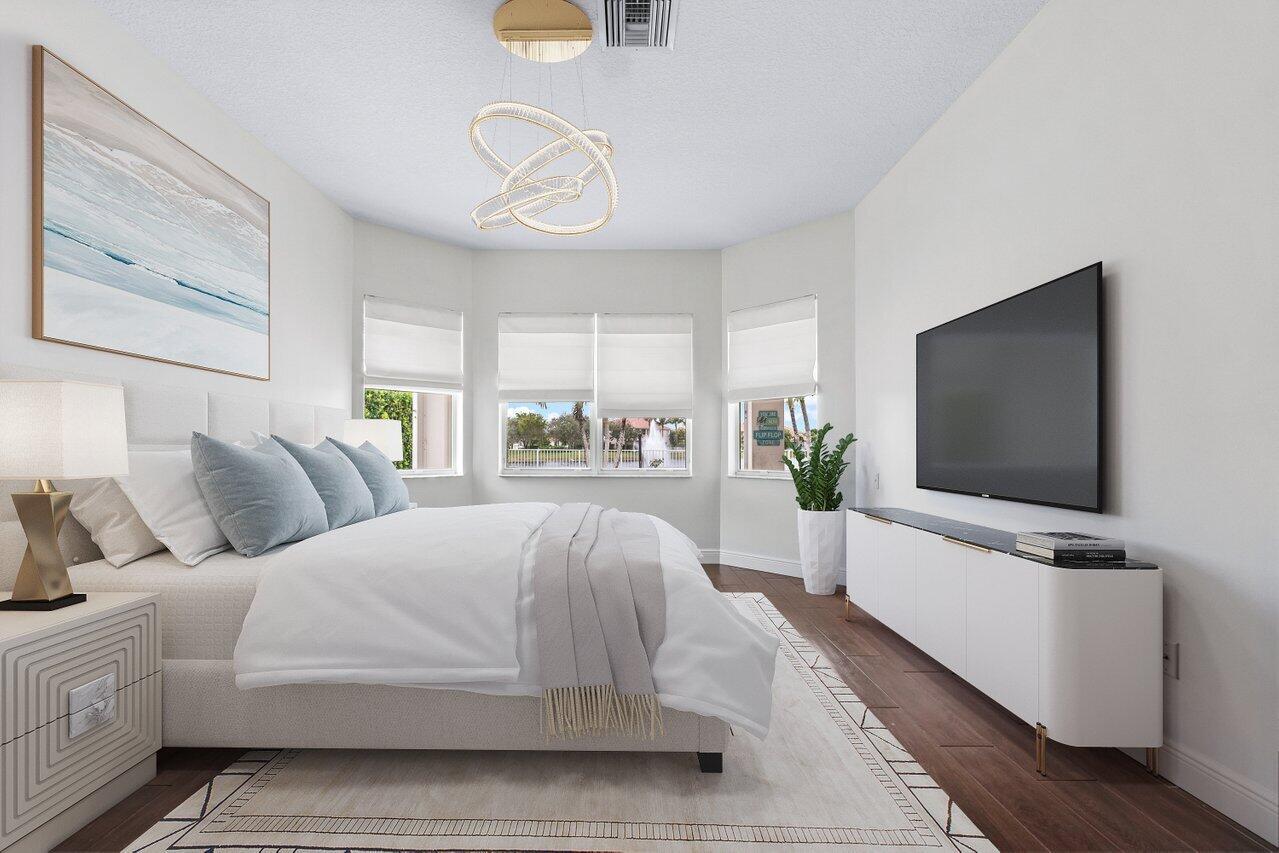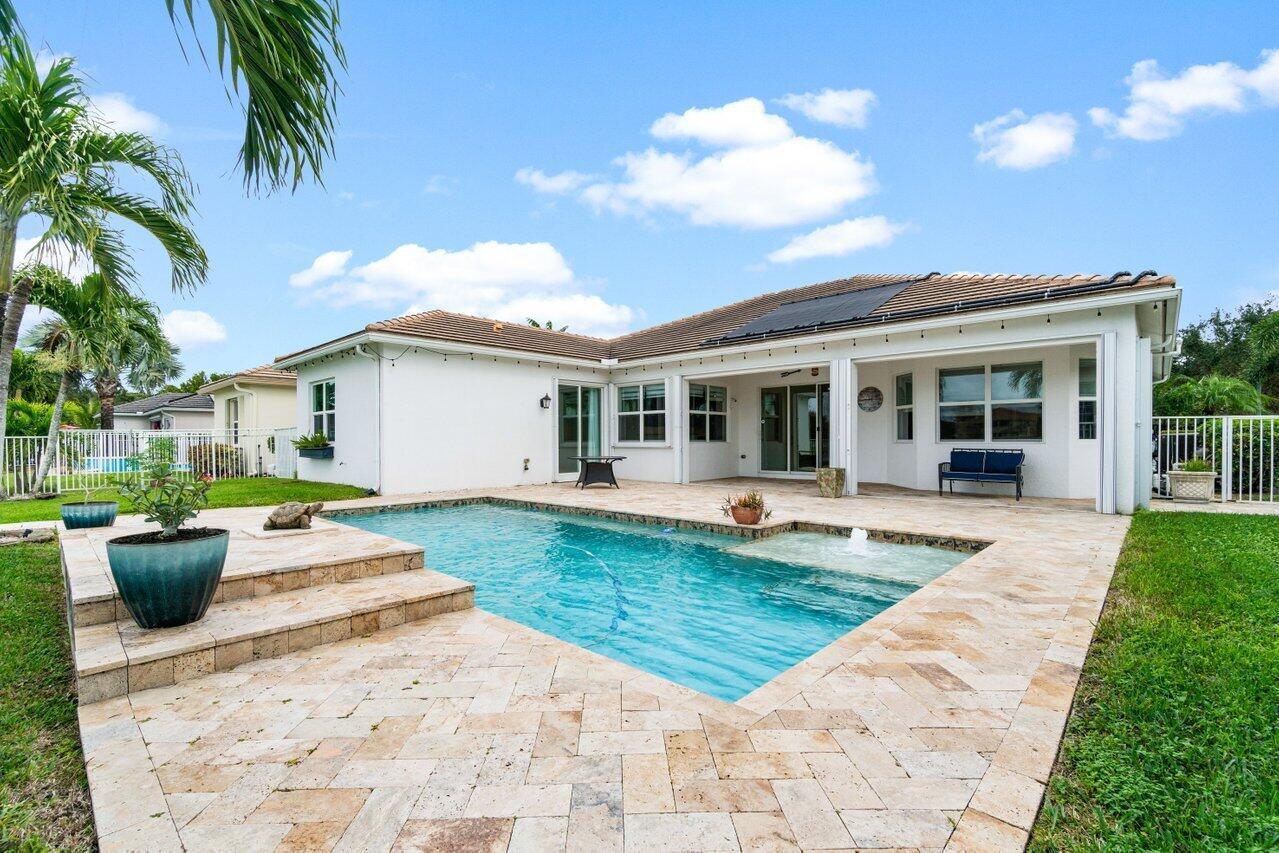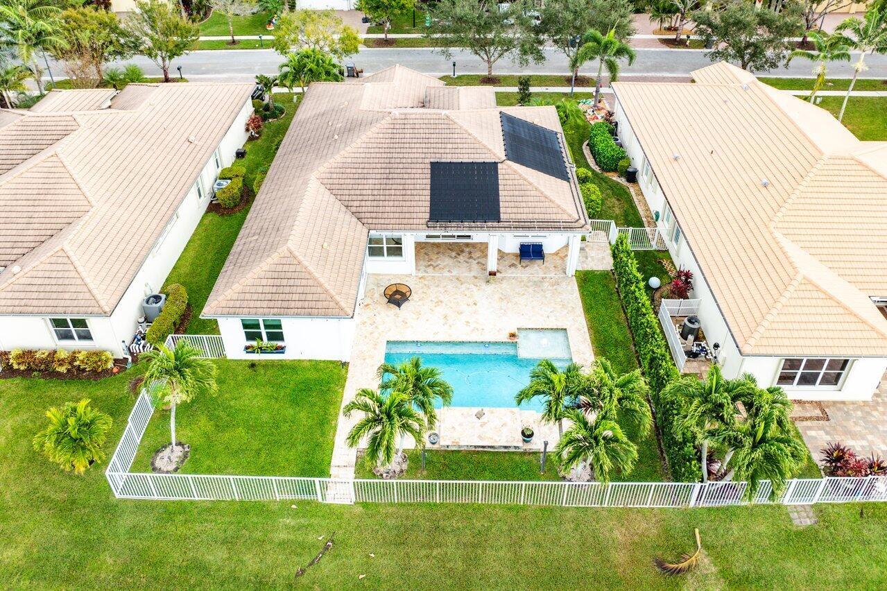 PRICE IMPROVEMENT! You'll love this beautiful one-story pool home in a stellar location at Greenwood Manor; lakefront, bright and airy; very nice split floor plan. Owners have kept this 4 bed/3 bath/3 car-garage home in top-notch shape. Large primary bedroom with 2 walk-in closets and double vanity cabinet. Brand-new UV light equipped AC system; solar pool heated, salt-chlorination pool with LED lights. Family-oriented & pet friendly community: clubhouse, pool, fitness, tennis. Ideally located, giving easy access in a matter of minutes to the main roads as Southern Blvd, Turnpike, as well as PBI Airport, the Mall at Wellington Green, Wellington Medical Center; approx 15 miles to the beaches and Lion Country Safari; top rated schools. Convenient; just waiting for you!