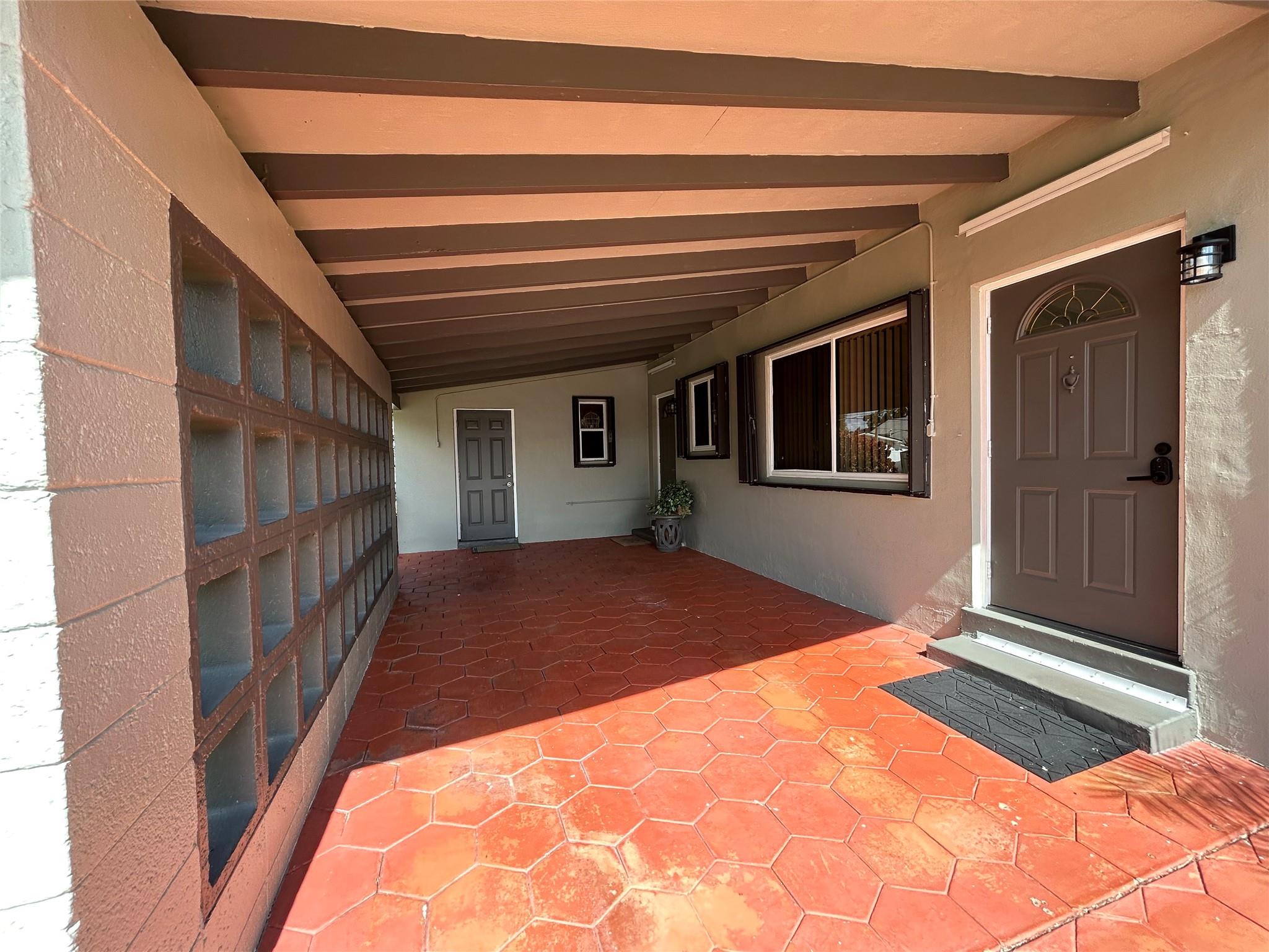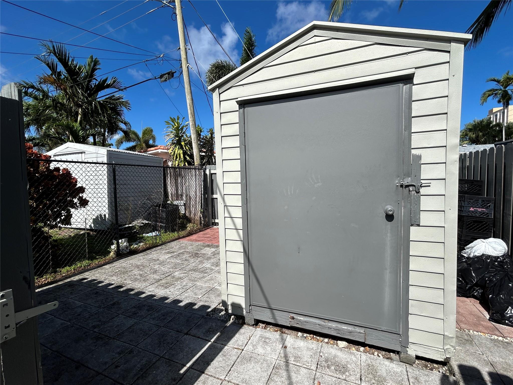 Imagine yourself living in this charming light -filled 2 bedroom 2 bath open concept and vaulted ceiling home , situated East of US1 , 1 mile from the beach and shopping malls . This home is tiled throughout except for pristine carpeting in the large master bedroom with a beautiful remodeled bathroom and a large tiled guest room lodging an adjacent bathroom with a bathtub shower combination . This property offers a brand new roof (2024), new AC (2023) , new gas water heater (2023) , new gas range (2024) , washer , dryer and refrigerator (2021 ) , ample mature palm trees, an enclosed shed , plenty of space for a beautiful pool on a corner lot !! Don't miss out on this great opportunity !!