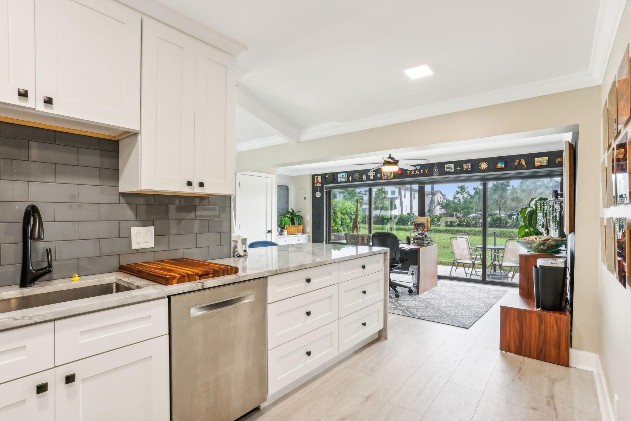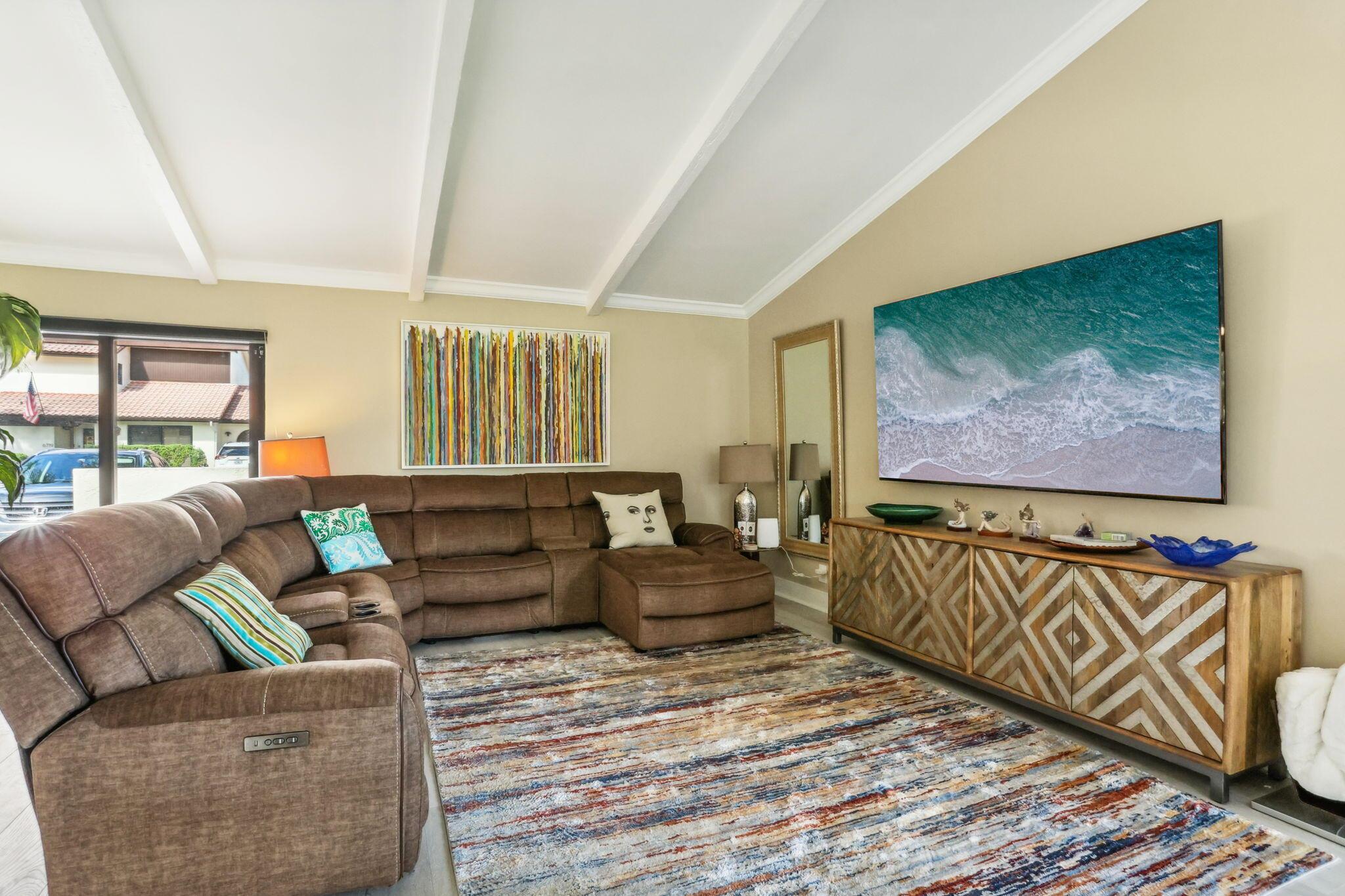 Priced to sell! Gorgeous, renovated 2/2 end villa in central Boca w/ IMPACT WINDOWS! The charming entryway welcomes you into this designer-decorated condo featuring luxury laminate flooring, plentiful natural light, and neutral decor. Remodeled kitchen with quartz countertops, glass tiled backsplash, upgraded stainless steel appliances, and ample cabinet space. Open floor plan w/ vaulted, beamed ceilings. The eye-catching renovations continue into bedrooms w/ custom closets, and bathrooms w/ high-end fixtures and quartz countertops. Low monthly fee includes a pool, landscaping, cable and exterior maintenance. Pet-friendly community in central Boca, with access to all of Boca's fine restaurants, shopping, and beaches. Furnishings and large TV's negotiable.