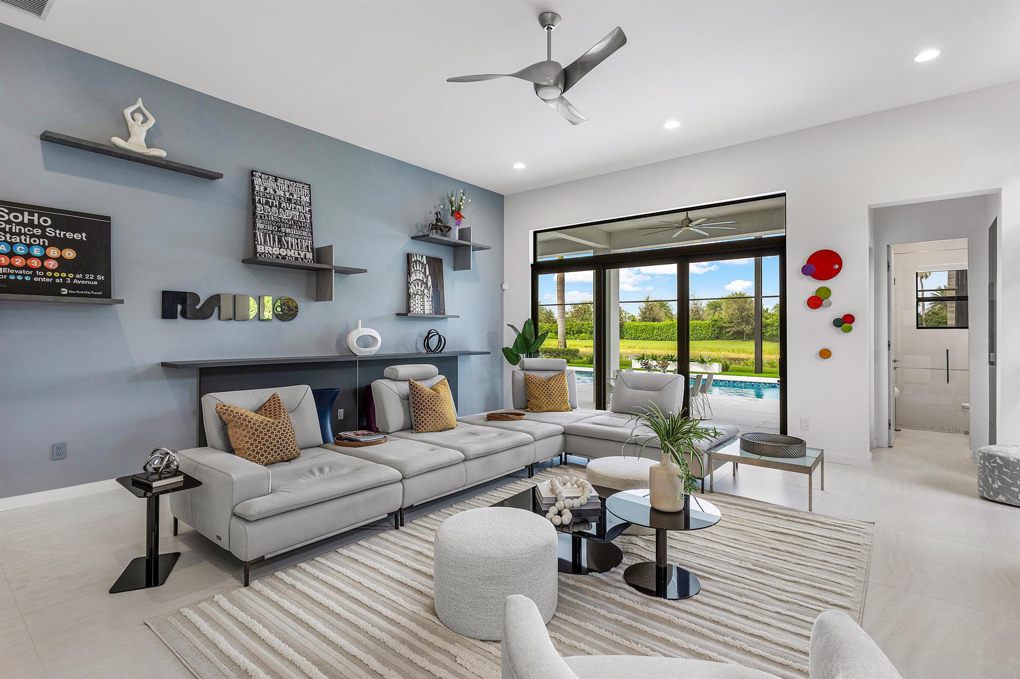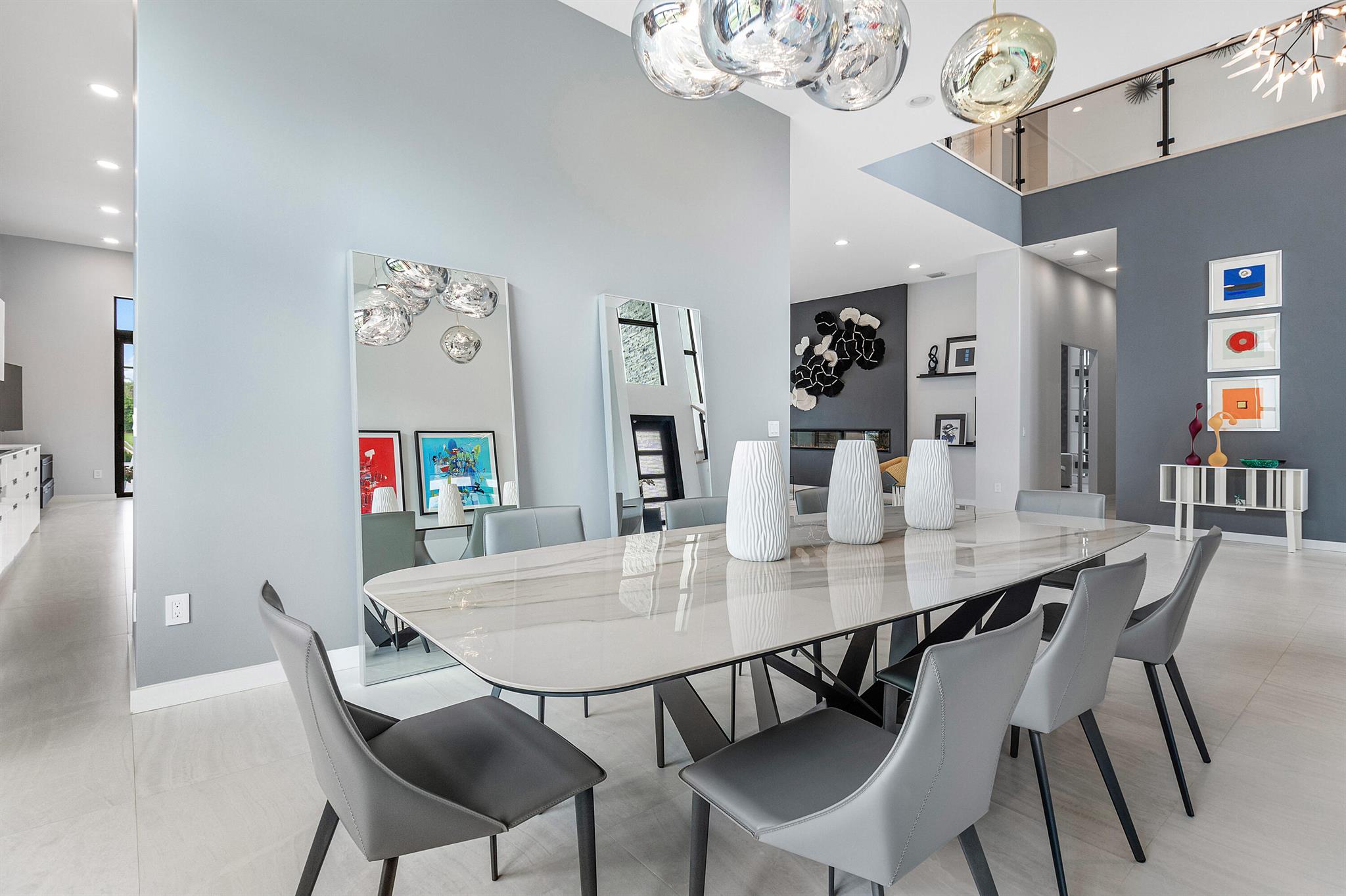 Step into an unparalleled custom contemporary estate in Boca Bridges, where modern elegance meets meticulous design by the renowned Mancini Duffy firm. Every inch of this exquisite home has been thoughtfully curated, featuring luxury finishes imported from Italy and Spain that add depth and sophistication to each space. The grand entrance reveals a sweeping open-concept layout adorned with a custom glass staircase, elegant CavaStone porcelain floors, and striking Sonneman chandeliers that set the tone for this exceptional residence.In the heart of the home, the family room centers around a sleek linear fireplace, effortlessly flowing into the kitchen and dining areas. Natural light fills the space, illuminating the custom Pedini kitchen outfitted with premium Miele integrated
