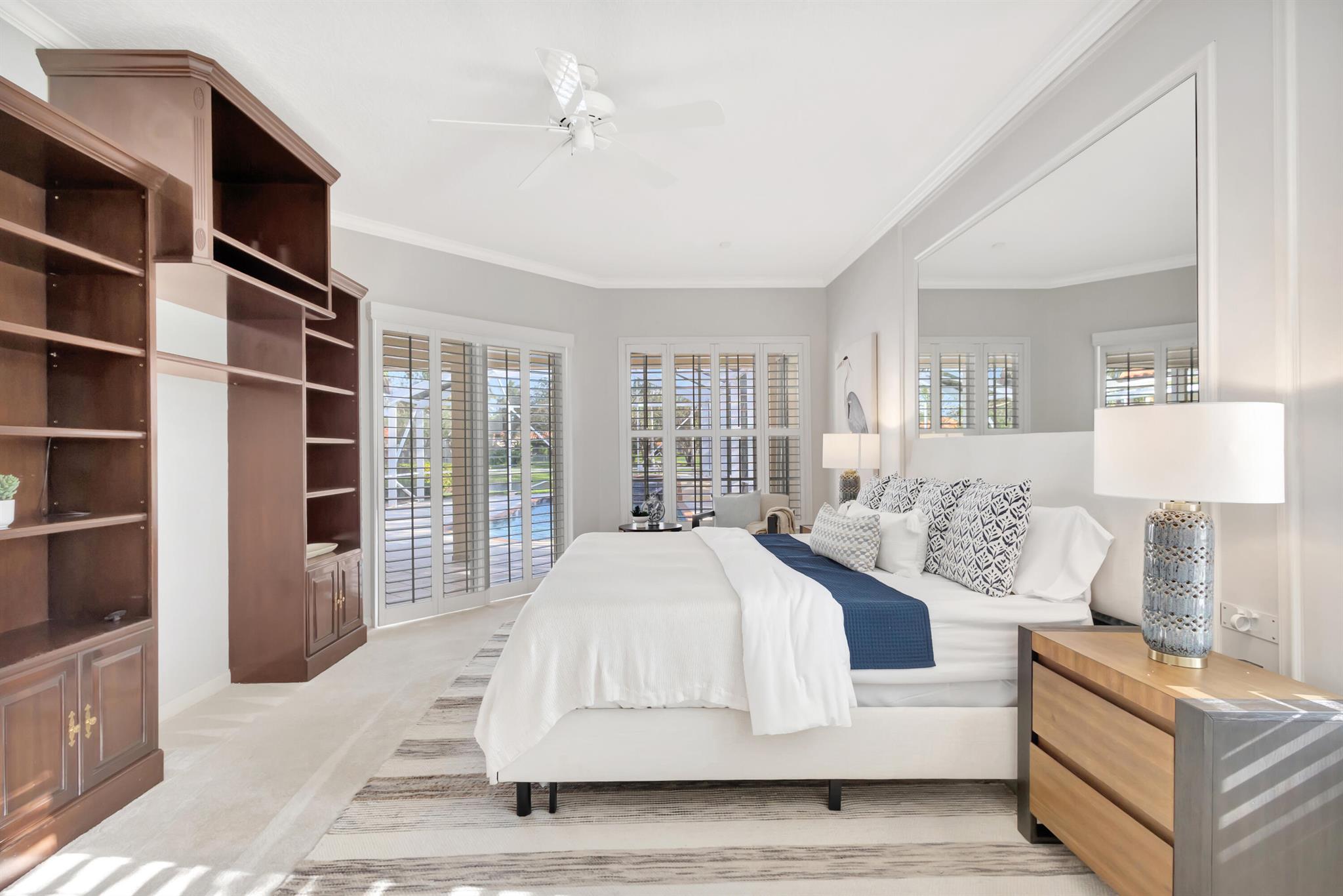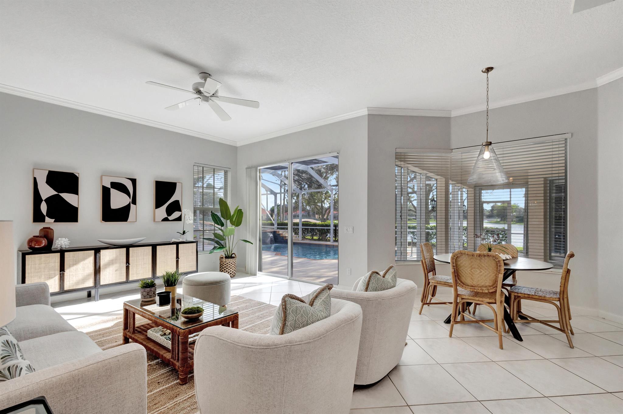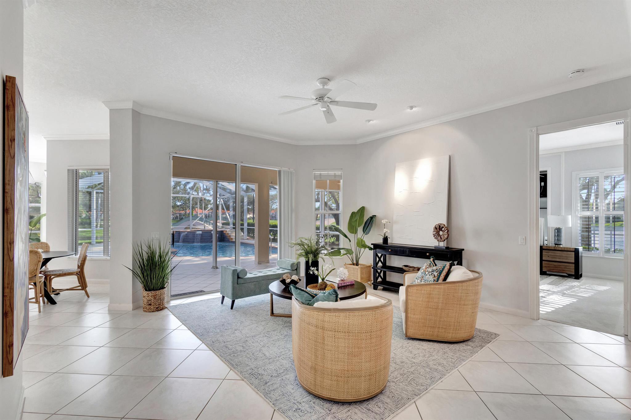 THE ONLY WINDSOR MODEL AVAILABLE IN RIVERWALK! Exceptional pool home privately nestled on ONE OF THE BEST LOTS in the community! This sprawling residence features 4 bedrooms plus office, 3 full bathrooms, over 2,500 SF under air, newer roof (2020), formal living and dining rooms, separate family room, partial impact windows and oversized screened pool and patio with rolldown shutters. This picturesque home is meticulously maintained and nestled on a rare corner lot at the end of a cul-de-sac surrounded by panoramic lake views. Impressive upon entry from your elegant foyer, this beautiful home is adorned with volume ceilings, crown molding, tons of natural light, formal dining room with Plantation shutters, and stately office with French doors and custom wall-to-ceiling built-ins.