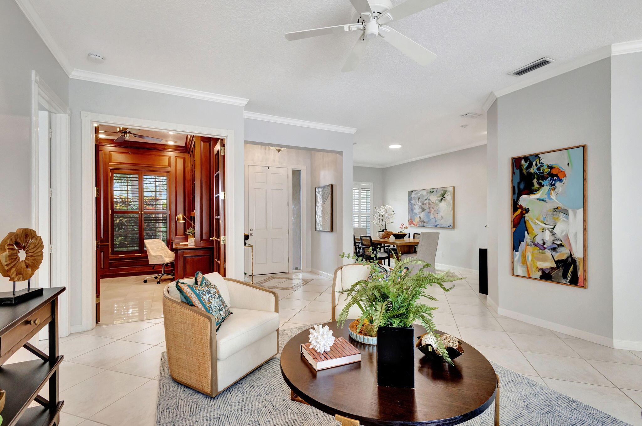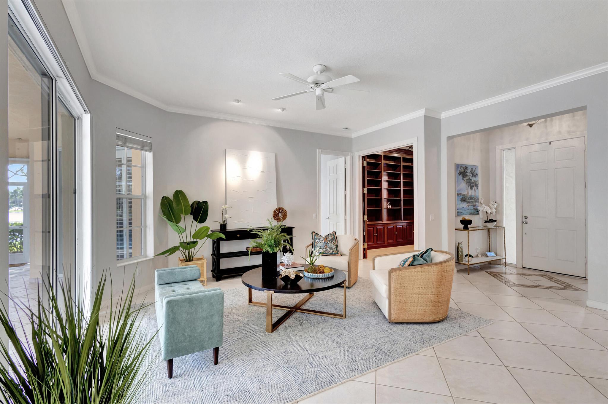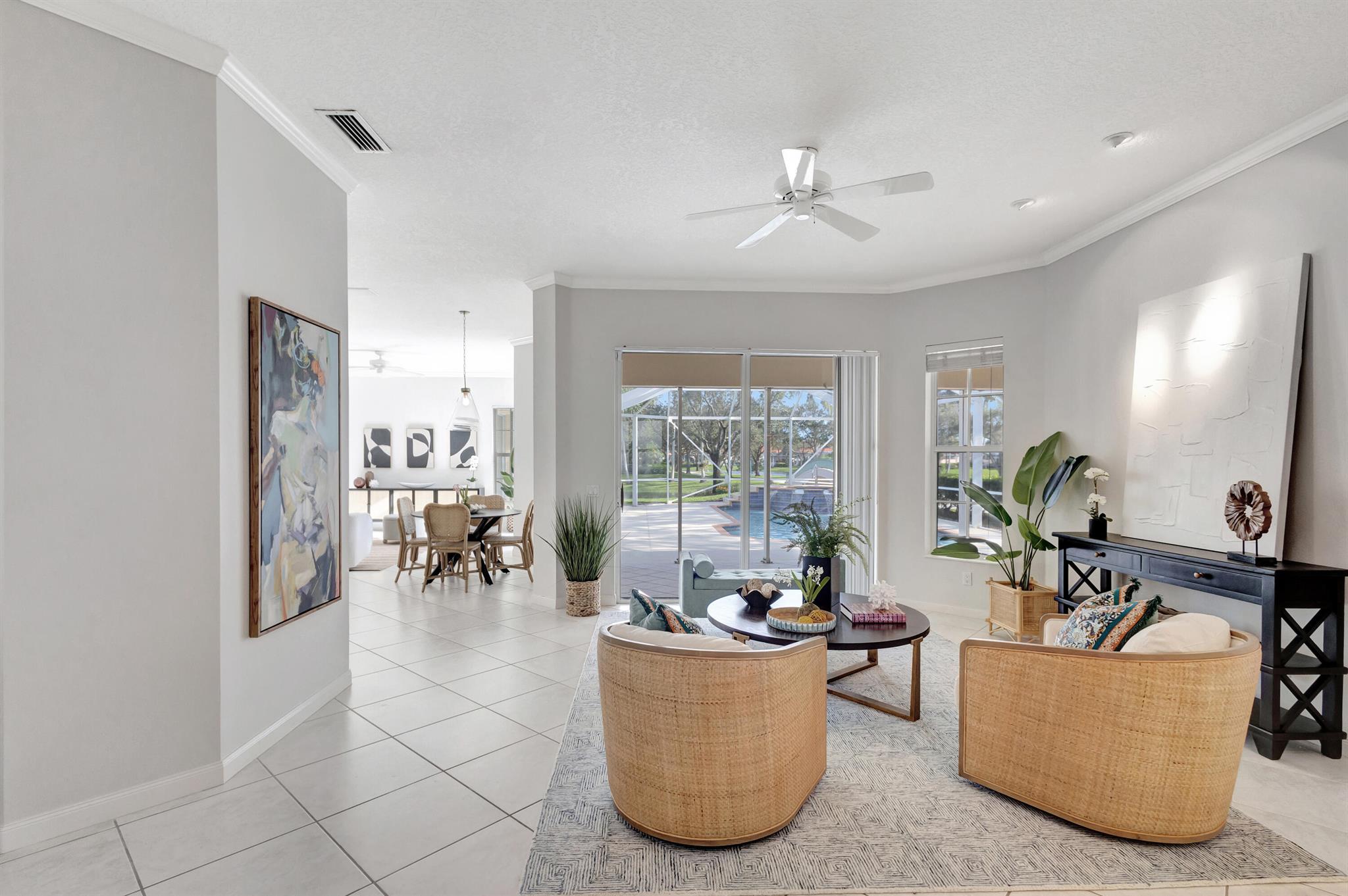 THE ONLY WINDSOR MODEL AVAILABLE IN RIVERWALK! Exceptional pool home privately nestled on ONE OF THE BEST LOTS in the community! This sprawling residence features 4 bedrooms plus office, 3 full bathrooms, over 2,500 SF under air, newer roof (2020), formal living and dining rooms, separate family room, partial impact windows and oversized screened pool and patio with rolldown shutters. This picturesque home is meticulously maintained and nestled on a rare corner lot at the end of a cul-de-sac surrounded by panoramic lake views. Impressive upon entry from your elegant foyer, this beautiful home is adorned with volume ceilings, crown molding, tons of natural light, formal dining room with Plantation shutters, and stately office with French doors and custom wall-to-ceiling built-ins.