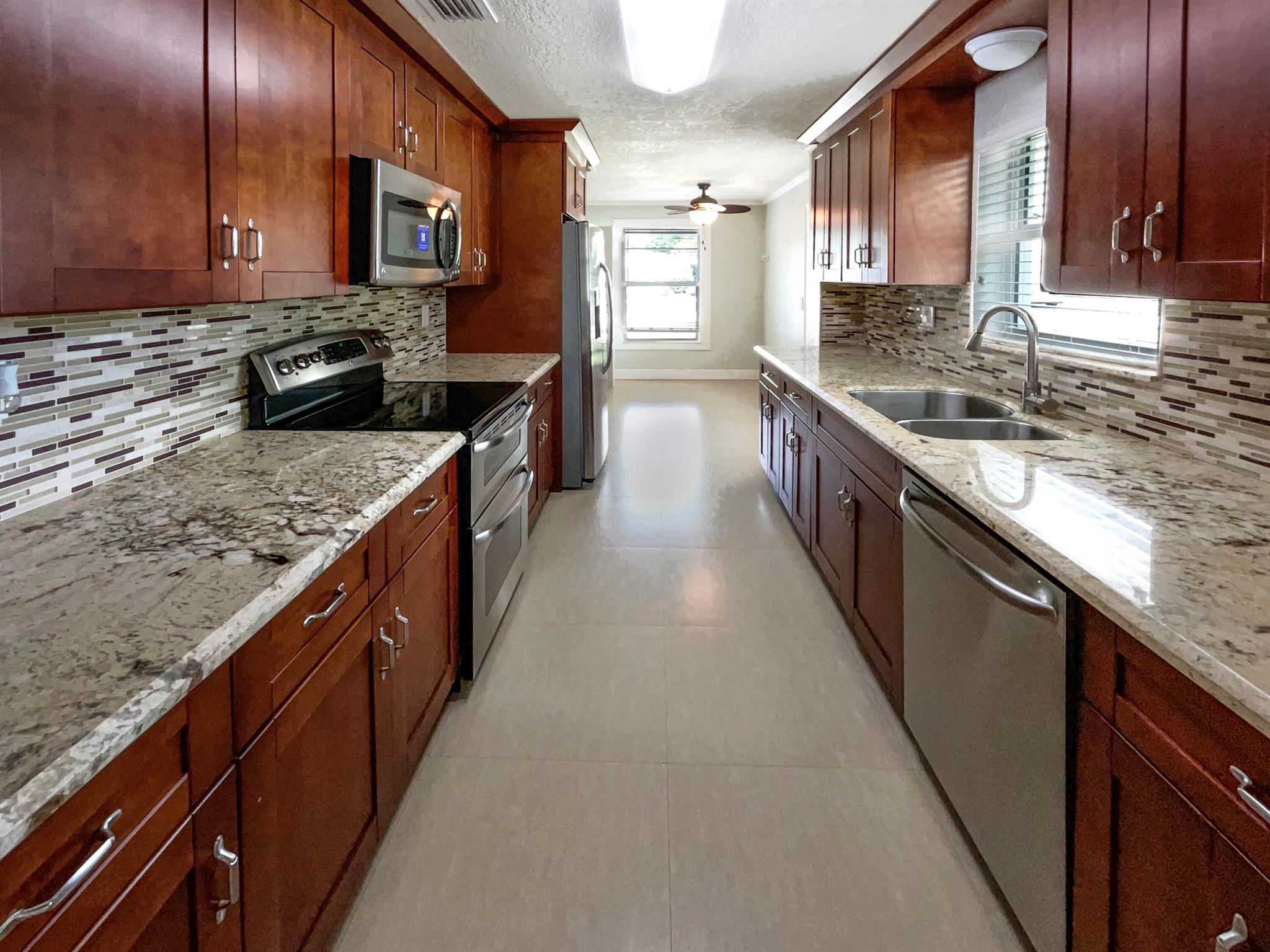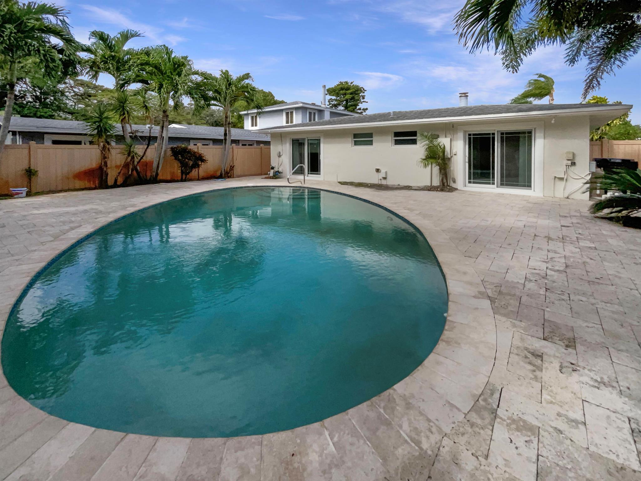 Sun-splashed pool home in Fort Lauderdale's 33311! Curb appeal shines with a fresh white brick facade, paver driveway/walkway, lush lawn, and a rare one-car garage. Inside, enjoy an open living area with rich wood floors, beam accents, and a stone fireplace. A wall of windows and a bright Florida room fill the home with natural light, offering flexible dining or office space. The galley kitchen boasts wood cabinetry, granite counters, glass-tile backsplash, and stainless appliances. Multiple sliders open to a private resort-style yard with a sparkling free-form pool, tropical palms, and paver deck--perfect for entertaining or relaxing. Move-in ready near Wilton Manors, Downtown, Brightline, I-95 & beaches.