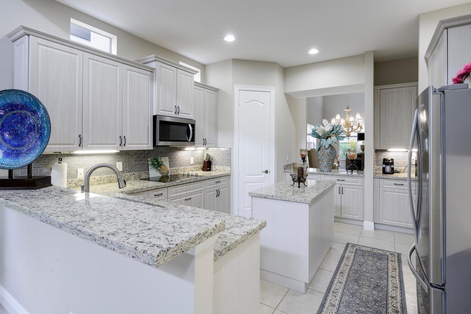 This large four bedroom with a loft, three and a half bath pool home is located in a beautifully maintained, gated community centrally located near shops, restaurants, the airport, and the beach. The spacious, private primary bedroom is located on the main floor. The island kitchen is centrally located between the family room and the formal entertaining area. A covered, screened lania provides shade and opens to the fenced pool and backyard. The large three car garage offers room for multiple vehicles and all the toys.