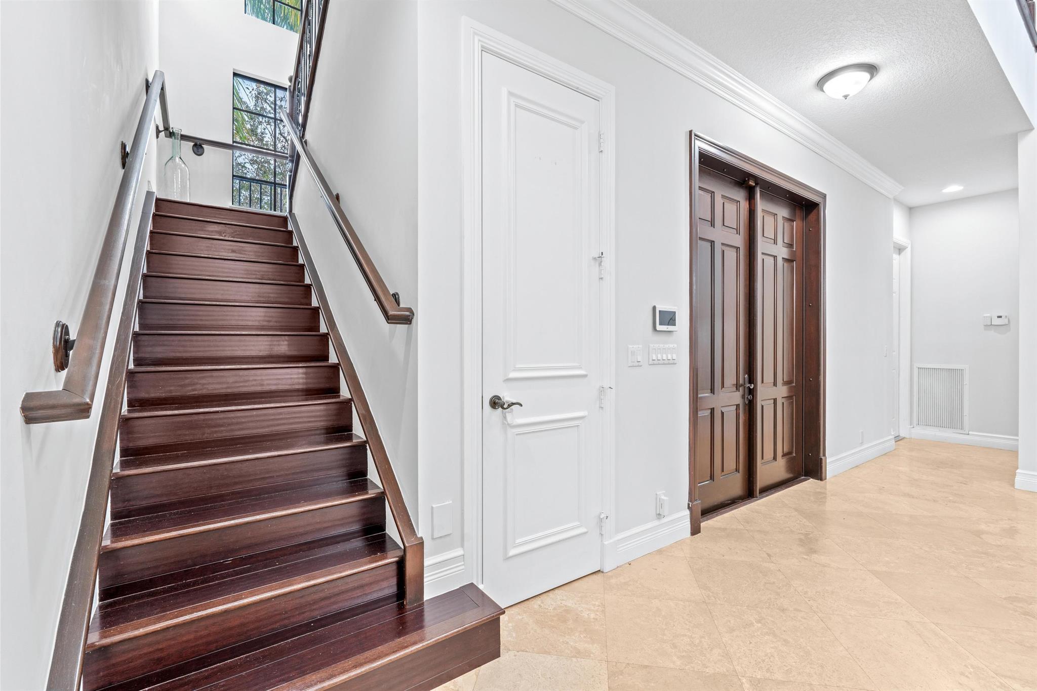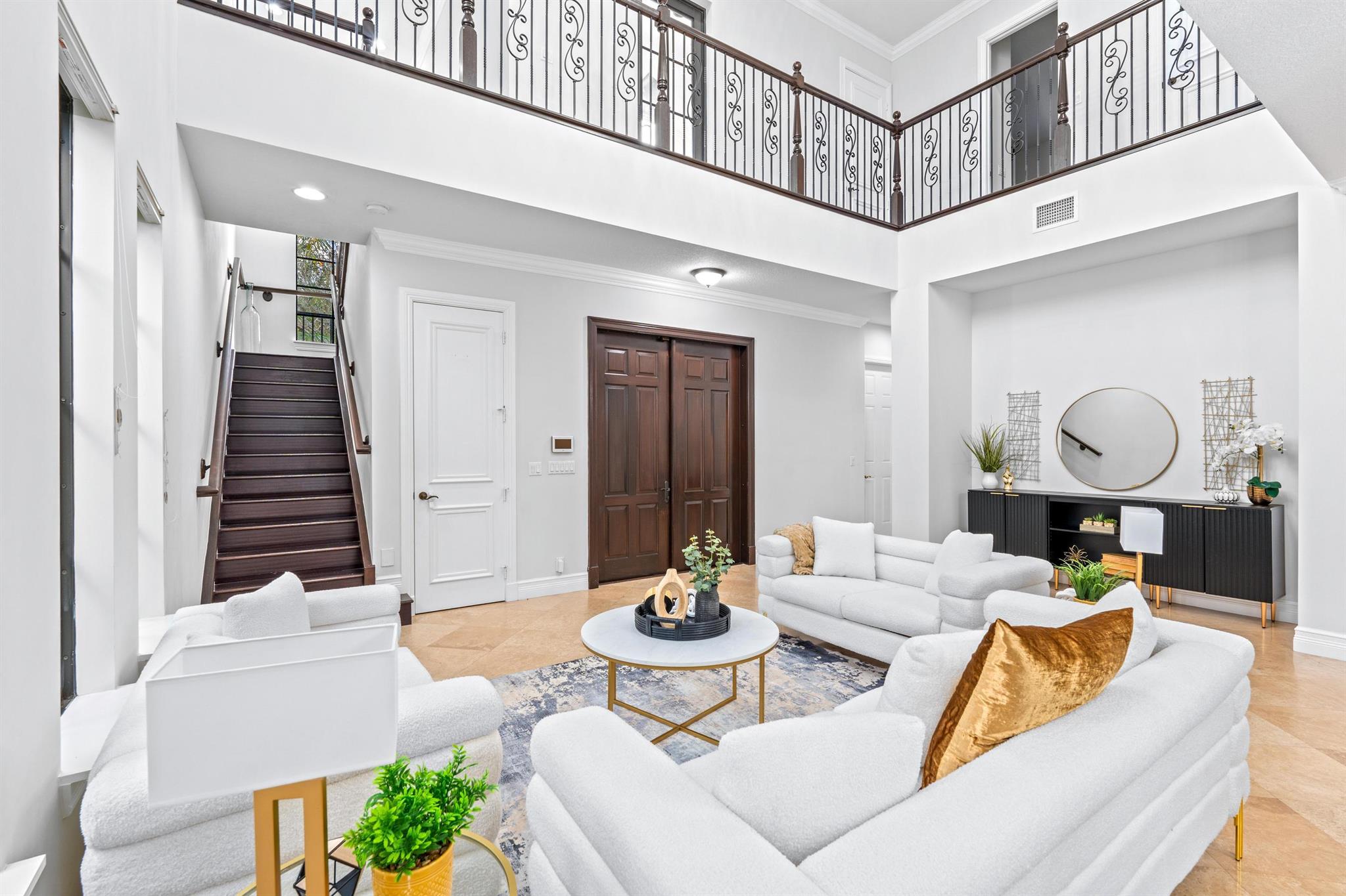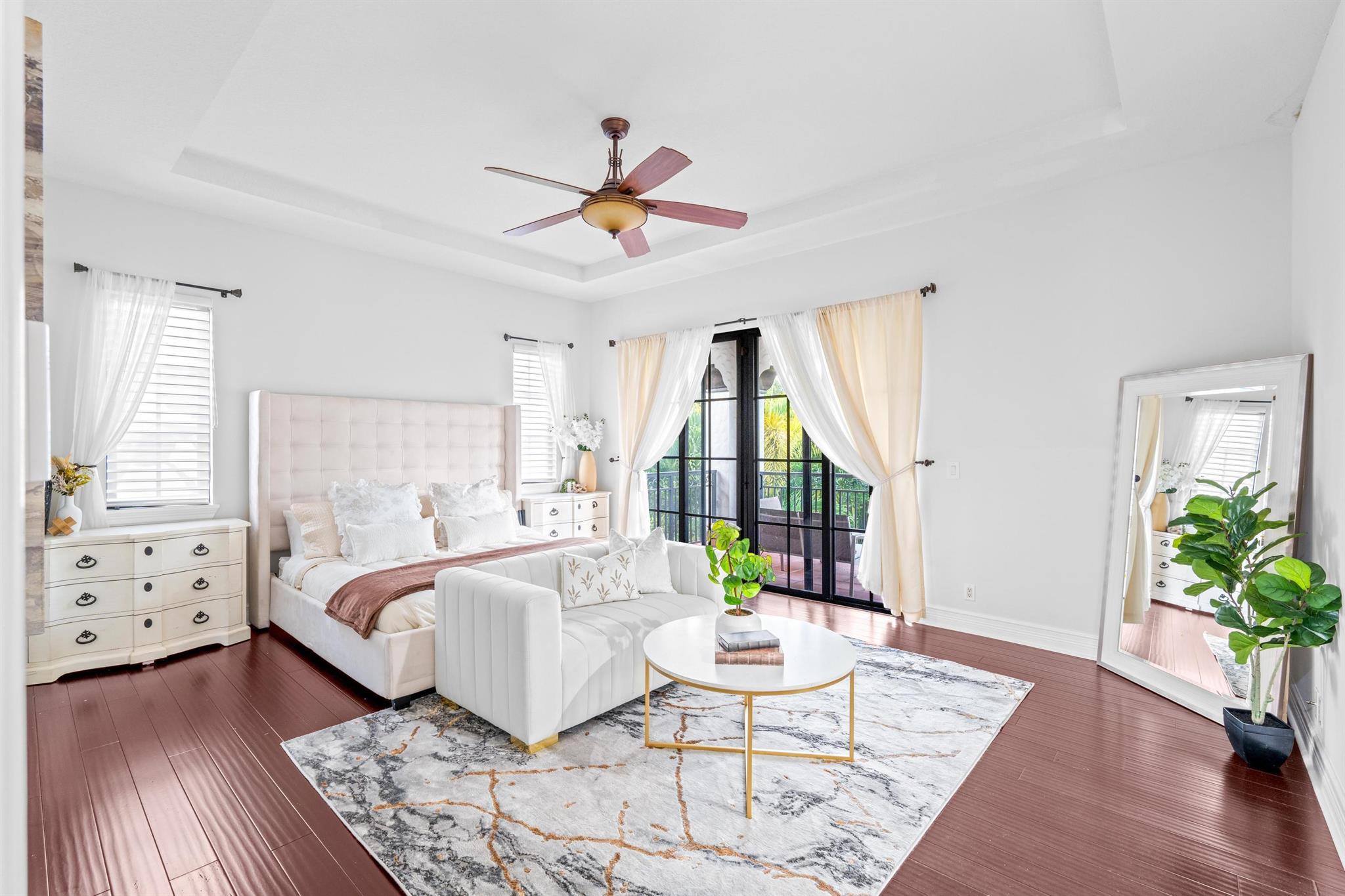 Experience luxury living in the prestigious Parkland Golf & Country Club in this immaculate 5 bedroom, 4 bathroom pool home. The house sits on a premium end lot with no neighbors to one side complete with a private backyard that exudes tropical paradise. Inside you will be greeted with soaring ceilings as you step into the formal living and dining room. The updated kitchen is open to the great room and features a timeless design with a spacious island, abundant cabinet space and convenient features such as a double wall oven. The light filled breakfast room offers a stunning view of the resort style backyard through stylish black paned windows. The home has no carpet with marble flooring thought the main areas and wood on the staircase and in the bedrooms.