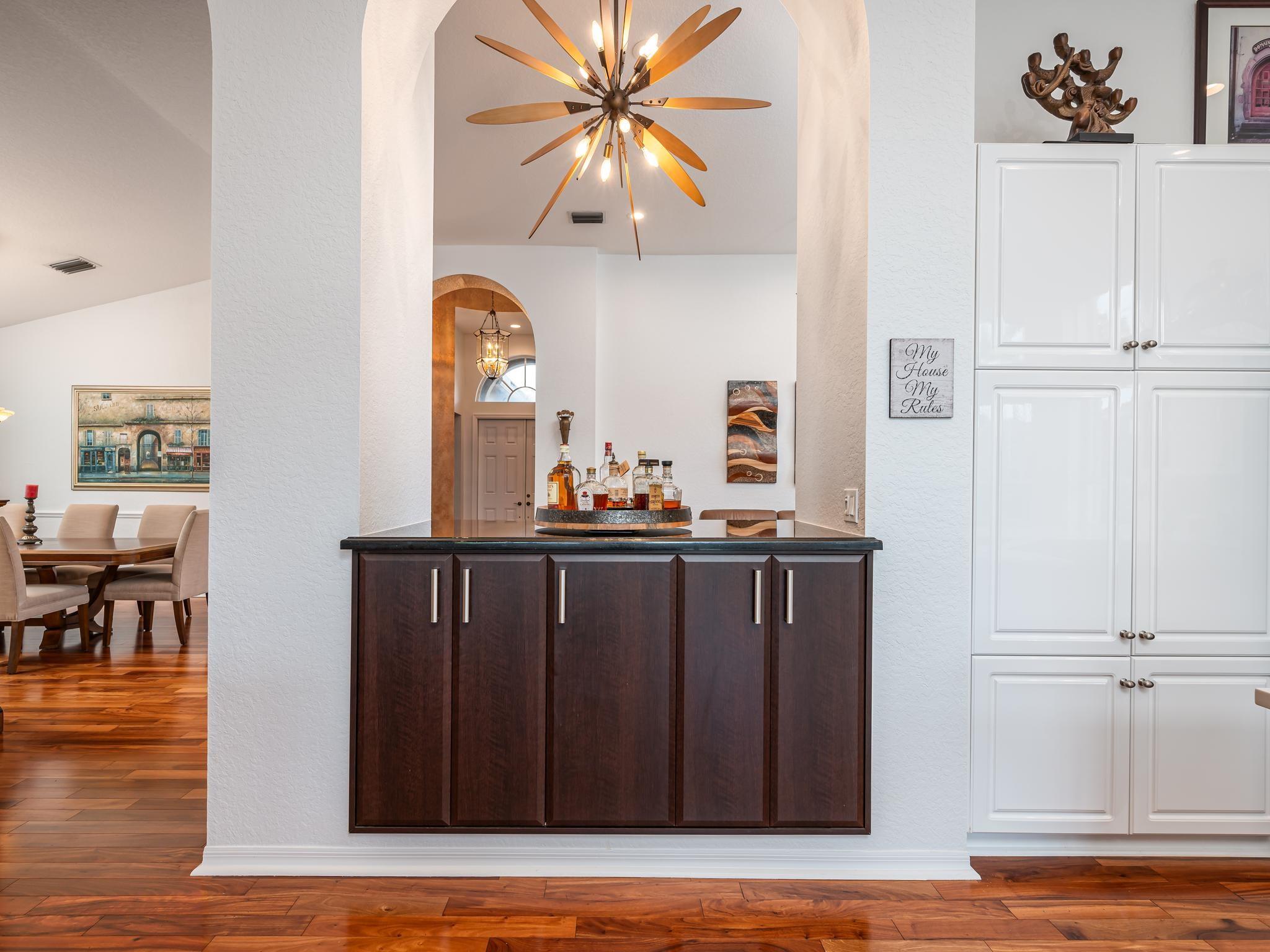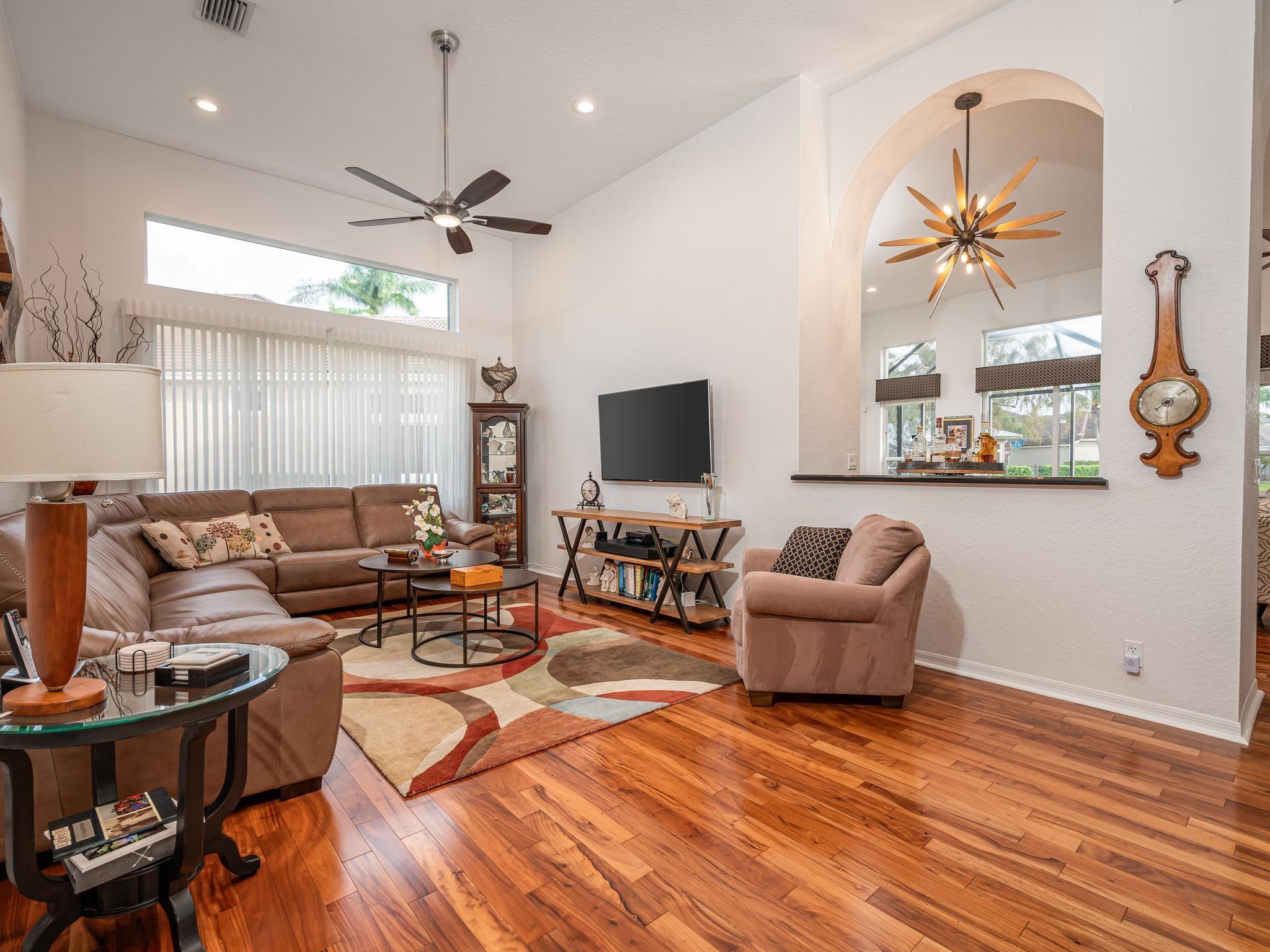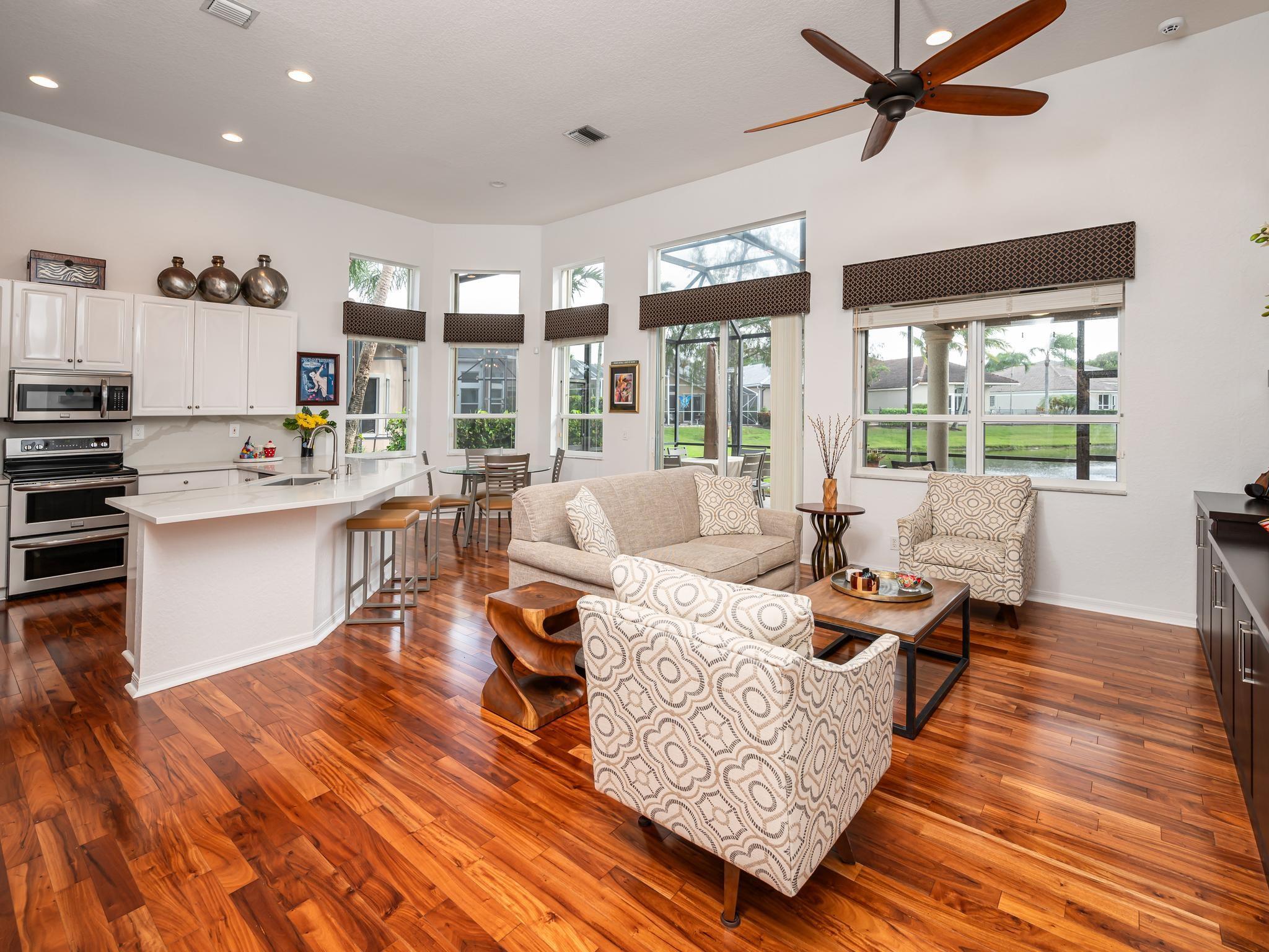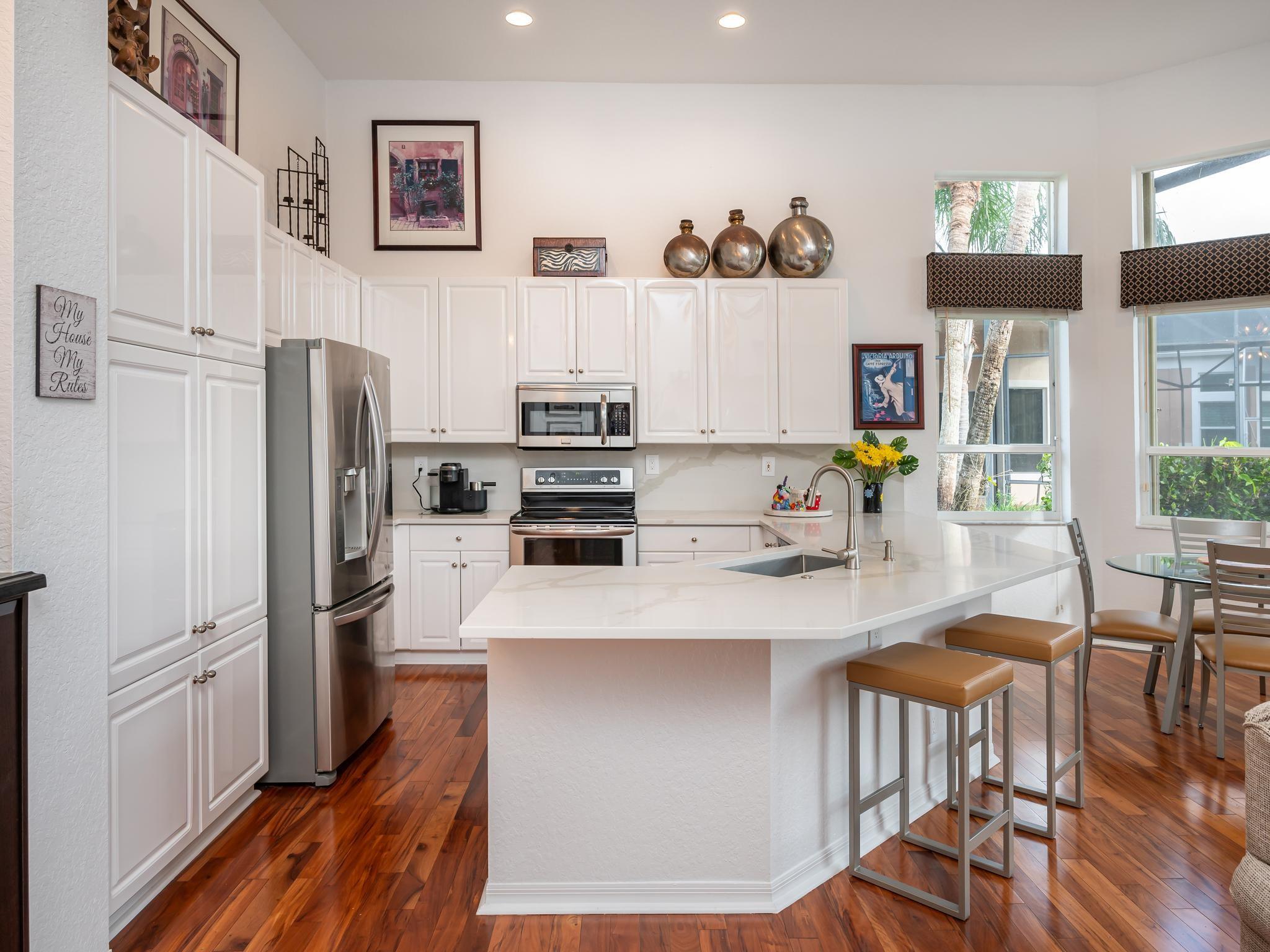 Model condition with a touch of class around every corner on this oversized waterfront lot. Major updates including kitchen, baths, flooring, Roof 2023 & more. 3 car garage with oversized driveway. Grand open feel, high ceilings, & tons of light. Extended screened patio overlooking water. Included is Irrigation from lake which helps keep water consumption down. Wood floors throughout main areas. All appliances newer and well maintained. Accordion Hurricane Shutters. Located in the Pointe of Heron Bay where lawn care, trees trimming, fertilization, and weeding are included along with exterior painting. Guard Gated with the best amenities - Children’s water park, 12 clay tennis courts, 3 hard courts, 6 pickleball courts, 2 heated pools, 2 clubhouses, 2 Gyms, & more