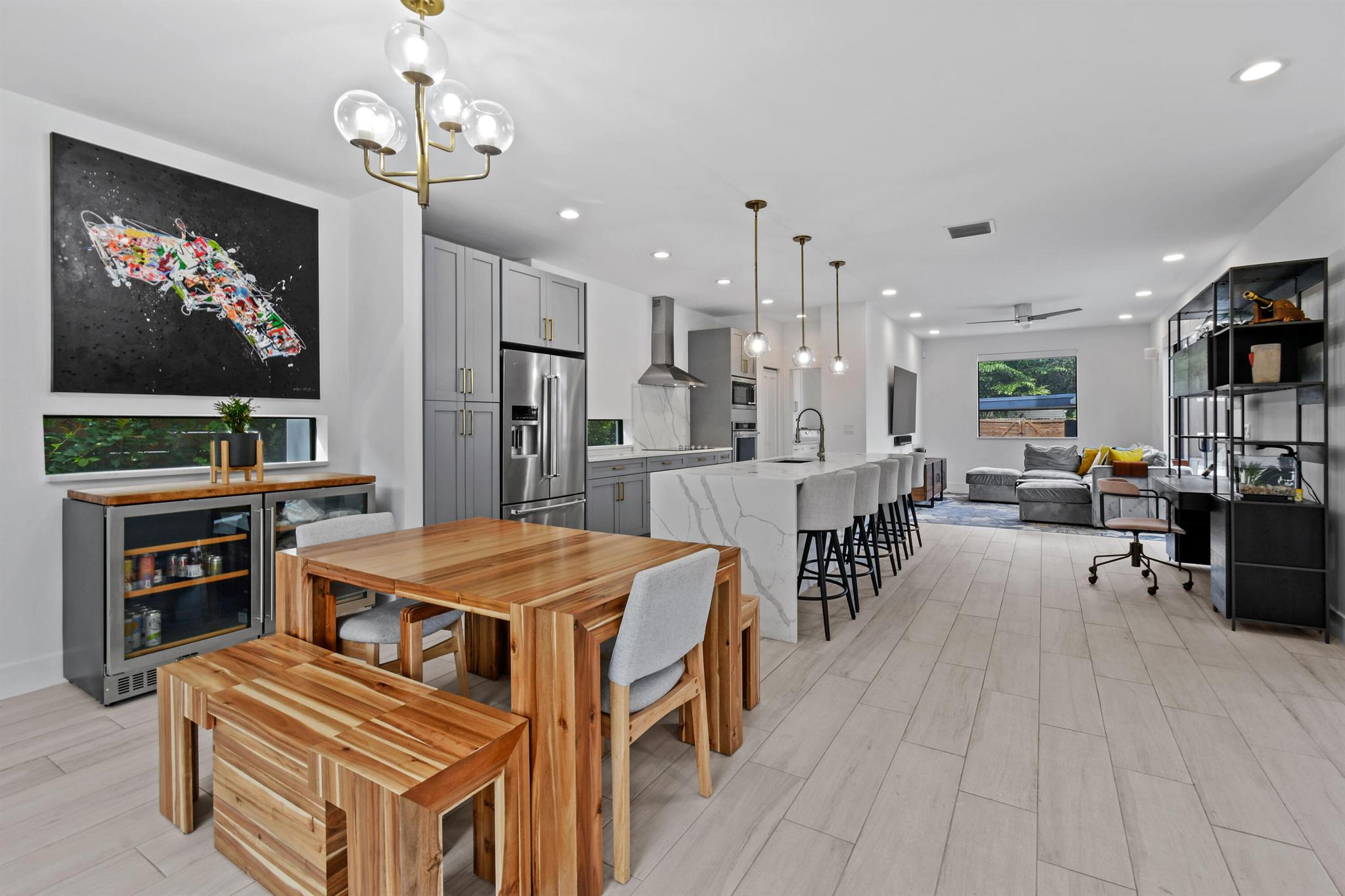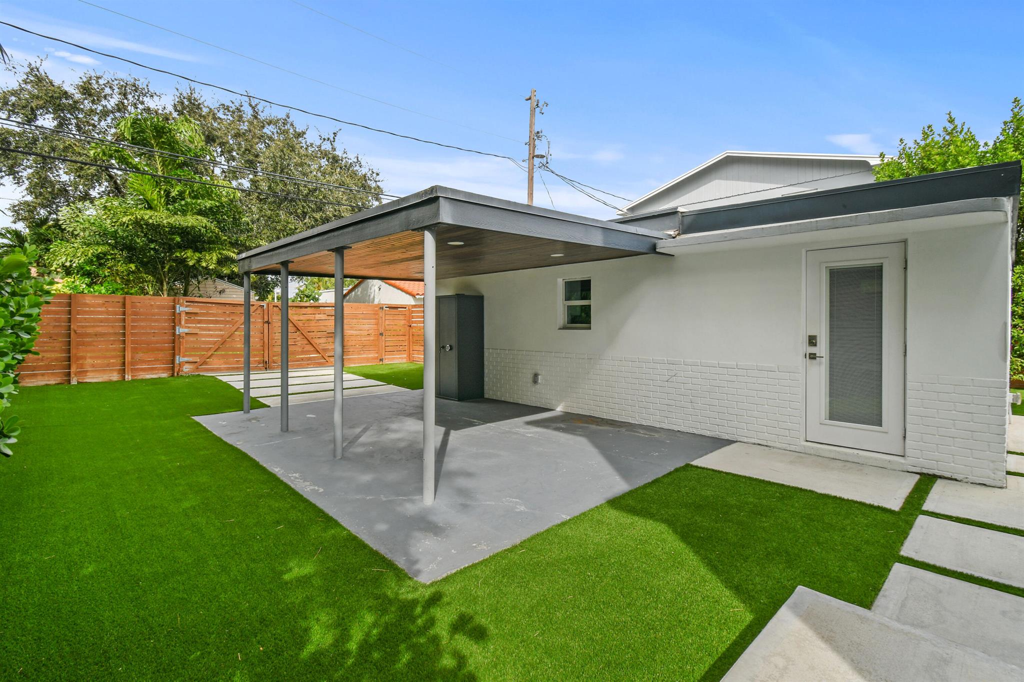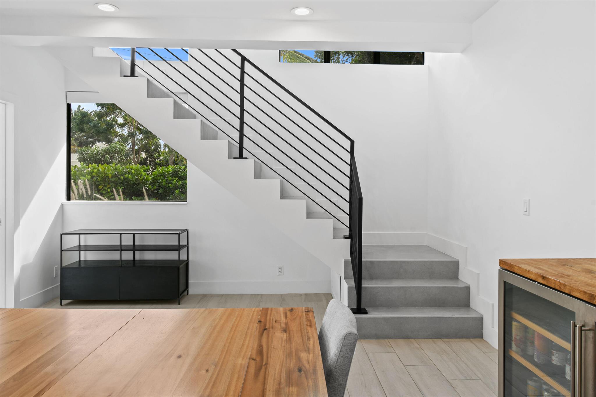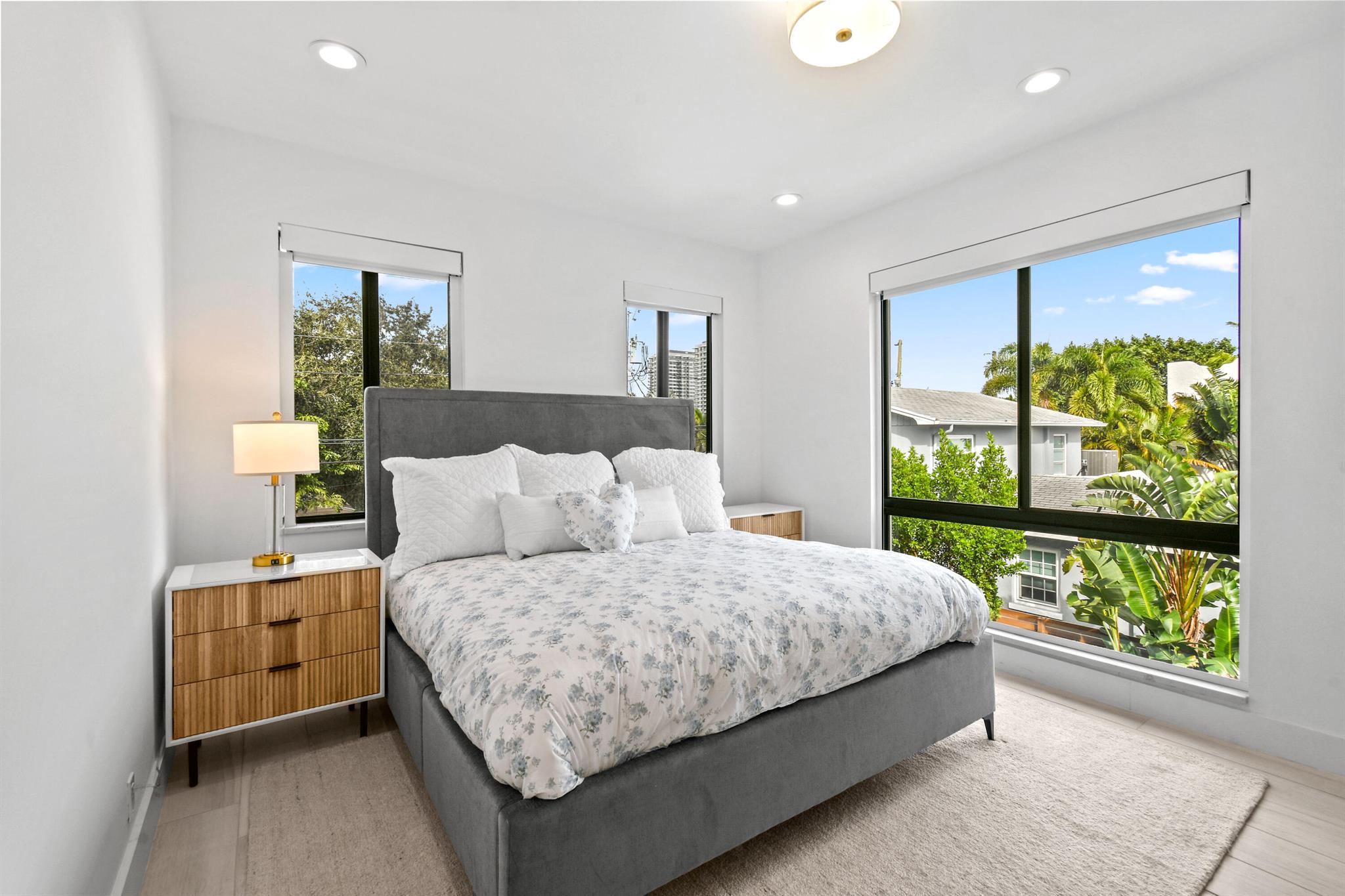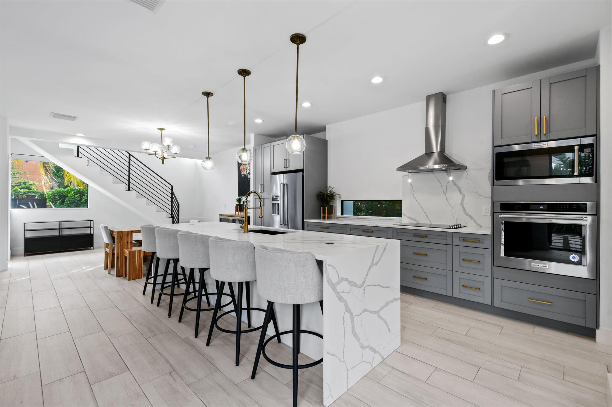 Stunning newer construction, contemporary CBS home with a private guest house sits just two streets from Flagler Drive in the historic Northwood neighborhood. Offering nearly 2,800 square feet of combined living space, this unique property includes both a main residence and a guest house. The main home spans approximately 2,100 square feet and features 3 bedrooms, 2.5 bathrooms, and elegant porcelain tile throughout. The kitchen showcases a spacious quartz island with a waterfall edge, a farmhouse sink, stainless steel appliances including a top-of-the-line dishwasher. Surrounded by privacy hedges with an electronic front gate, fully turfed yard, this home also features Lutron shades, impact-resistant glass, brand new A/C and security system in both houses including Ring & CCTV with