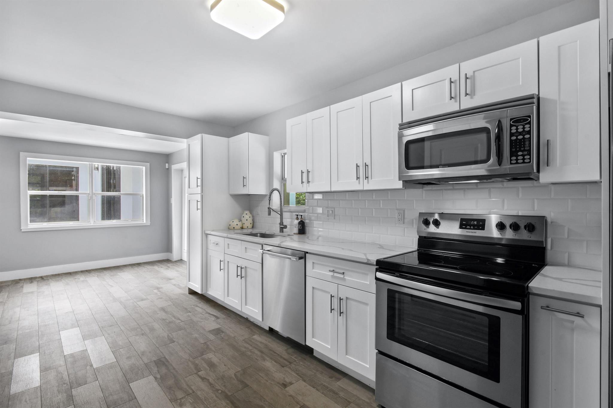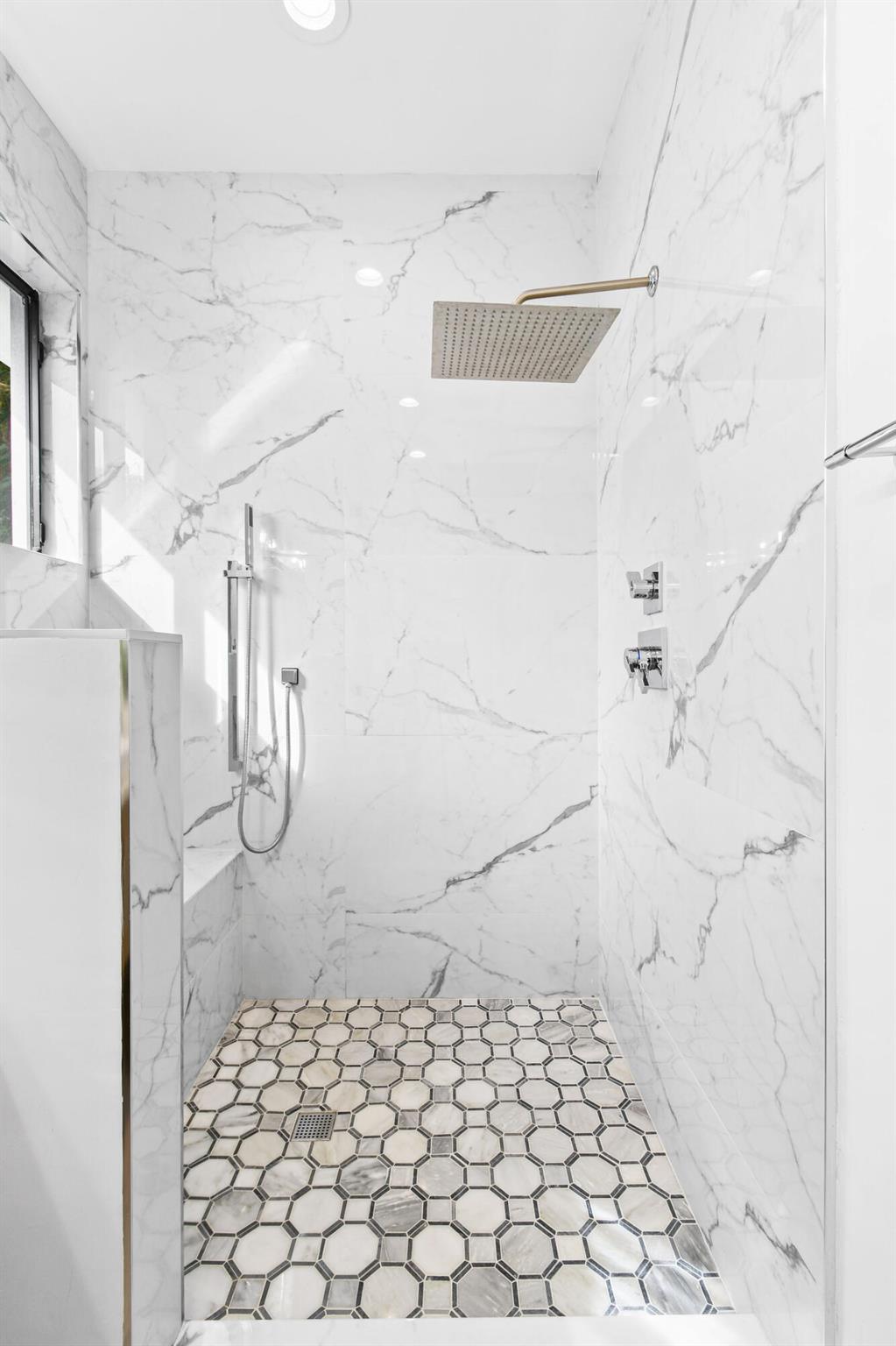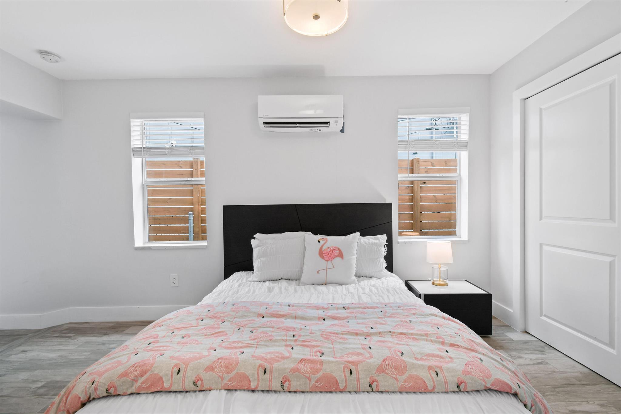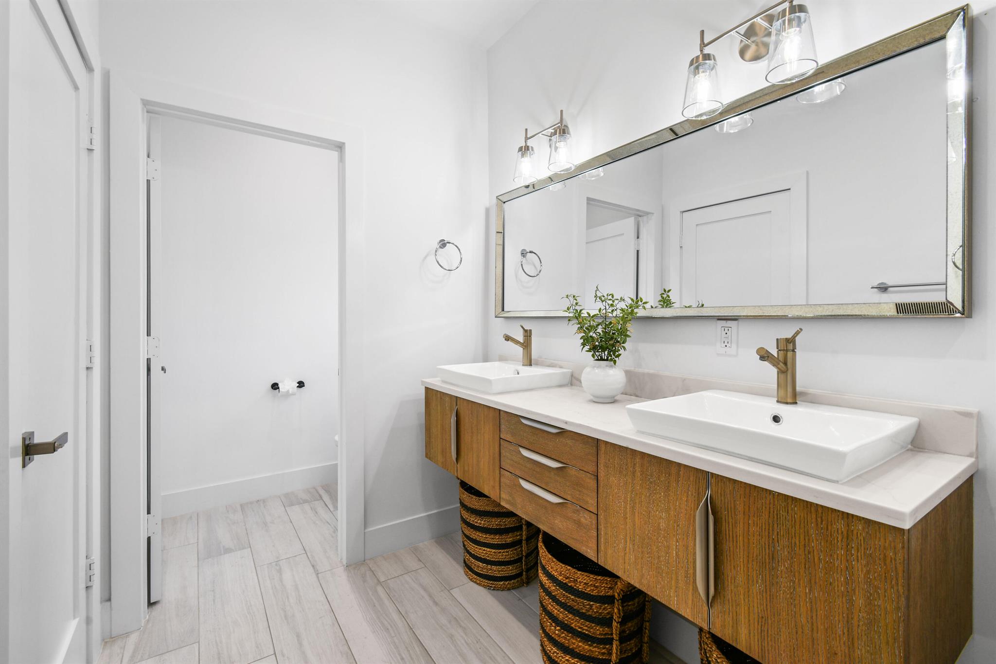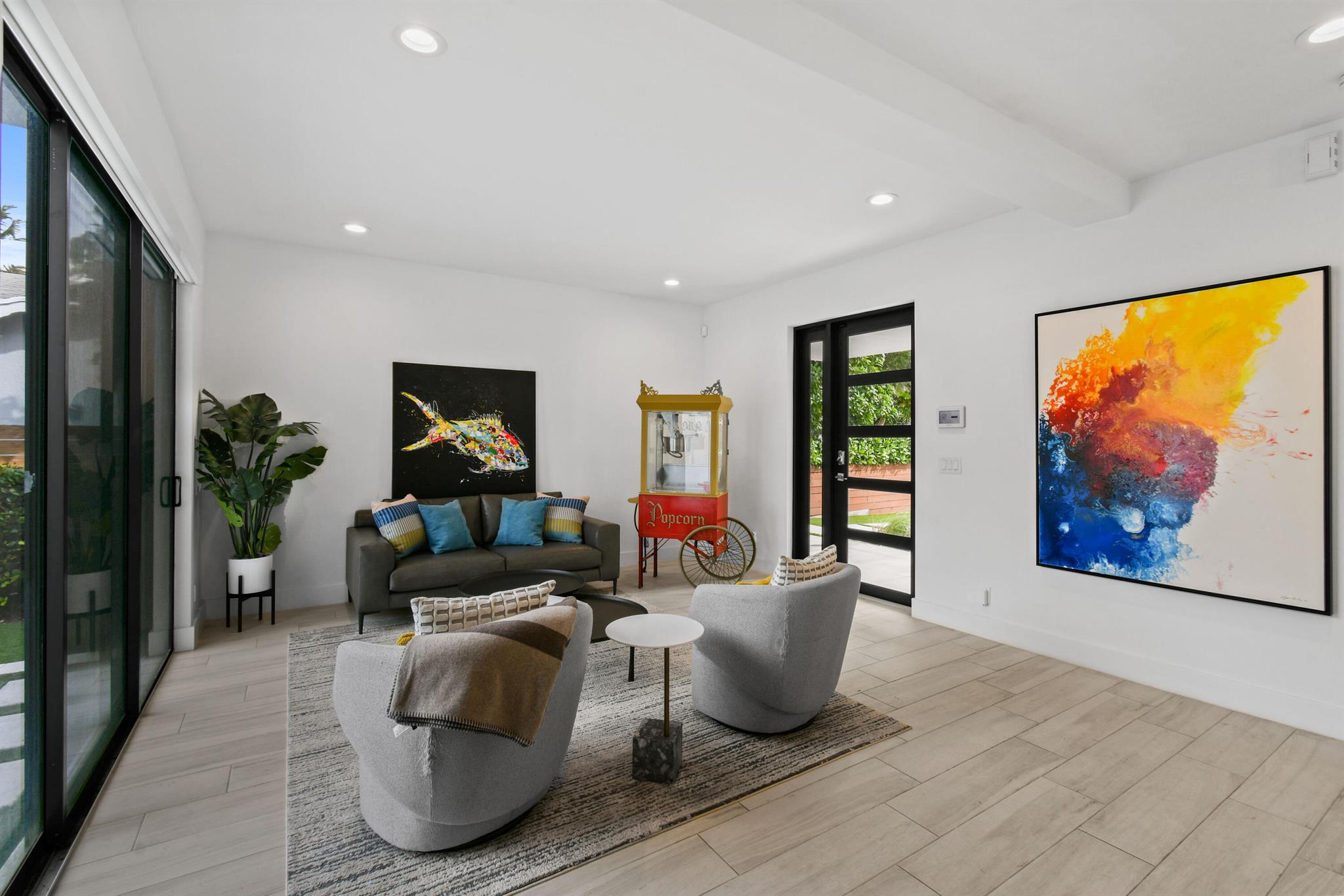 Stunning newer construction, contemporary CBS home with a private guest house sits just two streets from Flagler Drive in the historic Northwood neighborhood. Offering nearly 2,800 square feet of combined living space, this unique property includes both a main residence and a guest house. The main home spans approximately 2,100 square feet and features 3 bedrooms, 2.5 bathrooms, and elegant porcelain tile throughout. The kitchen showcases a spacious quartz island with a waterfall edge, a farmhouse sink, stainless steel appliances including a top-of-the-line dishwasher. Surrounded by privacy hedges with an electronic front gate, fully turfed yard, this home also features Lutron shades, impact-resistant glass, brand new A/C and security system in both houses including Ring & CCTV with