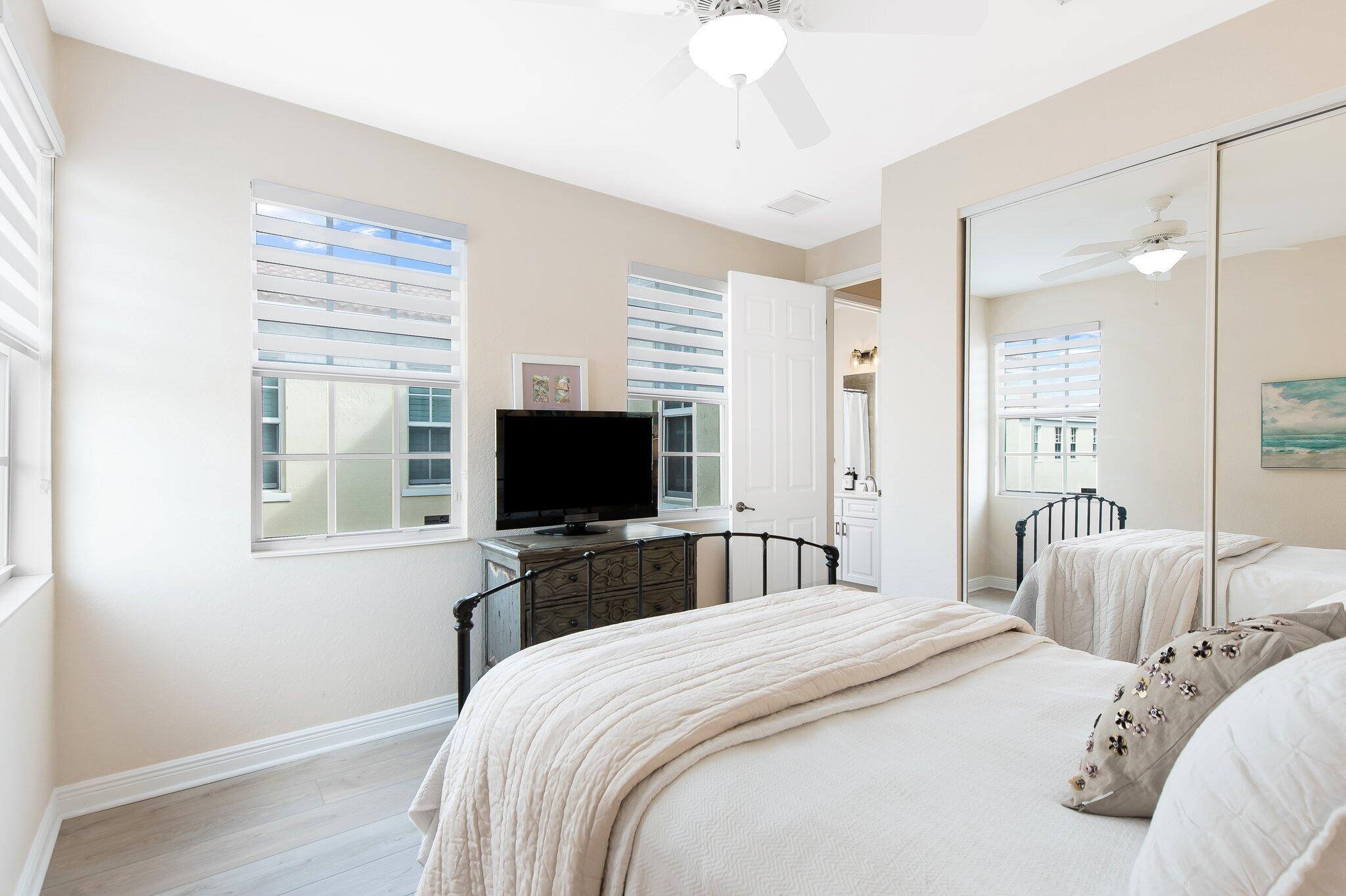 Don't miss this immaculate 2-bedroom, 2.5-bath townhouse with a 2-car garage in the desirable Central Park community. This popular floor plan features a large great room downstairs that flows into the dining room and kitchen, opening to an outdoor courtyard perfect for grilling. Upstairs, you'll find two bedrooms and two full bathrooms, including a master suite with an en-suite bathroom, a balcony for morning coffee, and an upstairs laundry. The home has new carpeting on the stairs and luxury vinyl floors upstairs, with neutral colors throughout, creating a serene atmosphere.The home also boasts newer appliances and fixtures, including a microwave, range, hot water heater, garage opener, and window treatments. The 2-car garage offers ample storage with extra overhead shelving.