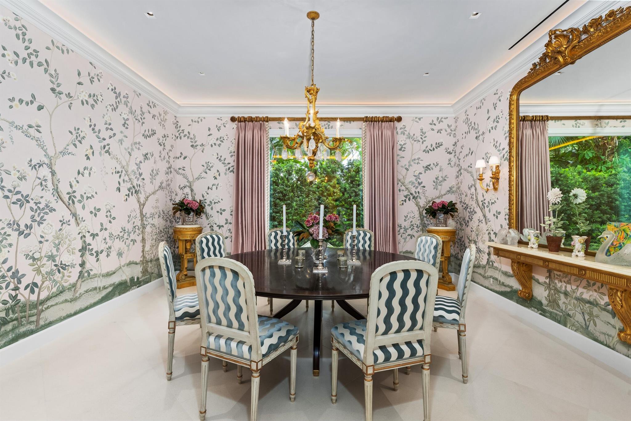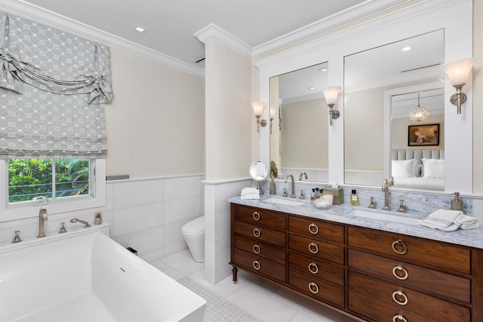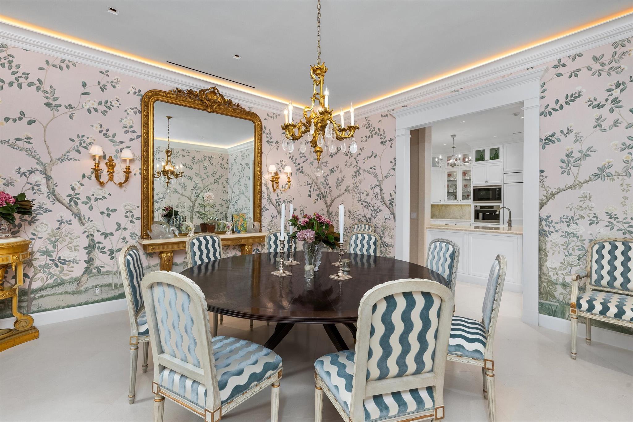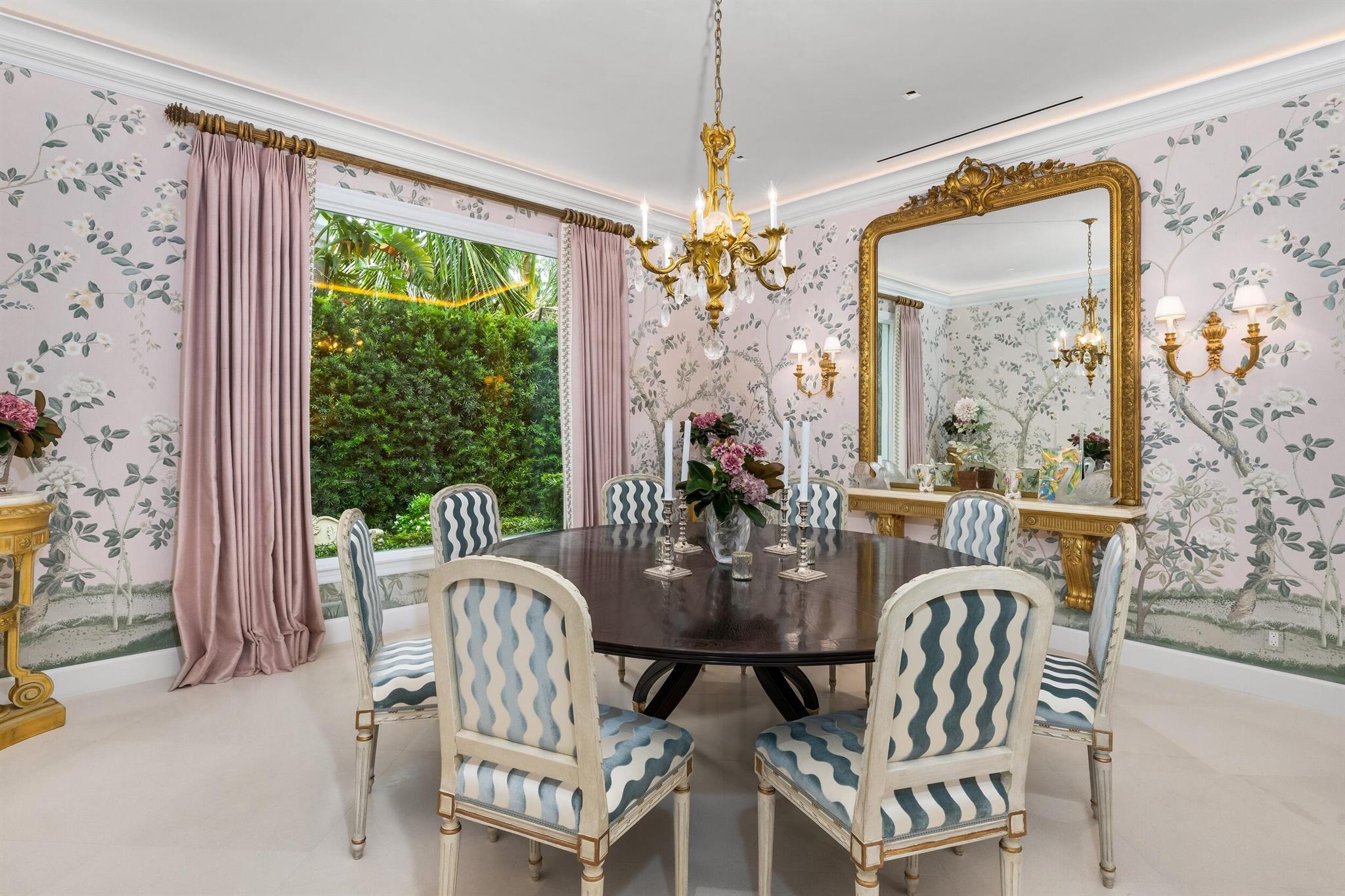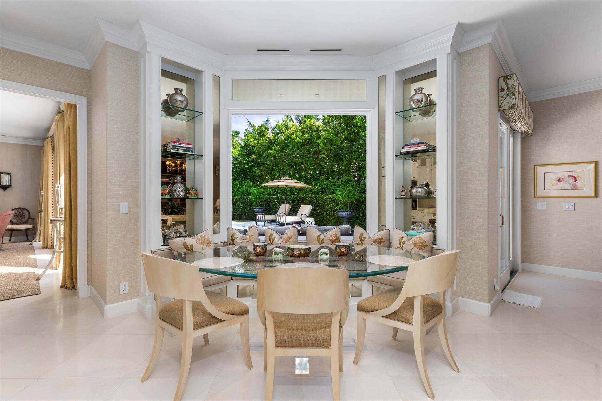 Gorgeous quintessential Palm Beach home with 5BR/5.1BA plus library. Fabulous Near North End location on a sunny South Side lot. First floor Primary Suite features dual walk-in closets and spacious bath. Glamorous entry foyer welcomes you to the light and bright living room perfect for entertaining. Elegant formal dining room and beautiful eat-in kitchen with chef's island. Breakfast area features banquette and panoramic window overlooking serene pool and backyard. Beautiful landscaping surrounds fantastic outdoor spaces including open patio, balconies, and pool with spa.