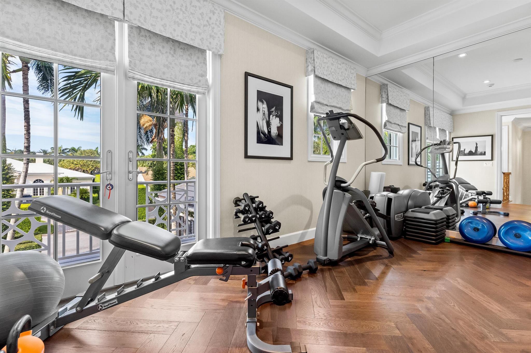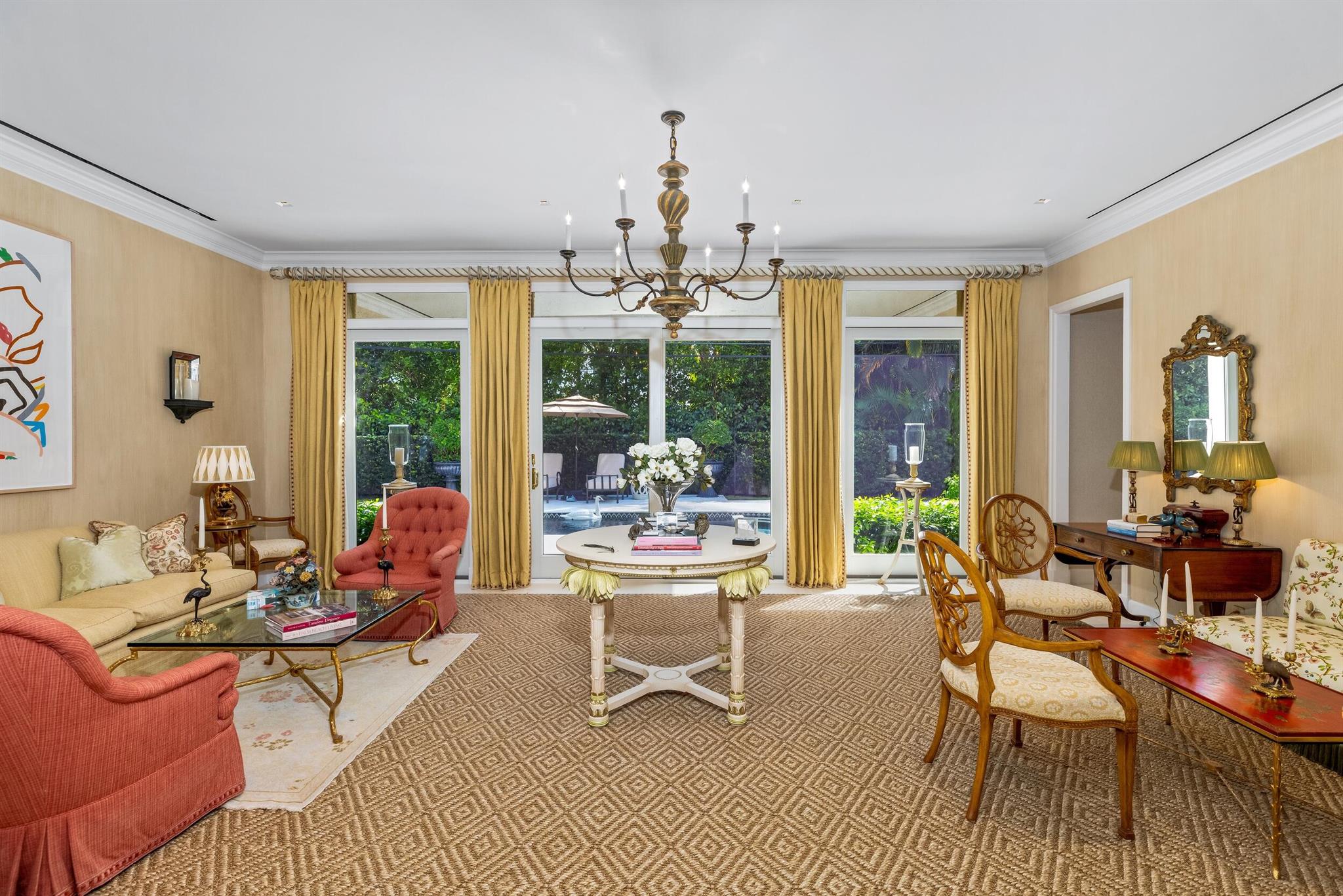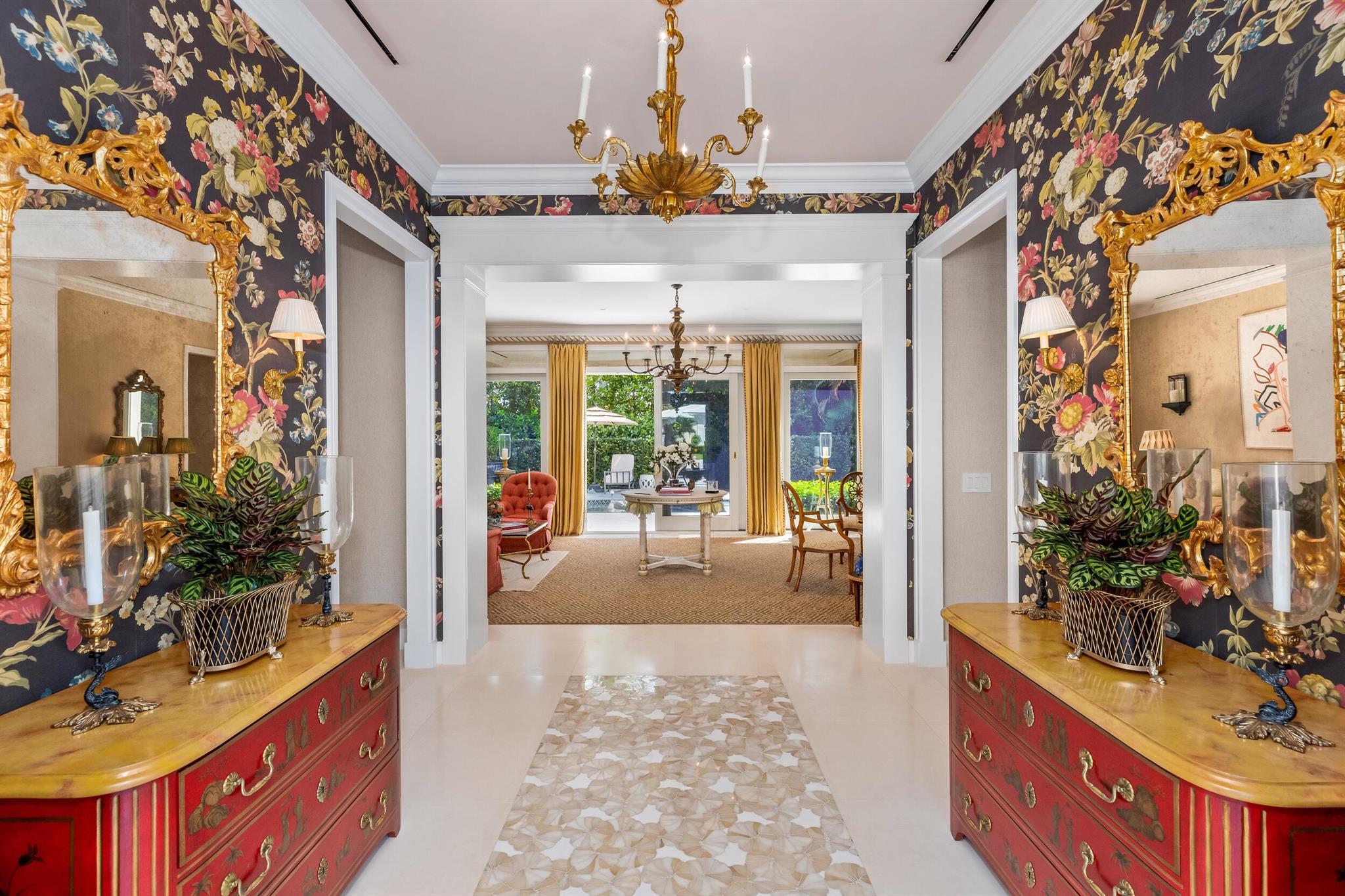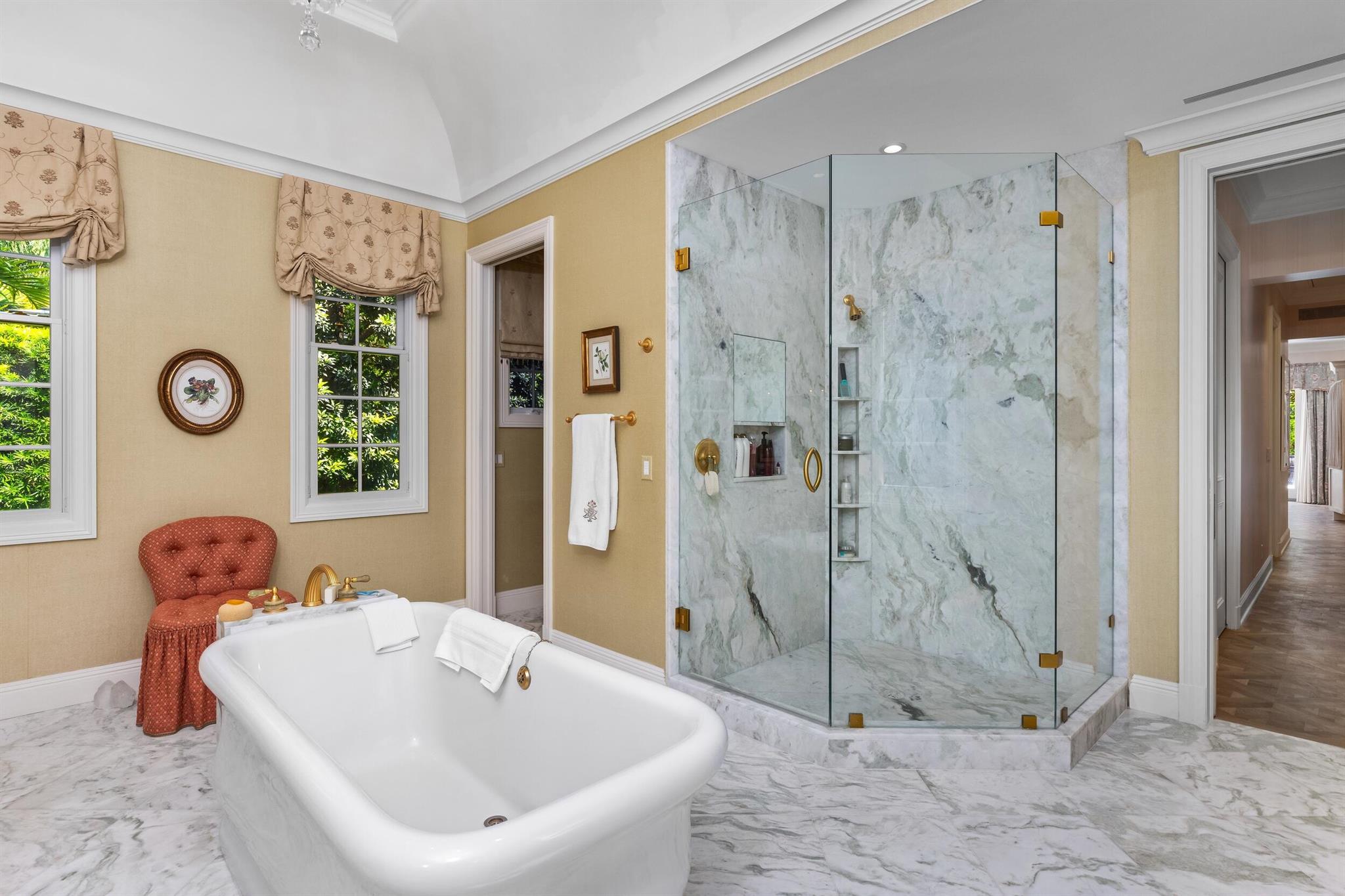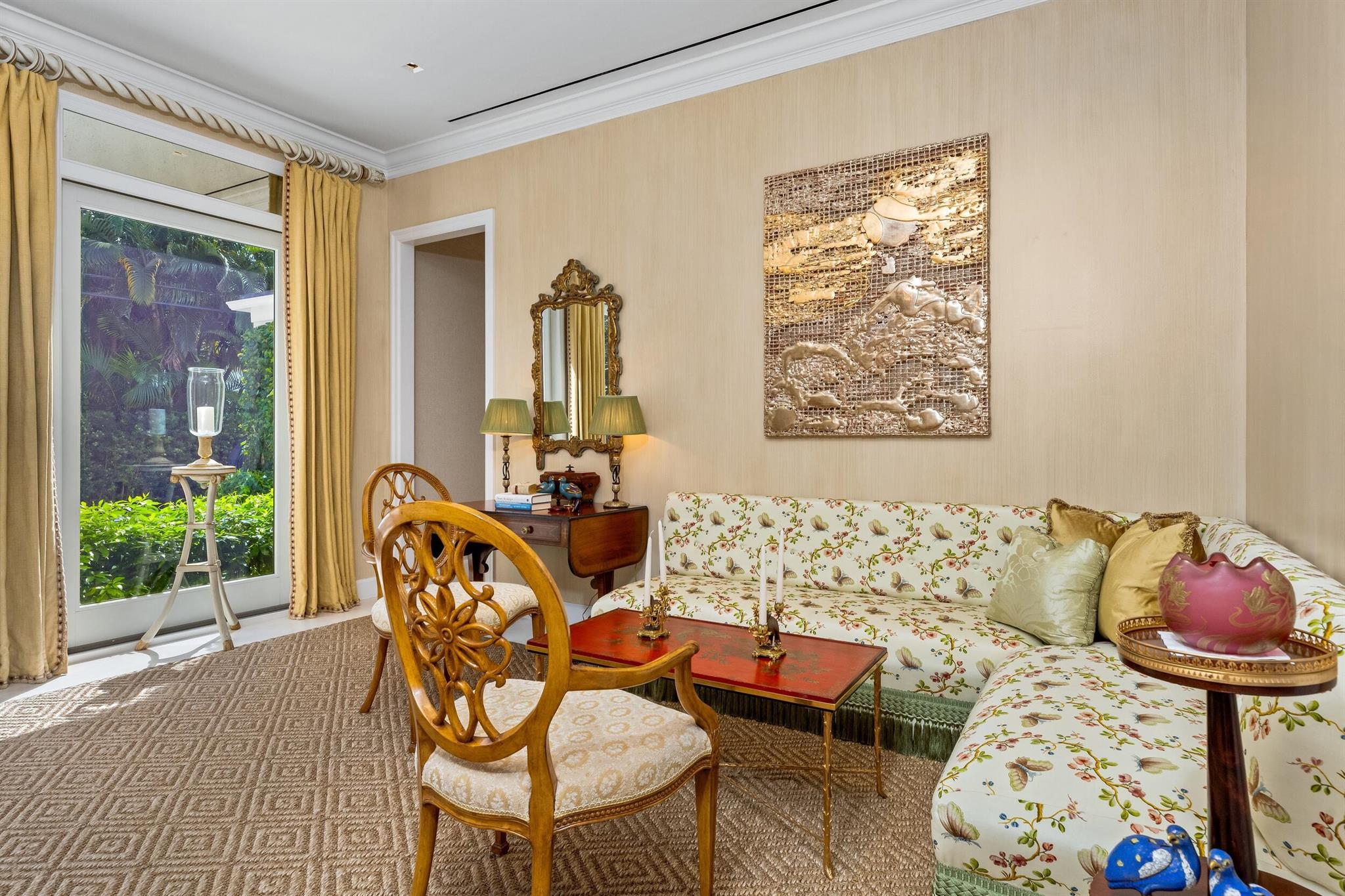 Gorgeous quintessential Palm Beach home with 5BR/5.1BA plus library. Fabulous Near North End location on a sunny South Side lot. First floor Primary Suite features dual walk-in closets and spacious bath. Glamorous entry foyer welcomes you to the light and bright living room perfect for entertaining. Elegant formal dining room and beautiful eat-in kitchen with chef's island. Breakfast area features banquette and panoramic window overlooking serene pool and backyard. Beautiful landscaping surrounds fantastic outdoor spaces including open patio, balconies, and pool with spa.
