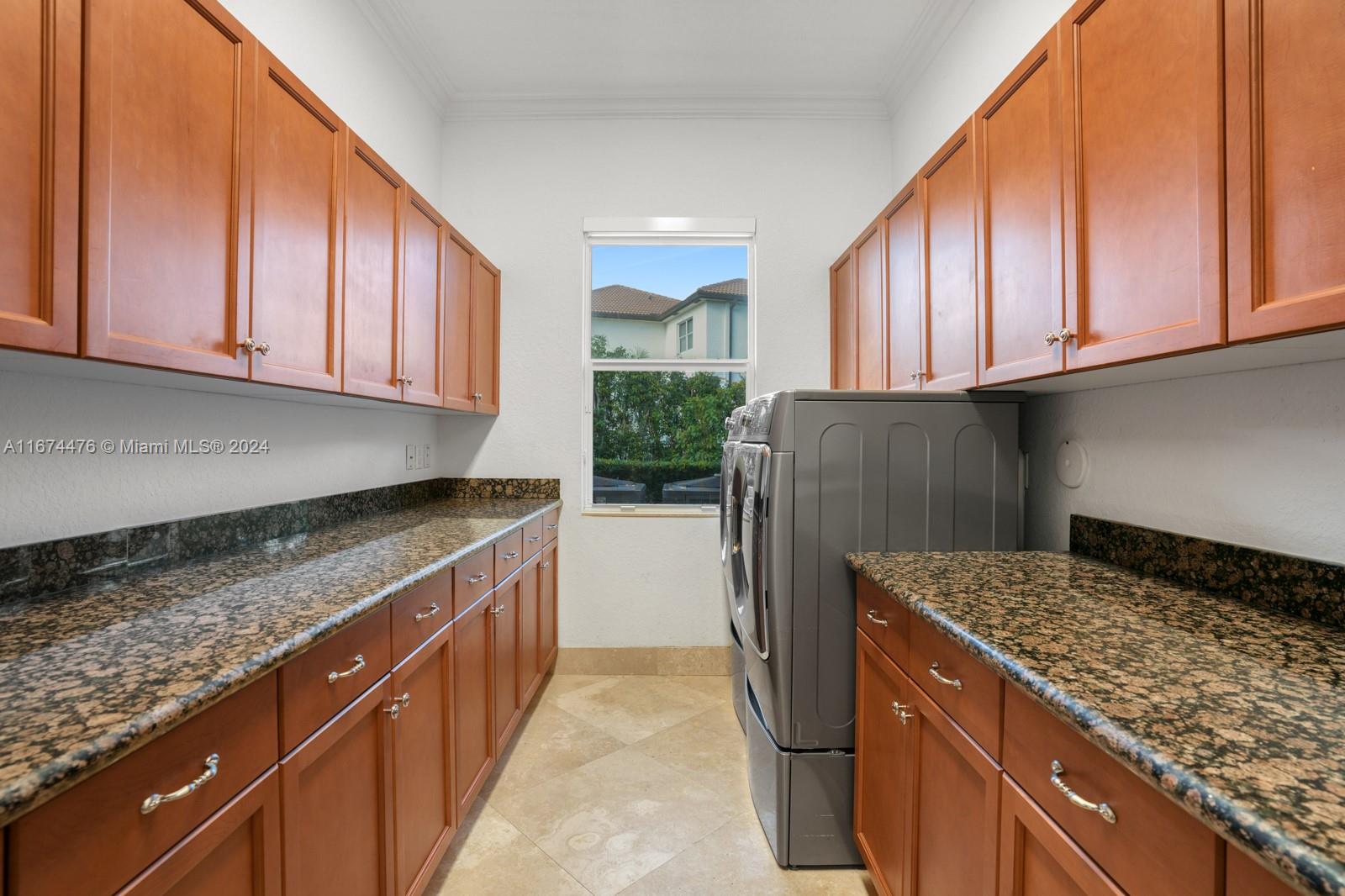 Stunning Custom Wellington model waterfront home in the prestigious, gated Stonebrook Estates community in Davie, Florida. This expansive residence offers 5 spacious bedrooms, 6 bathrooms, updated kitchen w/ butlers pantry & formal dining. The impressive double-height ceilings with panoramic lake views creates an open, inviting, elegant atmosphere. Featuring marble floors on the main level, custom wrought-iron railings, and rich wood floors upstairs, this well-maintained home also features a custom library/office plus a family media room with wet bar. The remodeled pool area with a hot tub & marble pavers offers a private, resort-like escape. The community offers tennis courts, pickleball, beach volleyball, clubhouse, playground, and 24-hour manned security. Truly pristine luxury living!