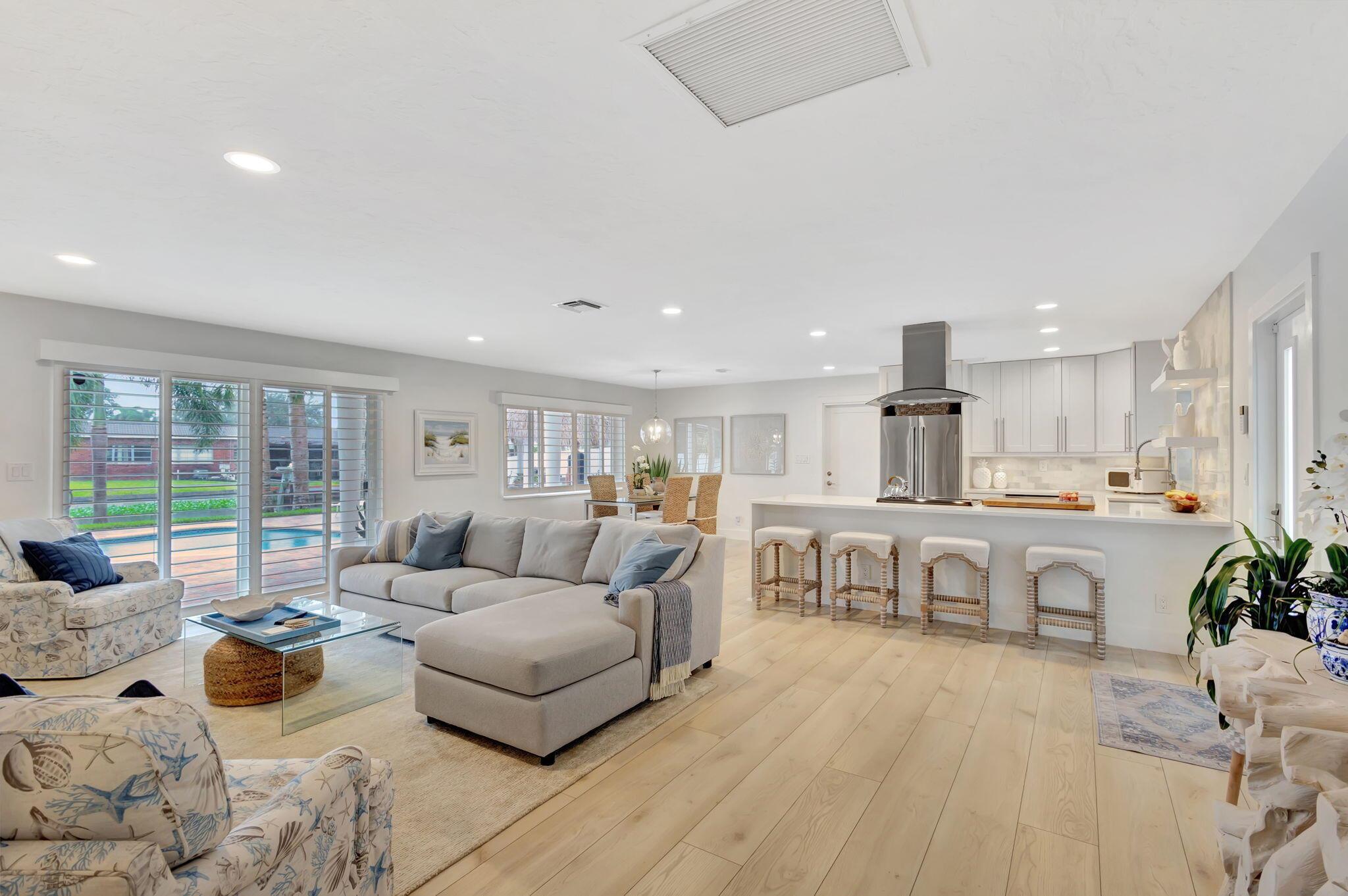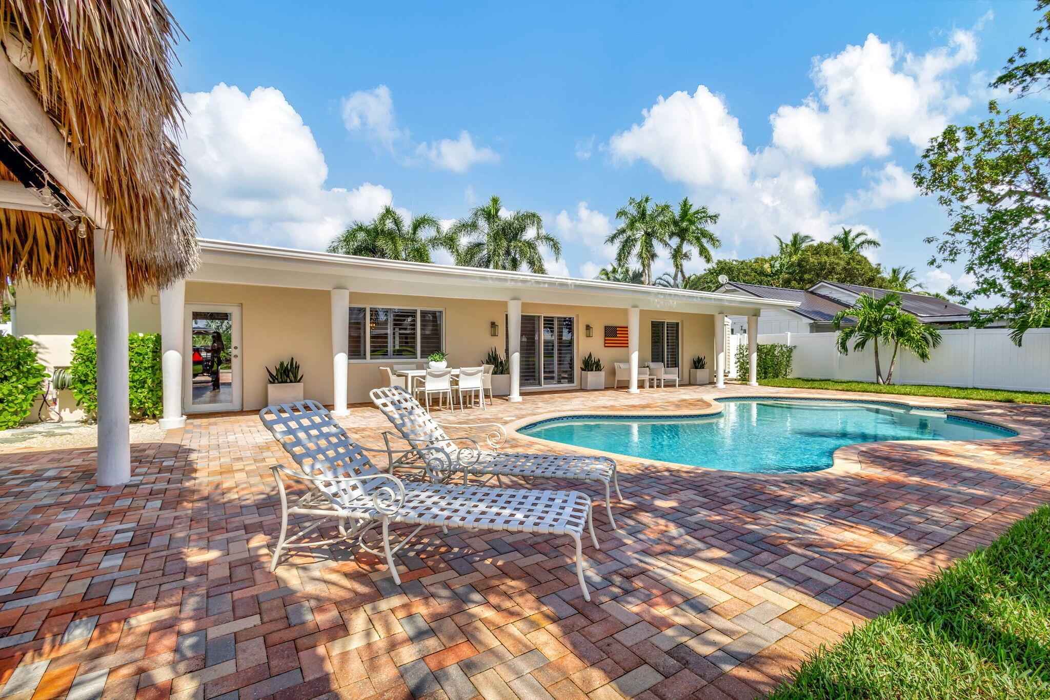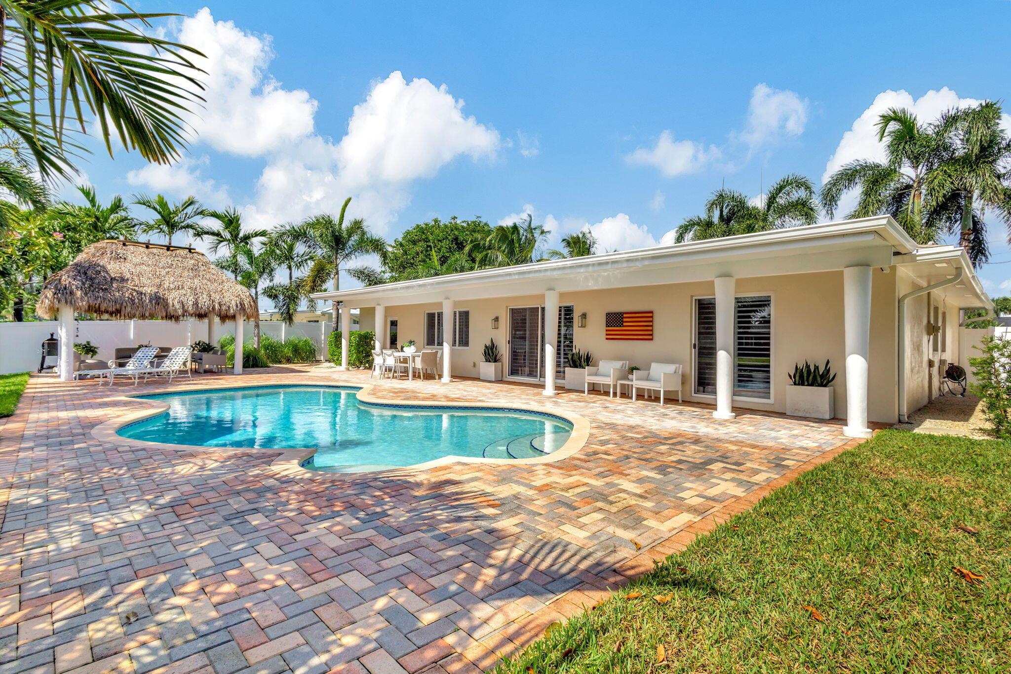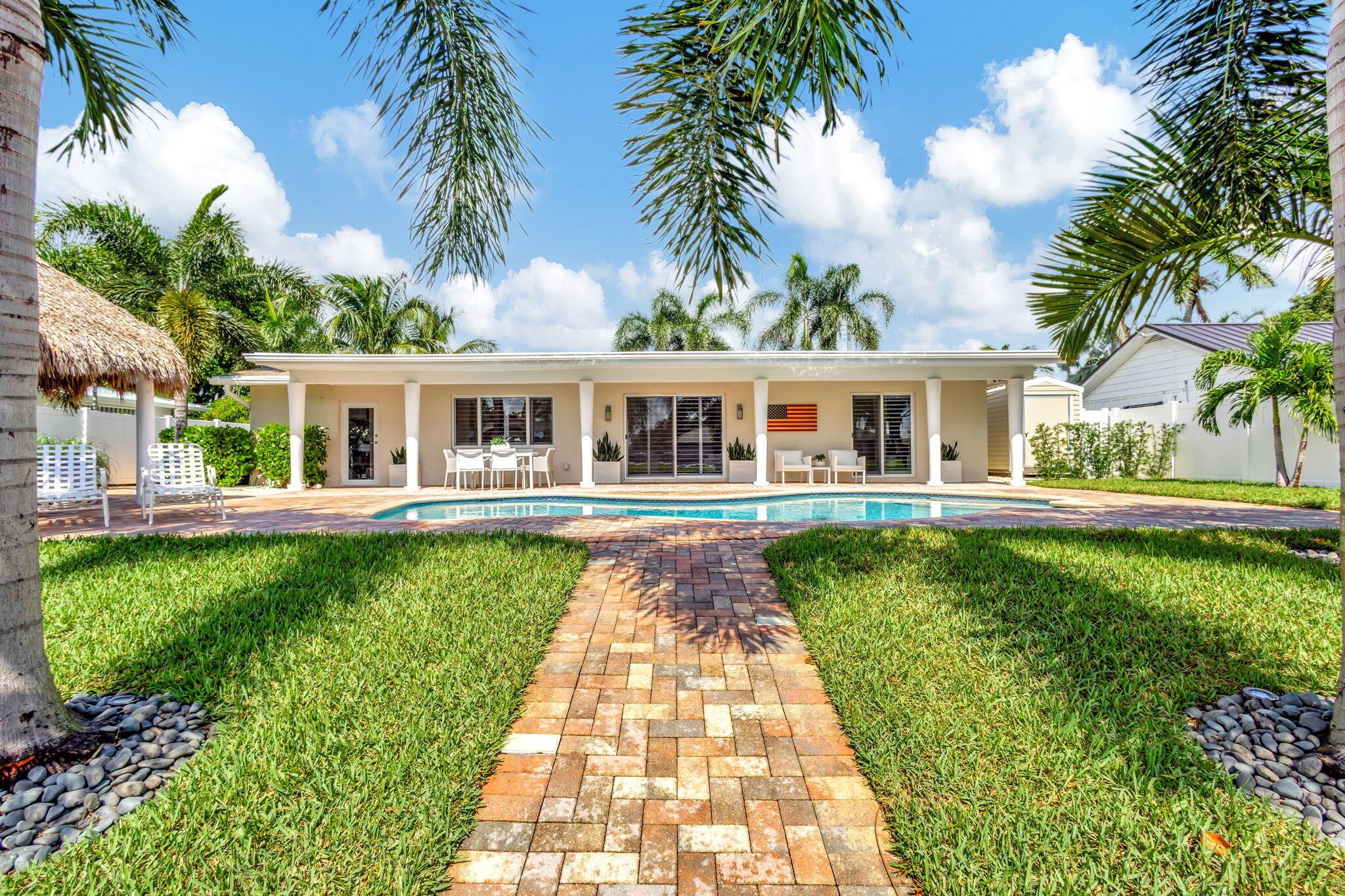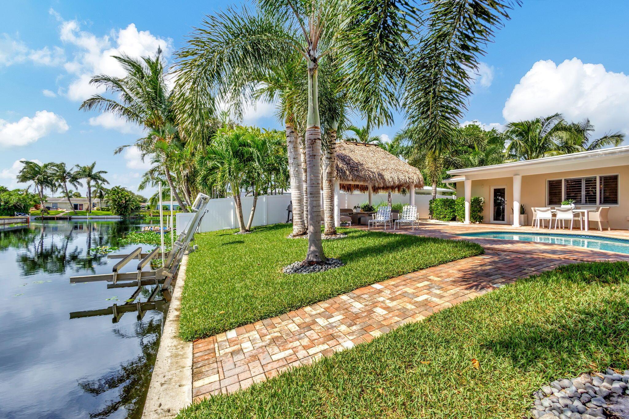 Welcome Home to this Stunning Waterfront Pool Home in Desirable Lake Clarke Shores! This completely updated 2 Bedroom, 2 bath, 1 car garage, brick paver driveway and patio. New oversized engineered wood flooring throughout, spacious living area, separate dining room, oversized baseboards throughout. Open kitchen, great for entertaining, white shaker cabinets, quartz countertops, floating shelves with under lighting, under cabinet lighting, Island with Waterfall Edge, Marble backsplash. Two master suites with white shaker cabinets, quartz countertops, mirror lighting. Spacious master suite, modern closets, glass shower, floating shelves. Breathtaking views of the pool/waterfront. Enjoy your morning coffee and entertaining in your own Tiki Hut with two tv's, updated electric, overlooking