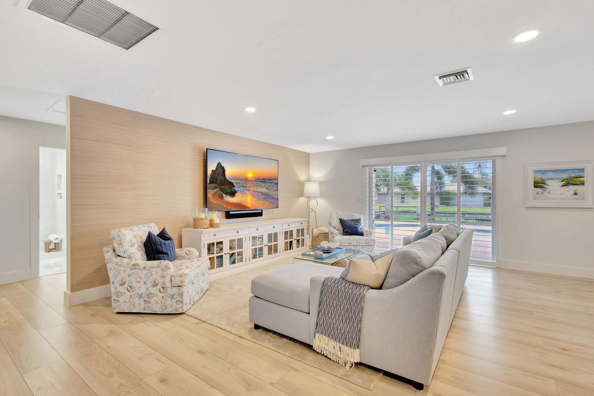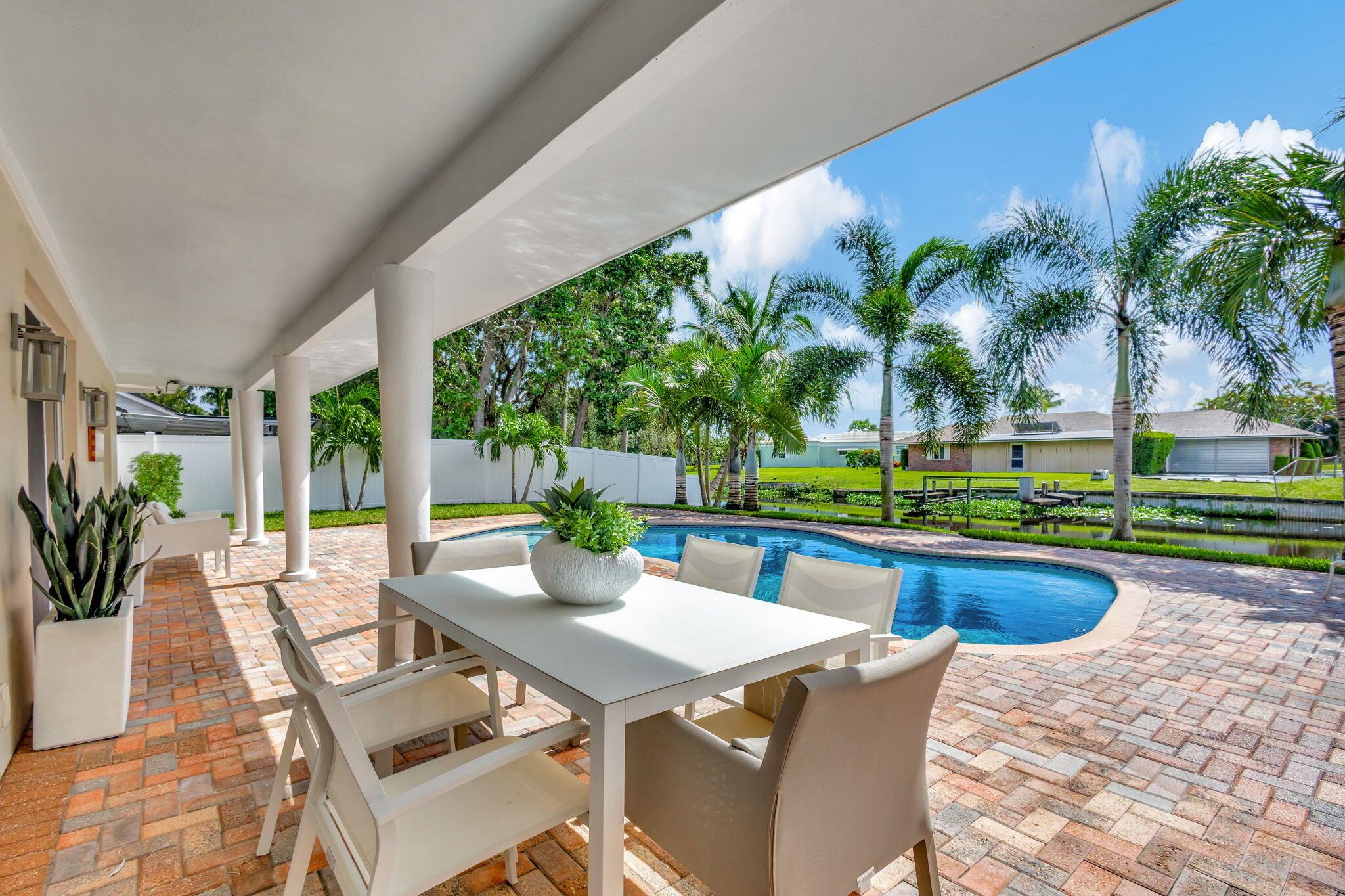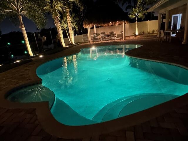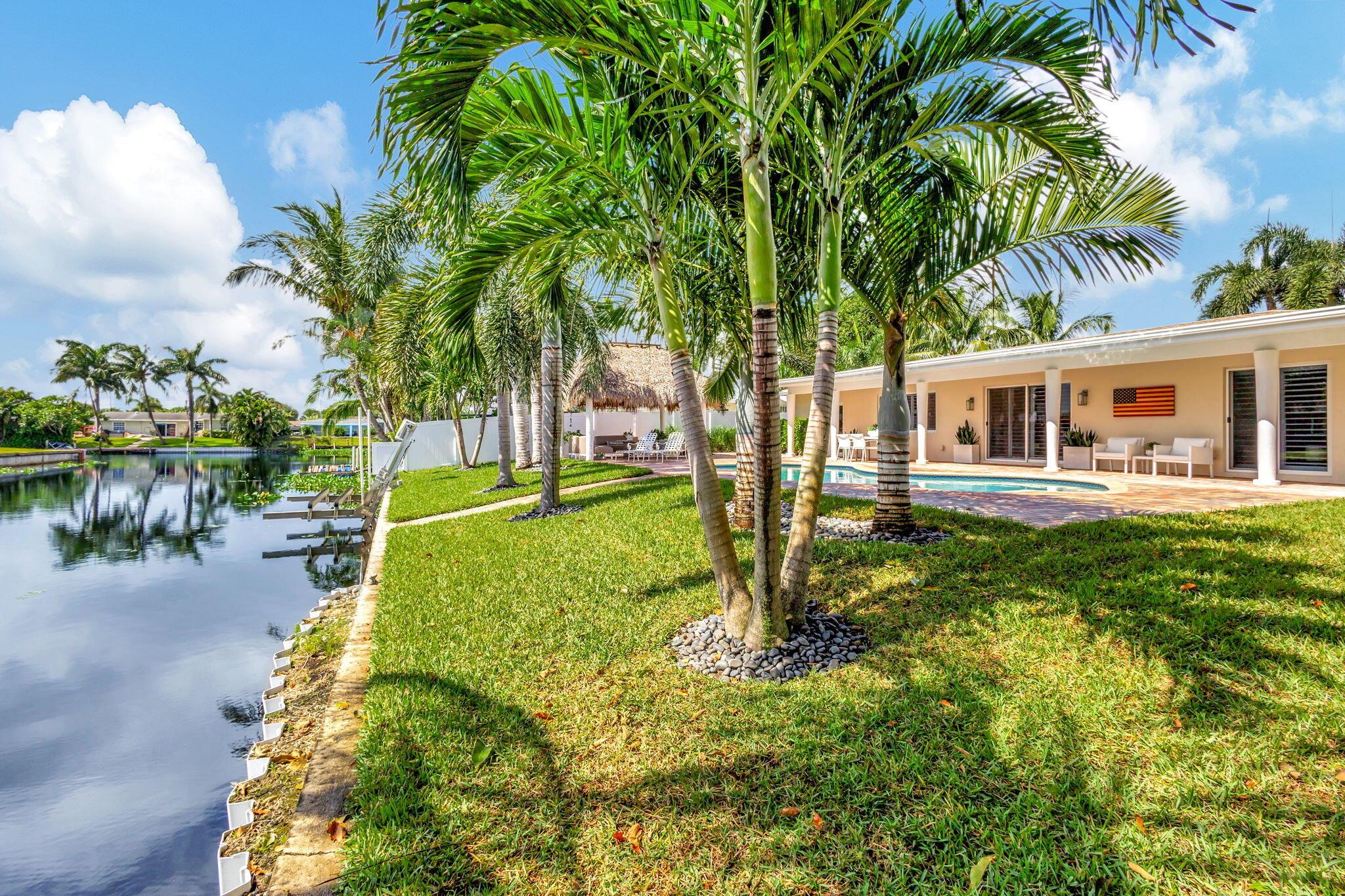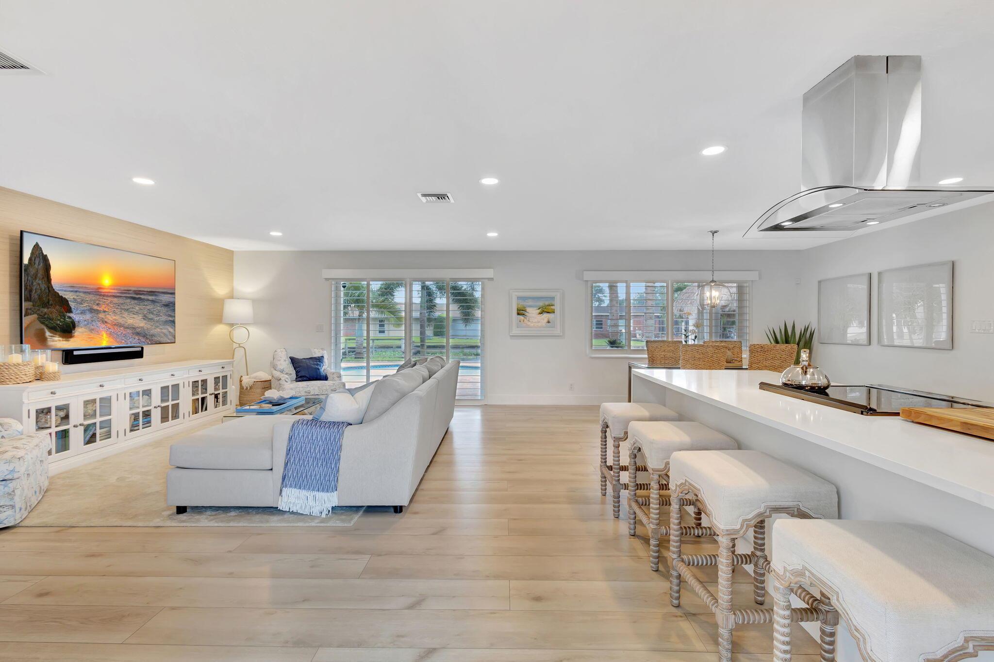 Welcome Home to this Stunning Waterfront Pool Home in Desirable Lake Clarke Shores! This completely updated 2 Bedroom, 2 bath, 1 car garage, brick paver driveway and patio. New oversized engineered wood flooring throughout, spacious living area, separate dining room, oversized baseboards throughout. Open kitchen, great for entertaining, white shaker cabinets, quartz countertops, floating shelves with under lighting, under cabinet lighting, Island with Waterfall Edge, Marble backsplash. Two master suites with white shaker cabinets, quartz countertops, mirror lighting. Spacious master suite, modern closets, glass shower, floating shelves. Breathtaking views of the pool/waterfront. Enjoy your morning coffee and entertaining in your own Tiki Hut with two tv's, updated electric, overlooking