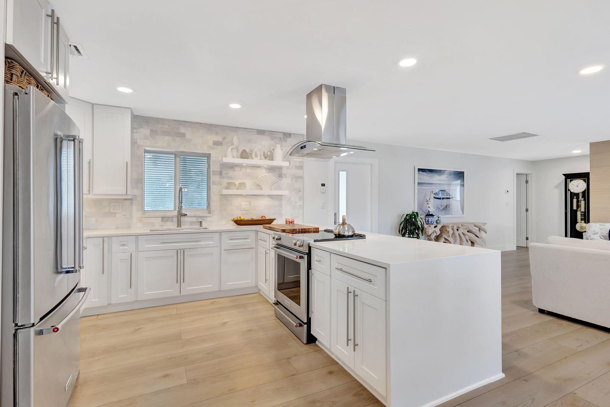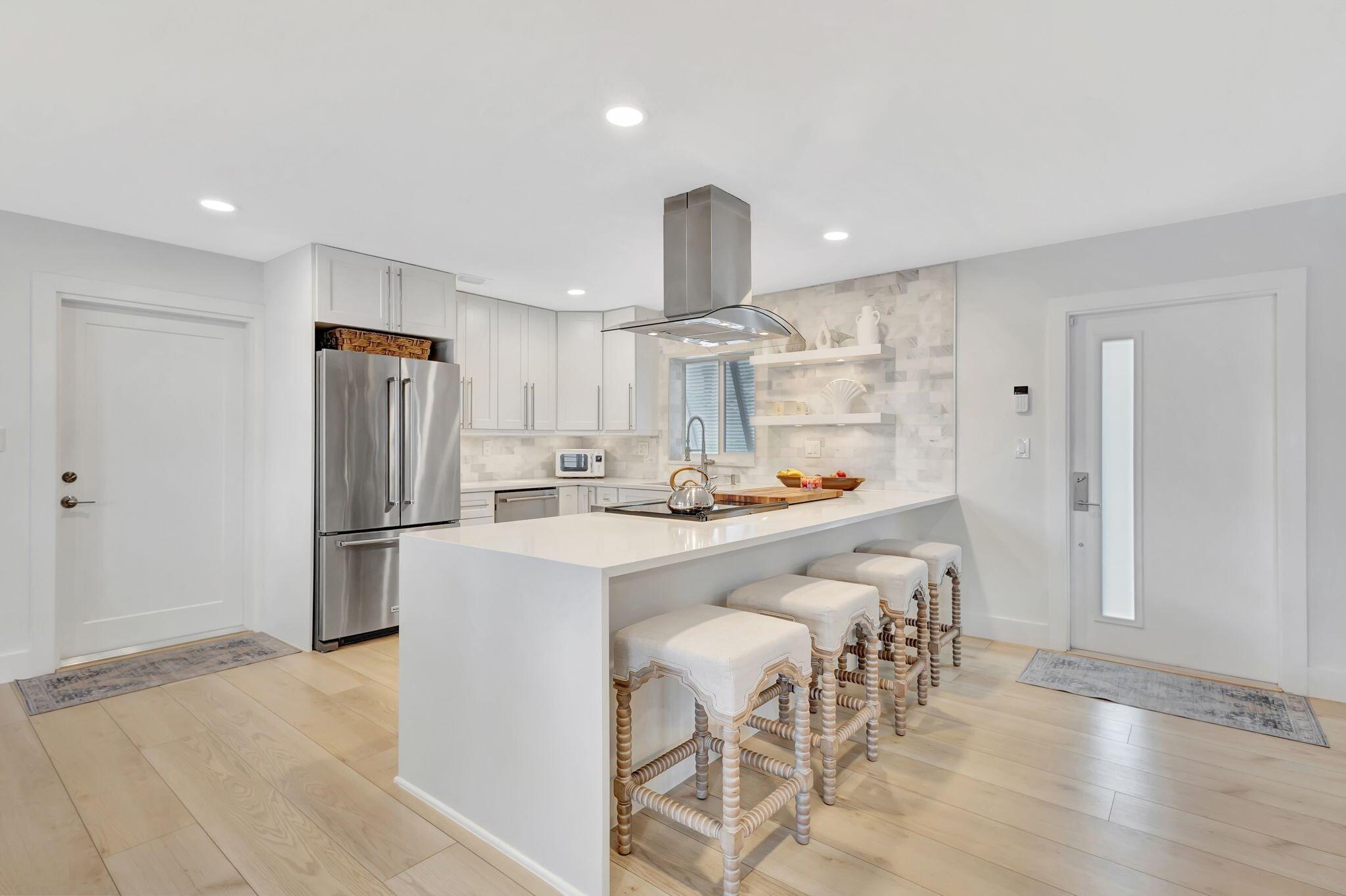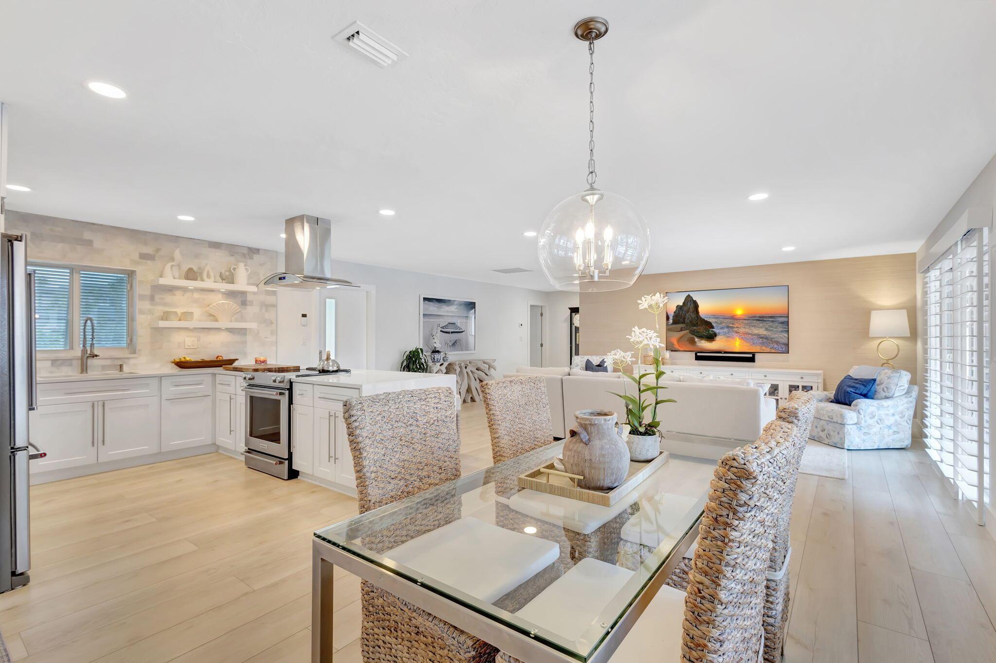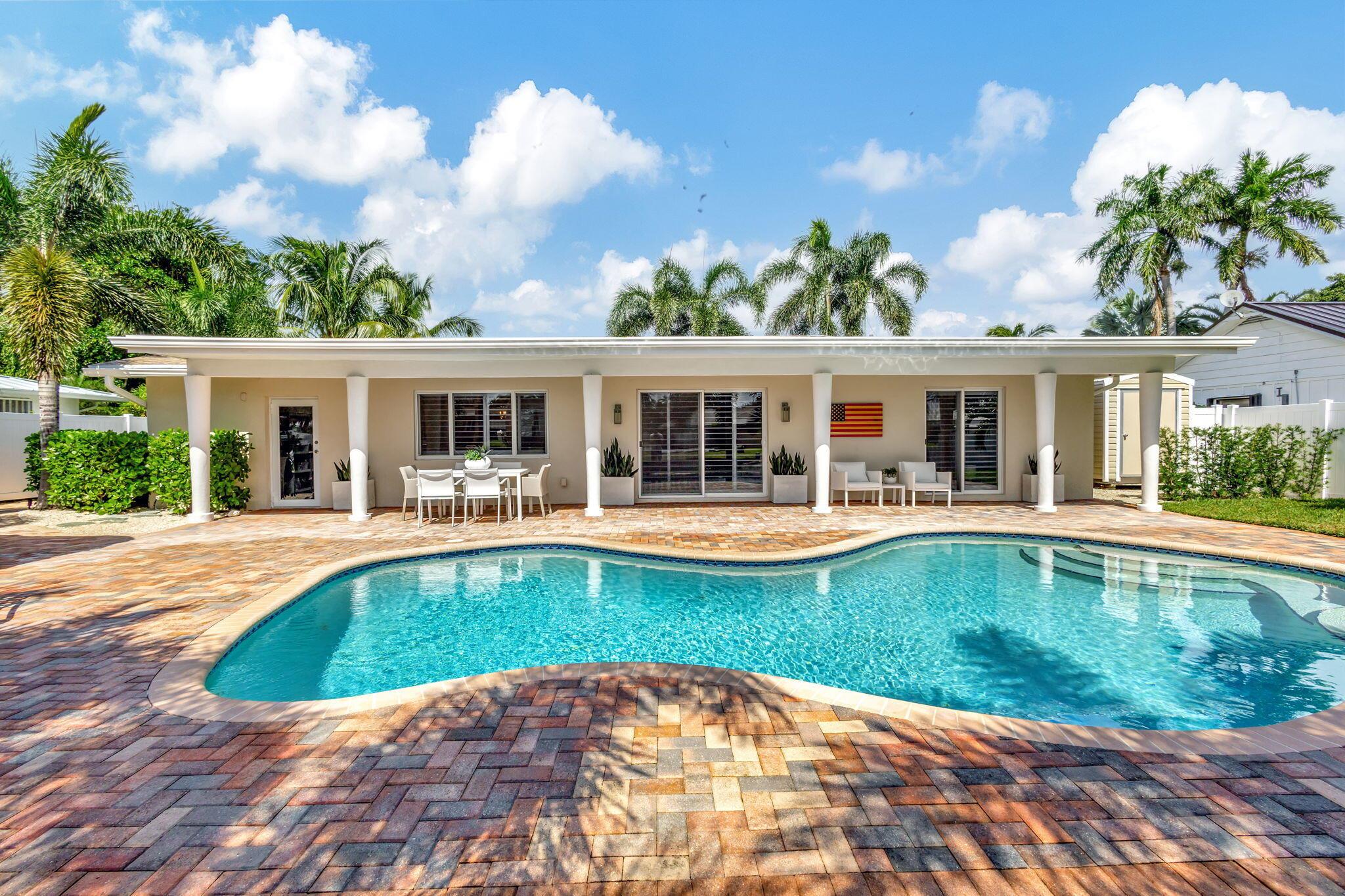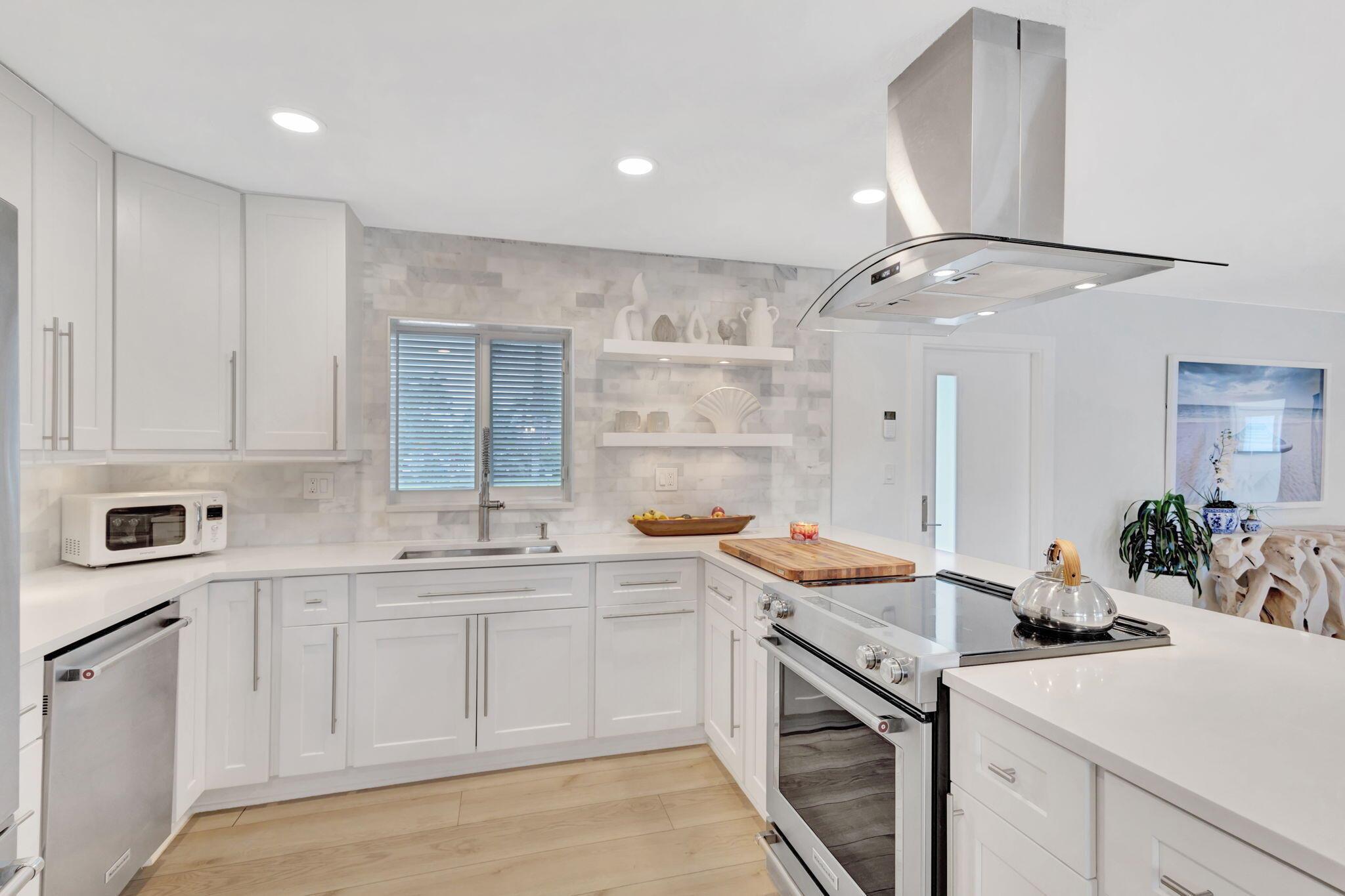Welcome Home to this Stunning Waterfront Pool Home in Desirable Lake Clarke Shores! This completely updated 2 Bedroom, 2 bath, 1 car garage, brick paver driveway and patio. New oversized engineered wood flooring throughout, spacious living area, separate dining room, oversized baseboards throughout. Open kitchen, great for entertaining, white shaker cabinets, quartz countertops, floating shelves with under lighting, under cabinet lighting, Island with Waterfall Edge, Marble backsplash. Two master suites with white shaker cabinets, quartz countertops, mirror lighting. Spacious master suite, modern closets, glass shower, floating shelves. Breathtaking views of the pool/waterfront. Enjoy your morning coffee and entertaining in your own Tiki Hut with two tv's, updated electric, overlooking