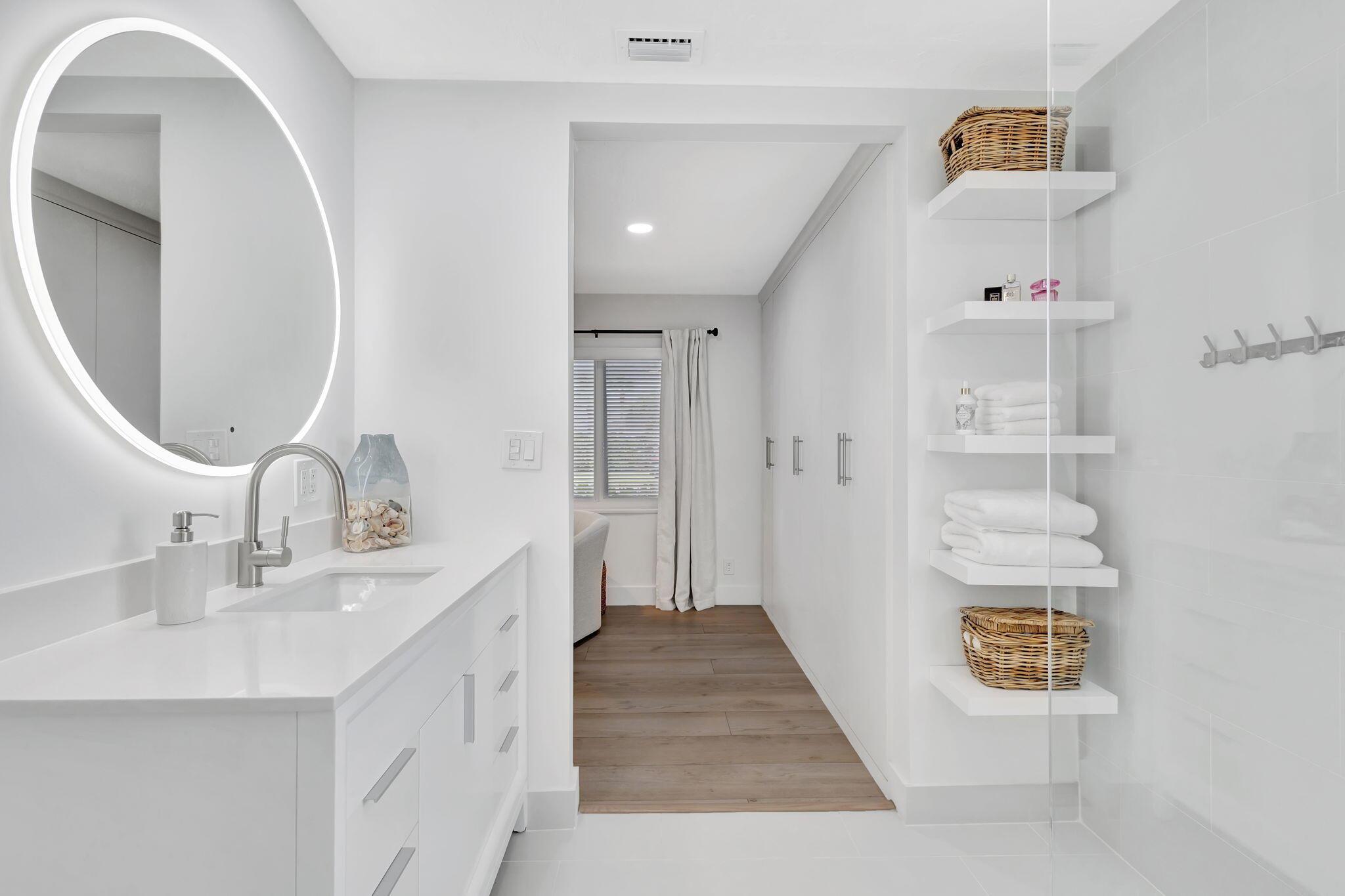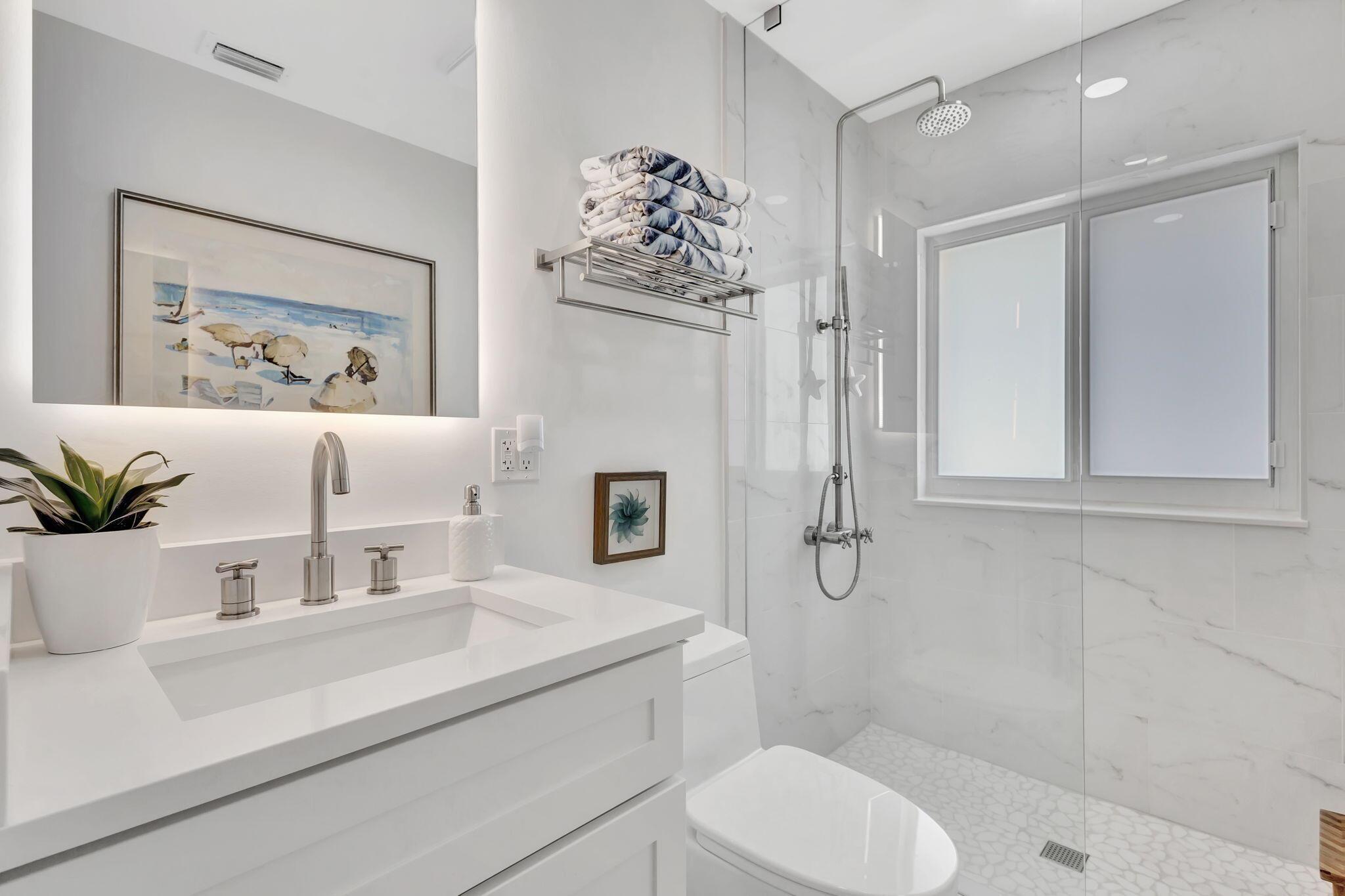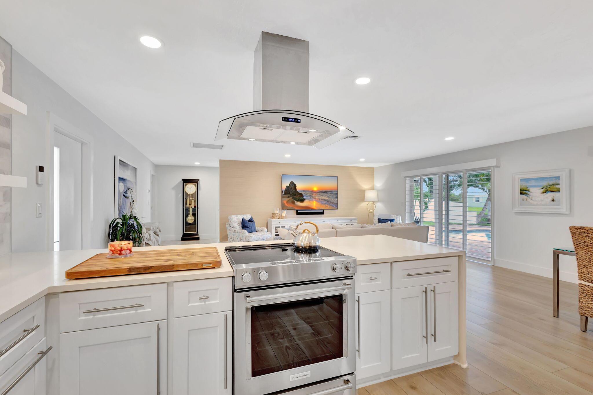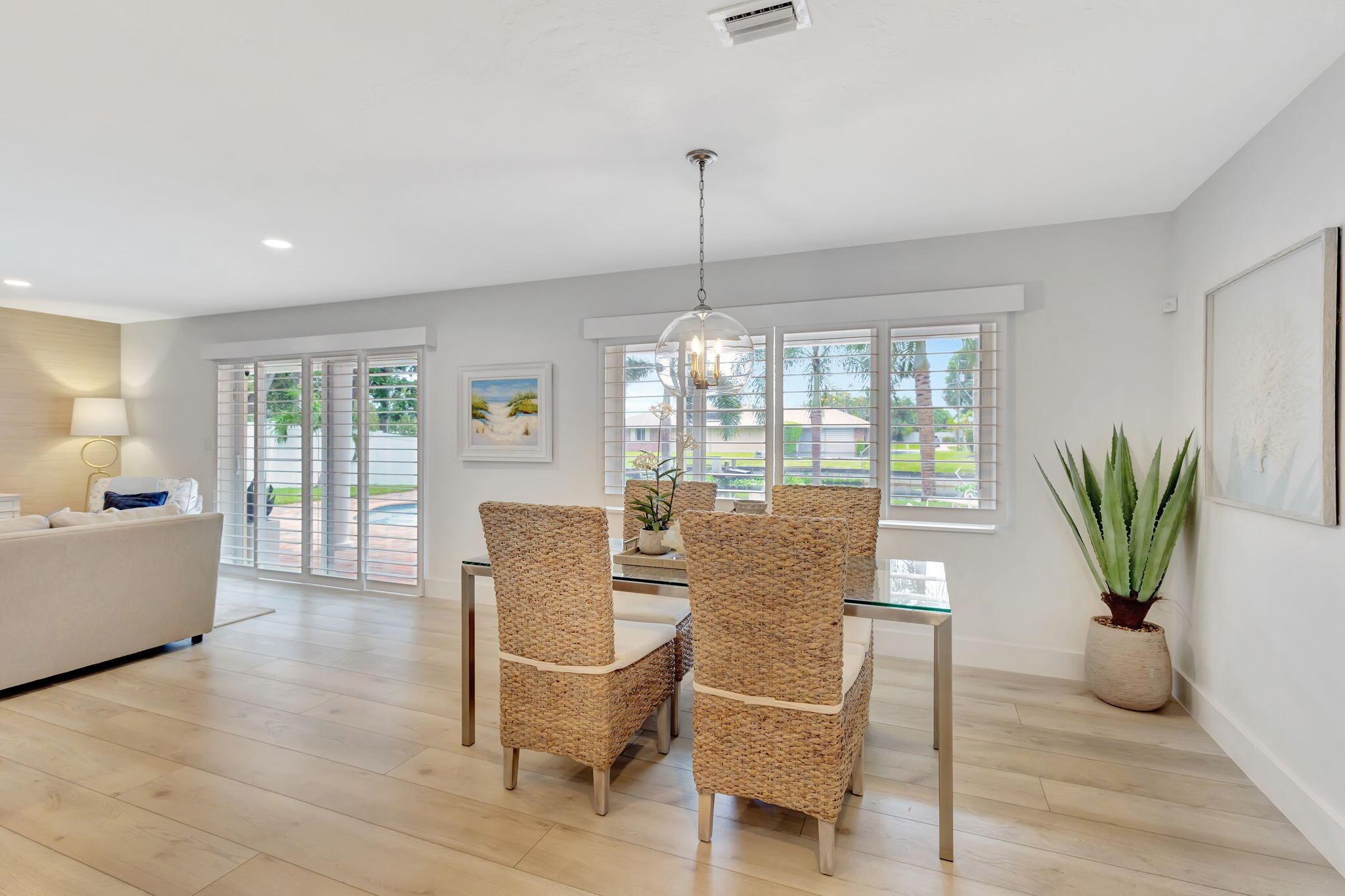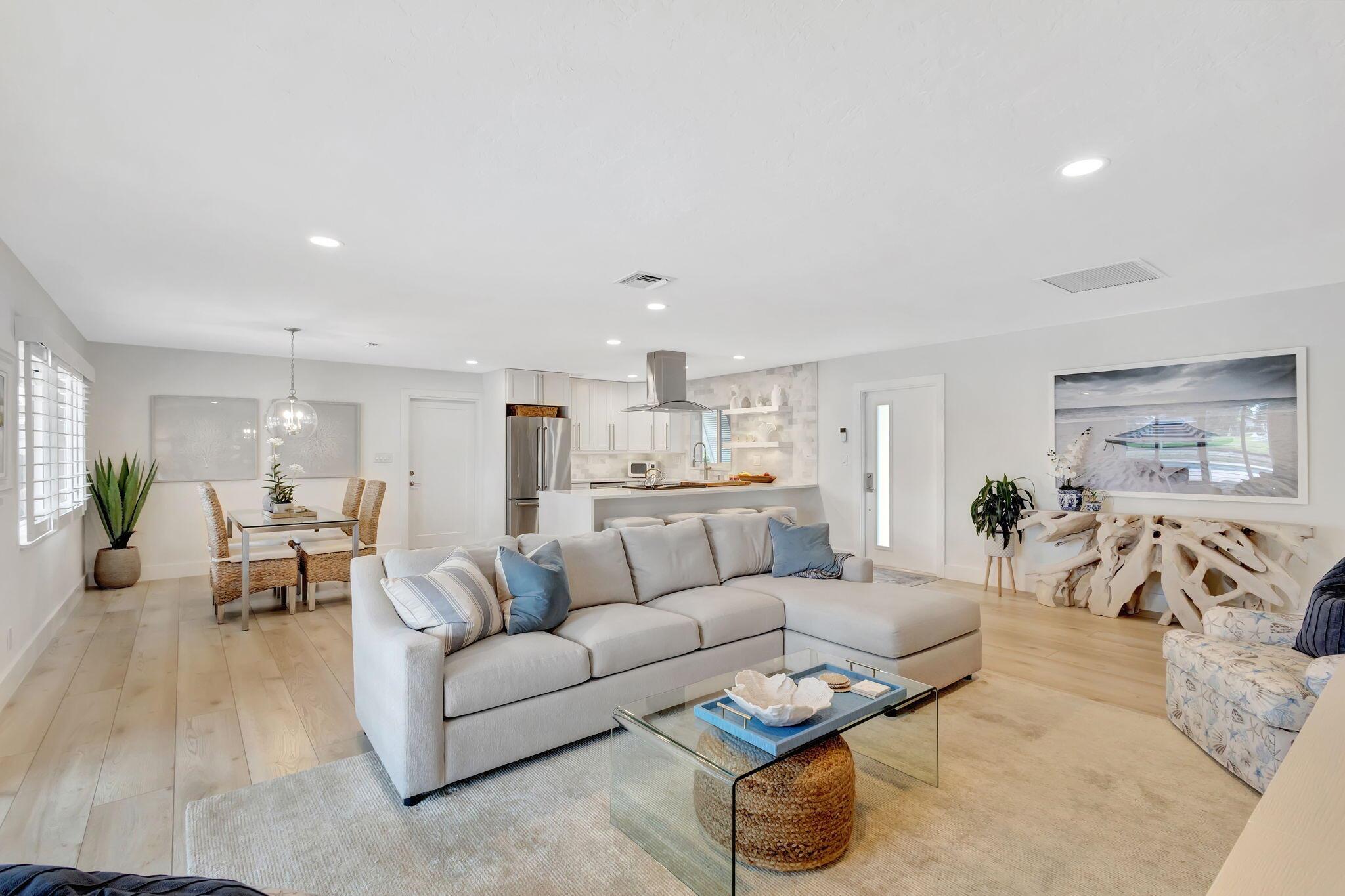Welcome Home to this Stunning Waterfront Pool Home in Desirable Lake Clarke Shores! This completely updated 2 Bedroom, 2 bath, 1 car garage, brick paver driveway and patio. New oversized engineered wood flooring throughout, spacious living area, separate dining room, oversized baseboards throughout. Open kitchen, great for entertaining, white shaker cabinets, quartz countertops, floating shelves with under lighting, under cabinet lighting, Island with Waterfall Edge, Marble backsplash. Two master suites with white shaker cabinets, quartz countertops, mirror lighting. Spacious master suite, modern closets, glass shower, floating shelves. Breathtaking views of the pool/waterfront. Enjoy your morning coffee and entertaining in your own Tiki Hut with two tv's, updated electric, overlooking