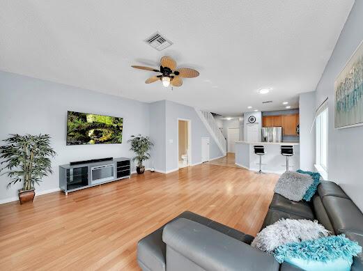 Beautiful corner unit in the gated Jonathan's Cove development centrally located in West Palm Beach. This lovely unit boasts 3 bedrooms, 2.5 bath 1 car garage with freshly painted walls, newer appliances, tile floors in the foyer, kitchen and bathrooms and vinyl plank flooring in the living room, stairs, second floor hallway & bedrooms. Open floor plan with a nice screened in back porch. The amenities of Jonathan's Cove include a community pool, spacious clubhouse for entertaining, a fitness area, playground for the kids, volleyball & jogging trails. HOA monthly dues includes Xfinity cable, WIFI, lawn care, pest control, pool service, common area, reserve funds, maintenance exterior, exterior building insurance & roof repairs. Within walking to Fitteam Home Ballpark, shops, highways, etc.
