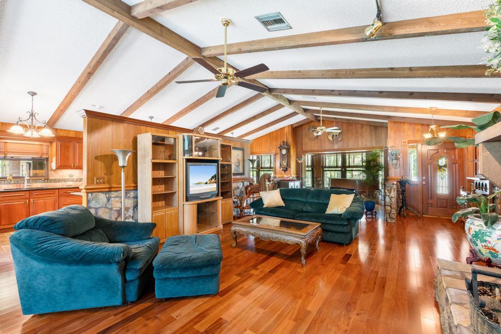 Welcome to your dream equestrian estate, set in a picturesque 10 ACRE PROPERTY in a coveted equestrian community of Homeland. With a manned gated entrance, scenic riding trails, and paved roads, this community offers security, tranquility, and convenience. Embrace the equestrian lifestyle in this beautifully maintained oasis, surrounded by canals on three sides, providing an ideal balance of privacy and accessibility.The **main home** offers 2,750 sq. ft. under air, featuring 4 spacious bedrooms, 3 full baths, and a bright, inviting layout. Enter into a cozy living room with a fireplace, formal dining area, family room, and an ultra-functional mudroom. The charming kitchen is well-equipped, complete with updated countertops, and includes classic touches like a trash compactor and