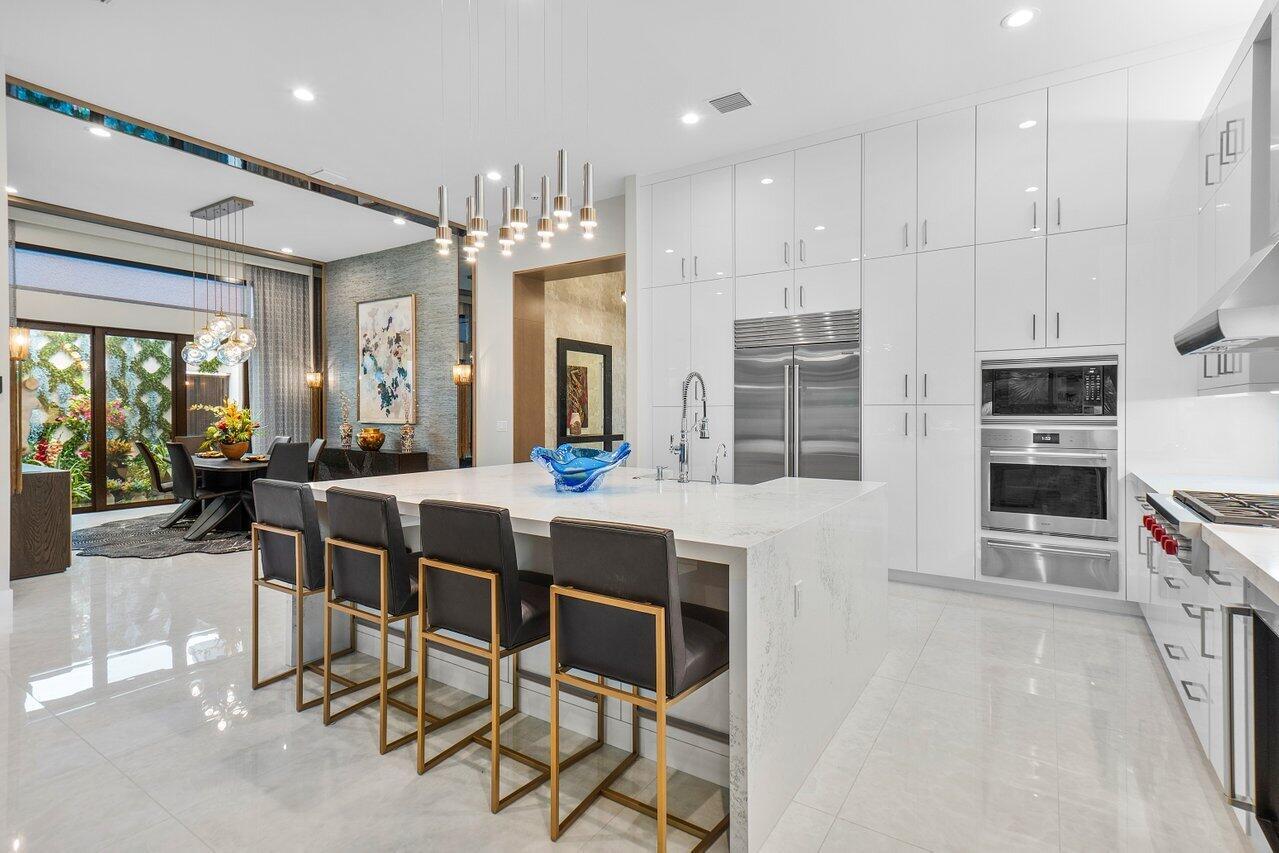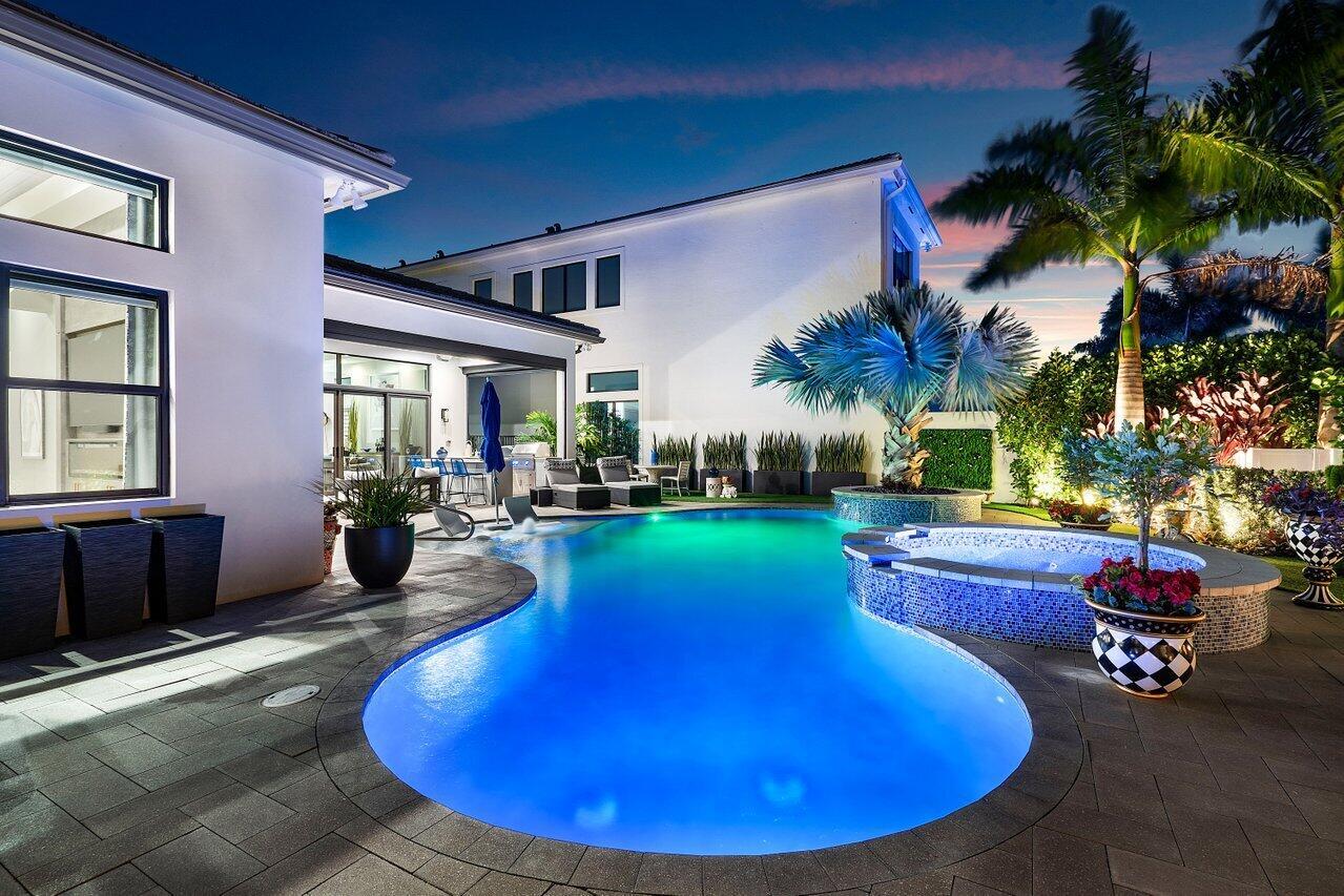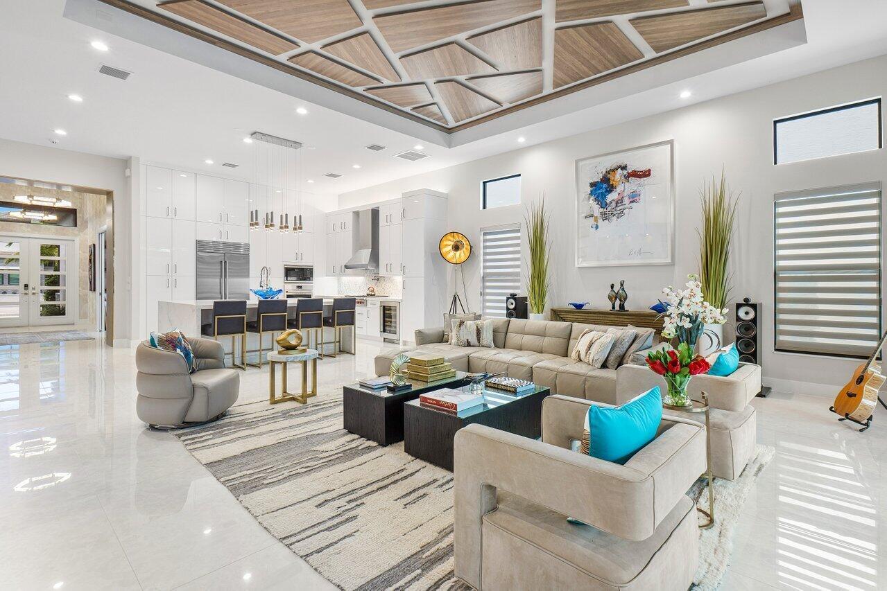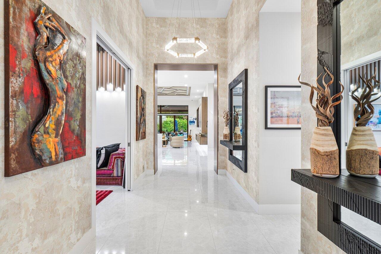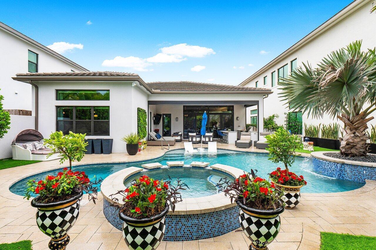 Introducing this exquisite contemporary Sevilla model, nestled within the prestigious Boca Bridges, where luxury living meets chic elegance. This trophy property offers a sleek, expansive design with nearly 3,300 square feet of meticulously crafted living space, showcasing an impressive level of detail throughout. The home features extensive millwork and designer wall coverings, adding a touch of warmth and sophistication to every room. The thoughtful layout and high-end finishes create an atmosphere of refined luxury and comfort, making this home a true standout. Featuring three spacious en-suite bedrooms, a stylish powder room, and a beautifully designed den/office, complete with custom built-ins, offering an elegant and functional space for work or relaxation. The open floor plan