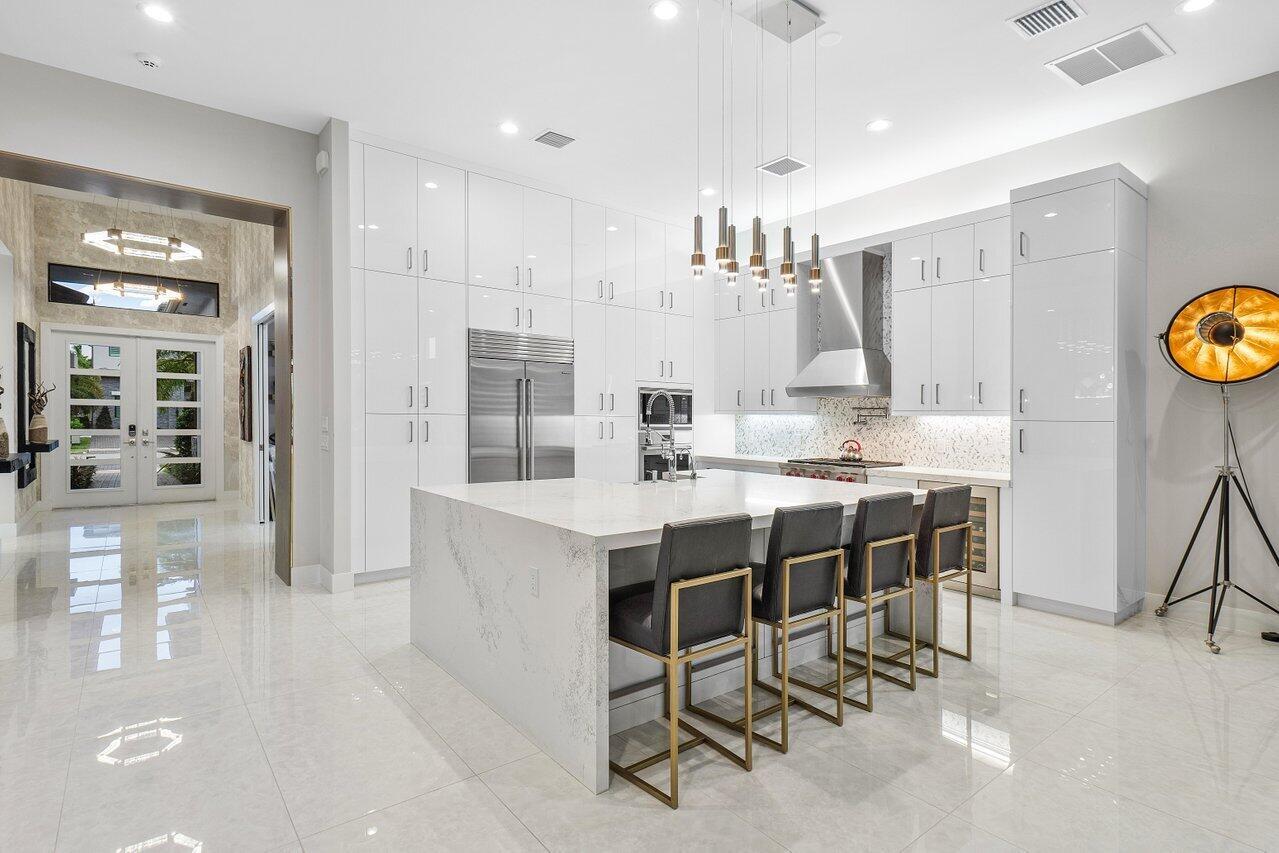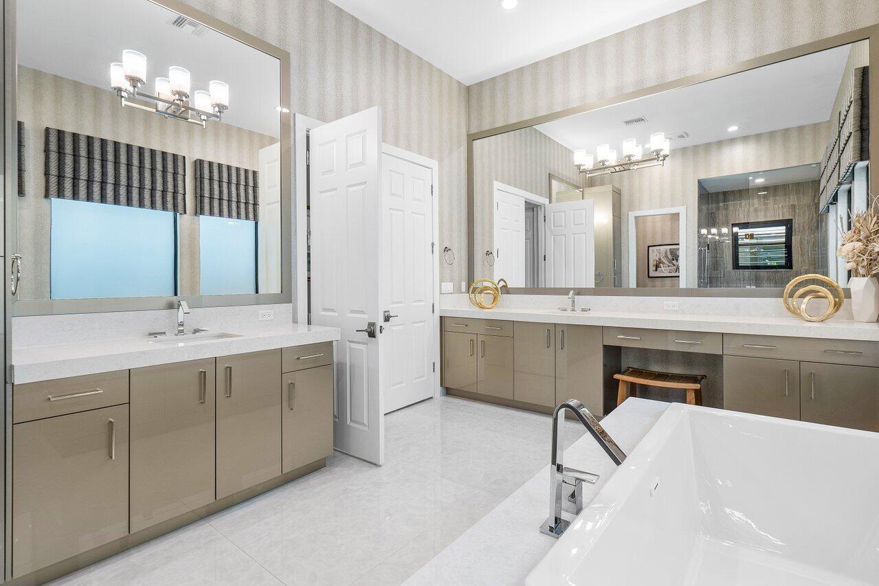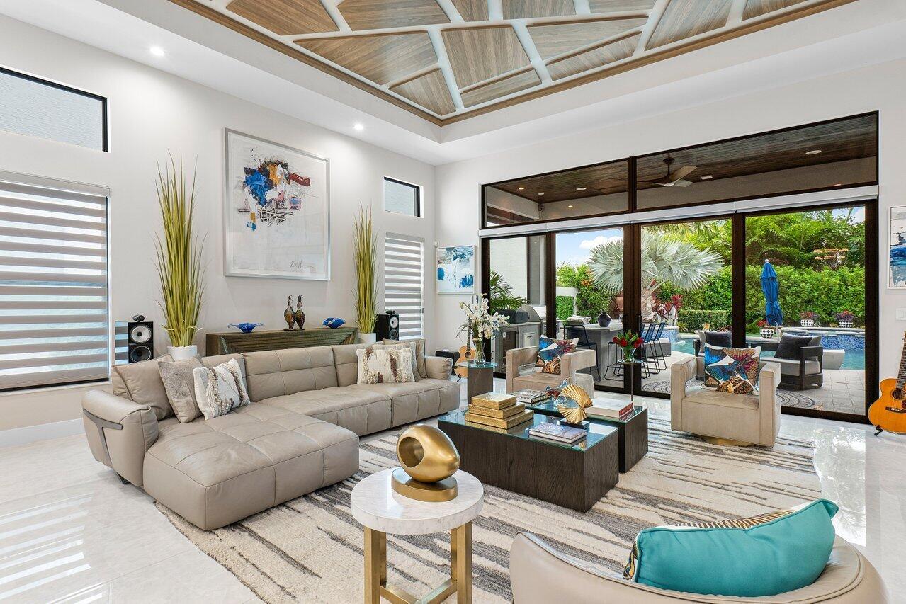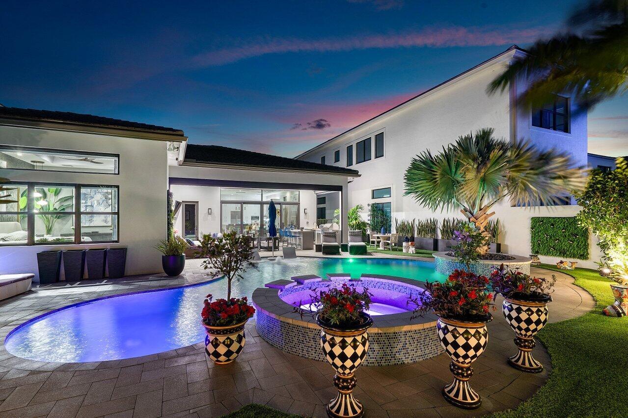 Introducing this exquisite contemporary Sevilla model, nestled within the prestigious Boca Bridges, where luxury living meets chic elegance. This trophy property offers a sleek, expansive design with nearly 3,300 square feet of meticulously crafted living space, showcasing an impressive level of detail throughout. The home features extensive millwork and designer wall coverings, adding a touch of warmth and sophistication to every room. The thoughtful layout and high-end finishes create an atmosphere of refined luxury and comfort, making this home a true standout. Featuring three spacious en-suite bedrooms, a stylish powder room, and a beautifully designed den/office, complete with custom built-ins, offering an elegant and functional space for work or relaxation. The open floor plan