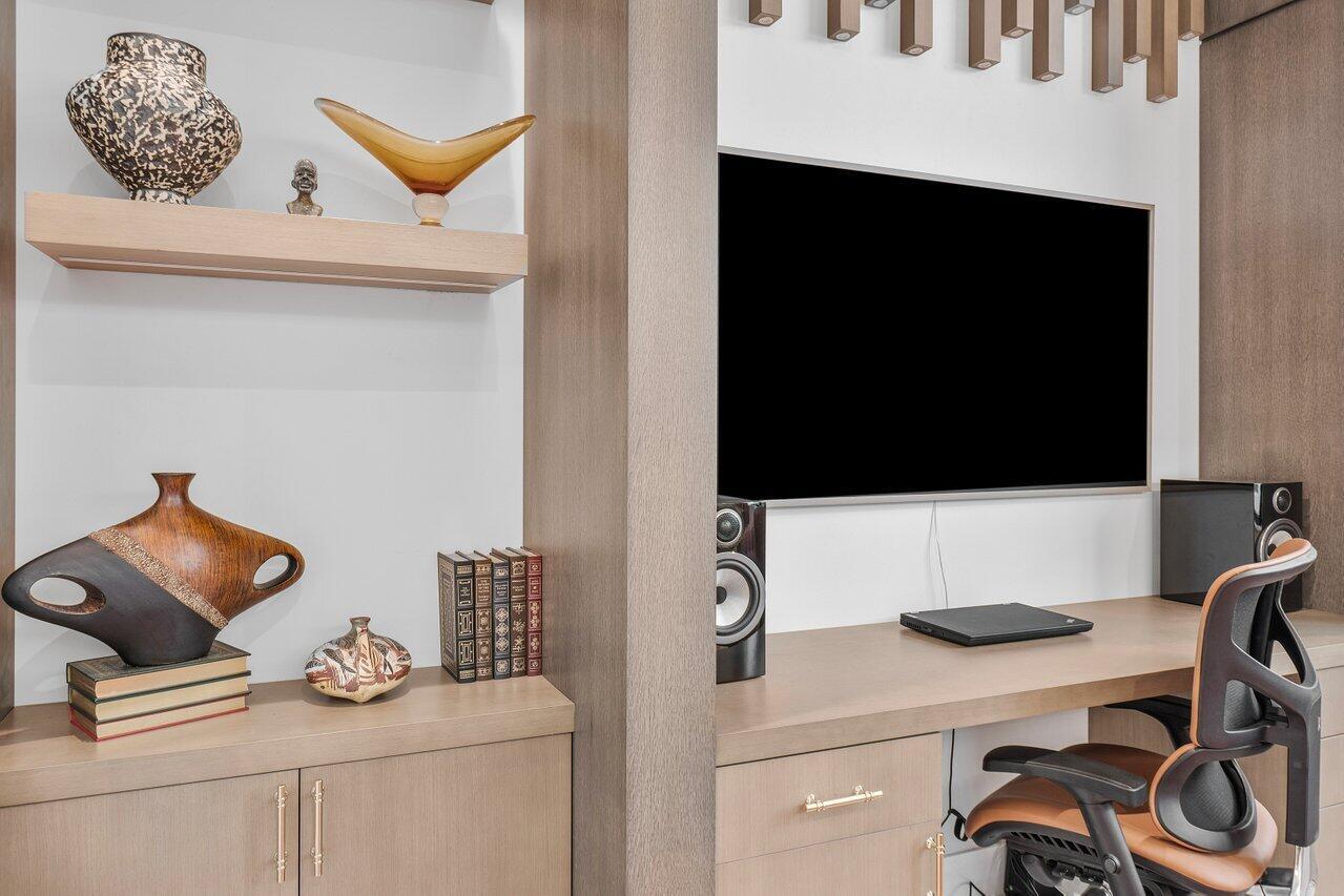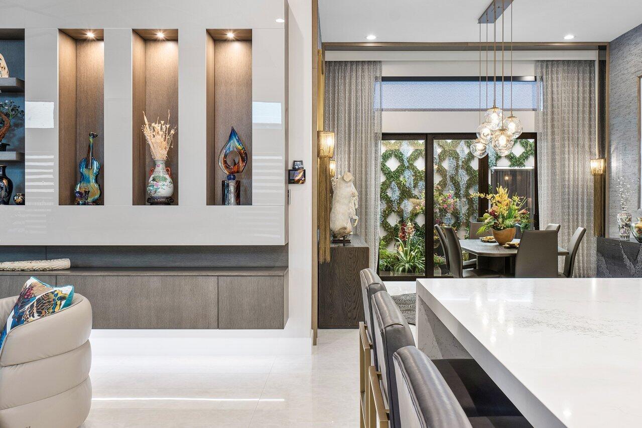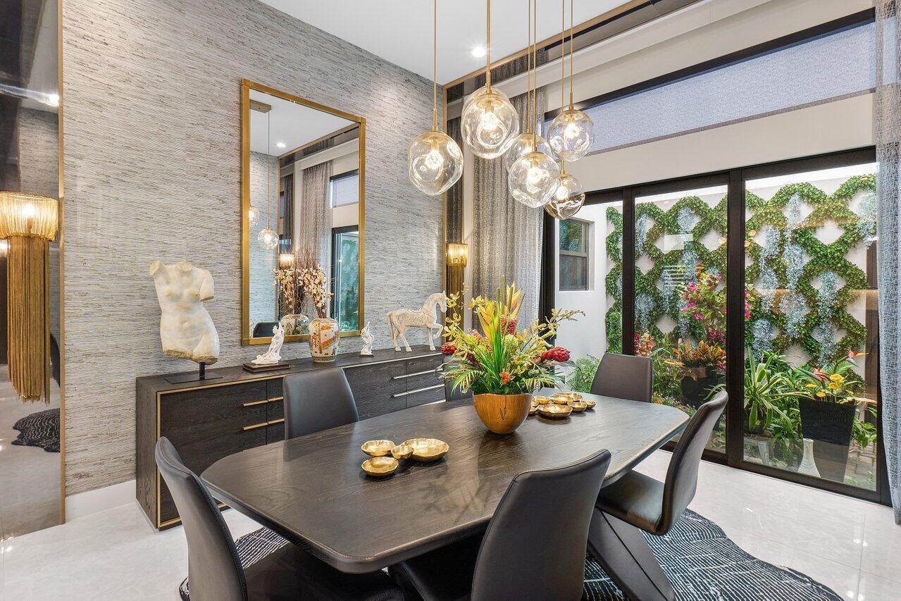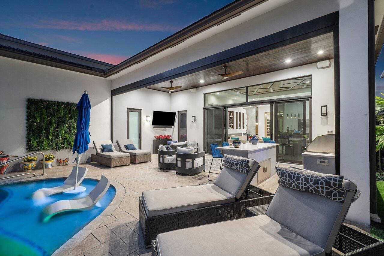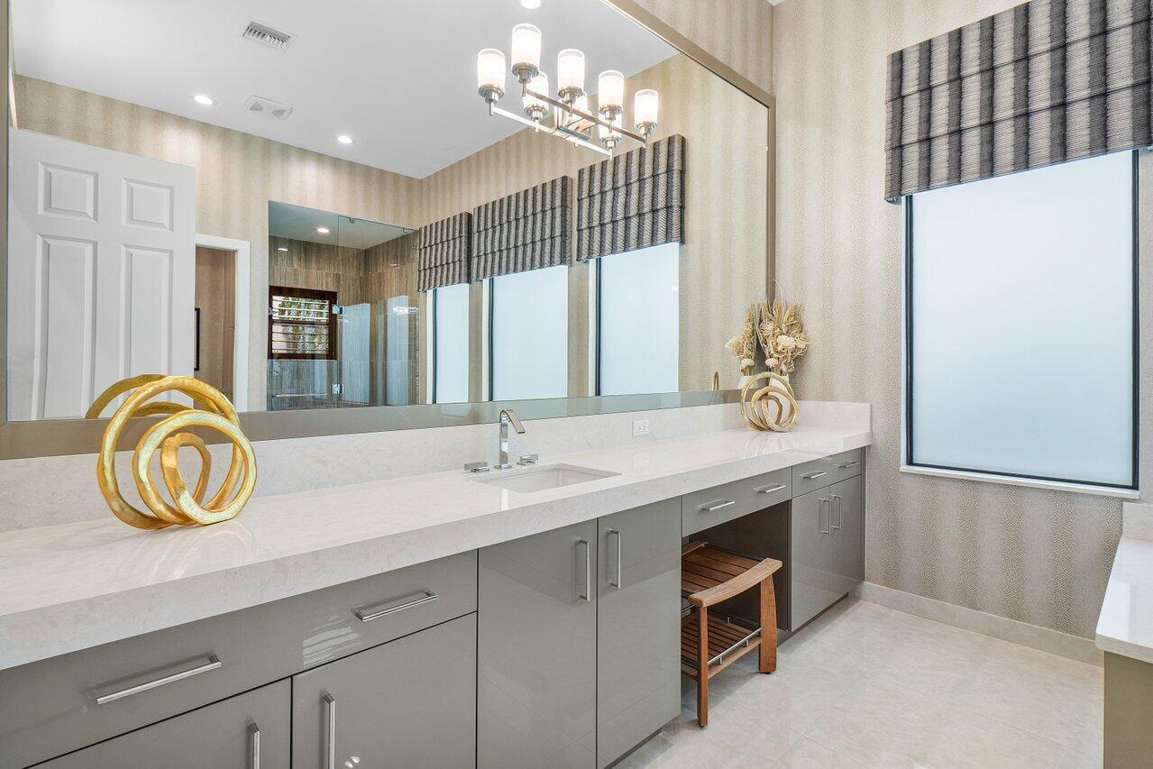 Introducing this exquisite contemporary Sevilla model, nestled within the prestigious Boca Bridges, where luxury living meets chic elegance. This trophy property offers a sleek, expansive design with nearly 3,300 square feet of meticulously crafted living space, showcasing an impressive level of detail throughout. The home features extensive millwork and designer wall coverings, adding a touch of warmth and sophistication to every room. The thoughtful layout and high-end finishes create an atmosphere of refined luxury and comfort, making this home a true standout. Featuring three spacious en-suite bedrooms, a stylish powder room, and a beautifully designed den/office, complete with custom built-ins, offering an elegant and functional space for work or relaxation. The open floor plan