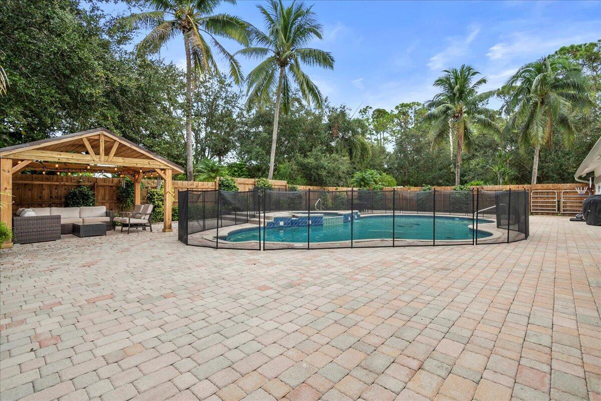 Don't miss this opportunity to own a unique, beautifully updated home in popular Acreage! This solidly built 4-bedroom, 3-bath home w/ a 2-car garage features a spacious pool with spa & waterfall, a large entertainment gazebo, and a fully fenced, landscaped yard w/ mature oak & fruit trees. Upgrades include a 2018 roof with extra foam insulation, new water heater, impact windows, impact solar tubes for natural light, vaulted ceilings, a spacious kitchen w/pull-out drawers, Corian countertops, stainless steel appliances, a wood-burning fireplace, French doors, spacious Loft, & a cabana bath. With ample space for your boat, RV, or horses, and a sprinkler system on well water, this property is ready to impress. Conveniently located near shopping, entertainment, & highways.