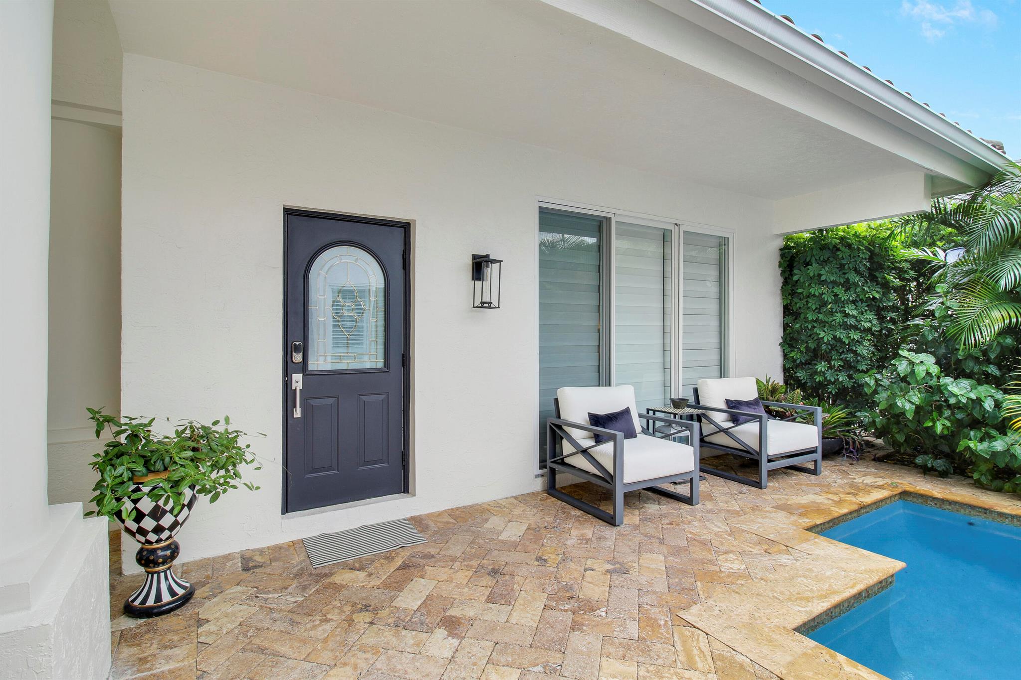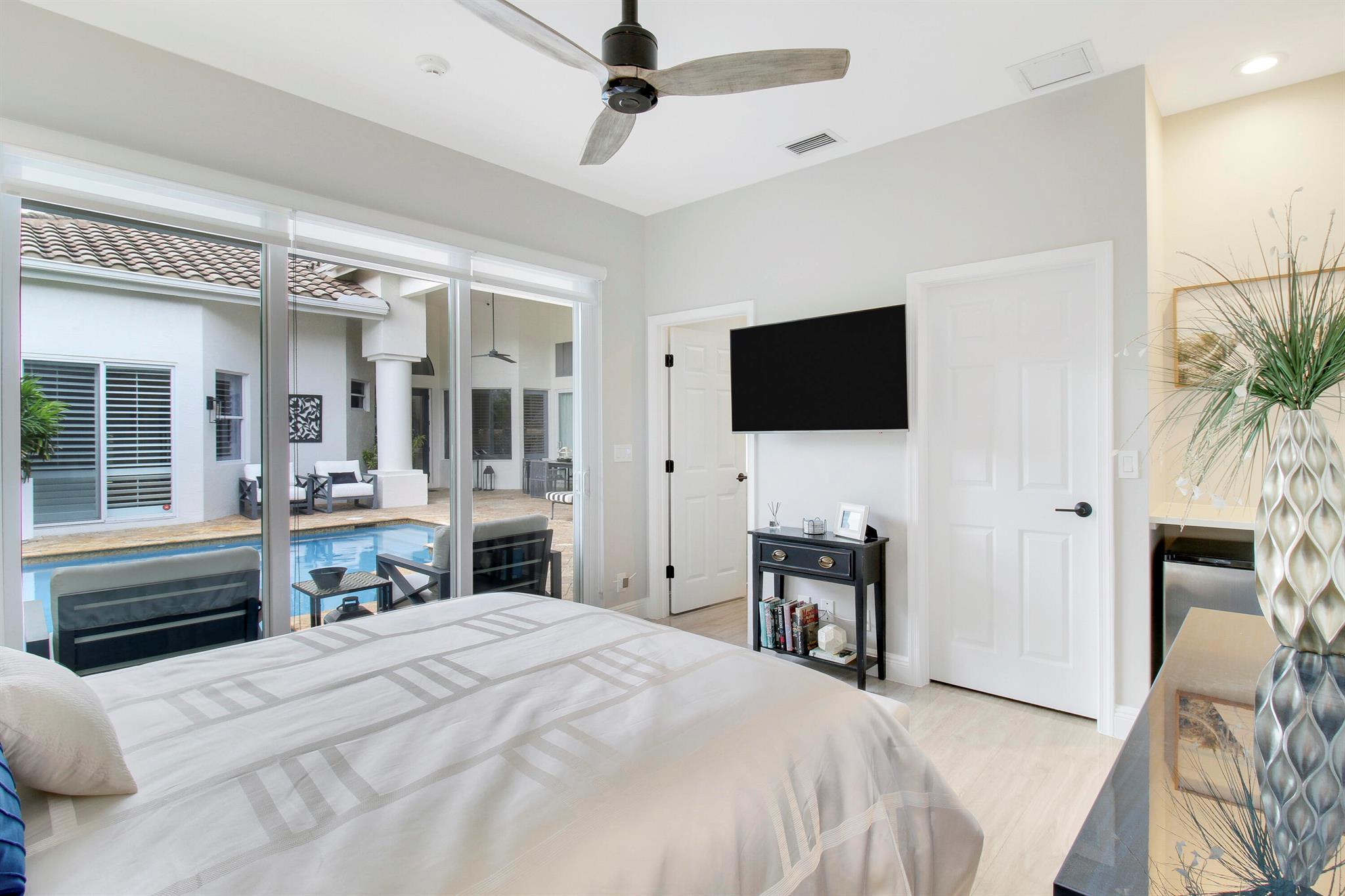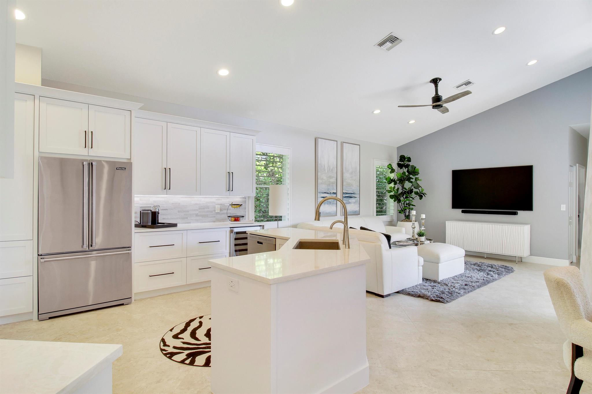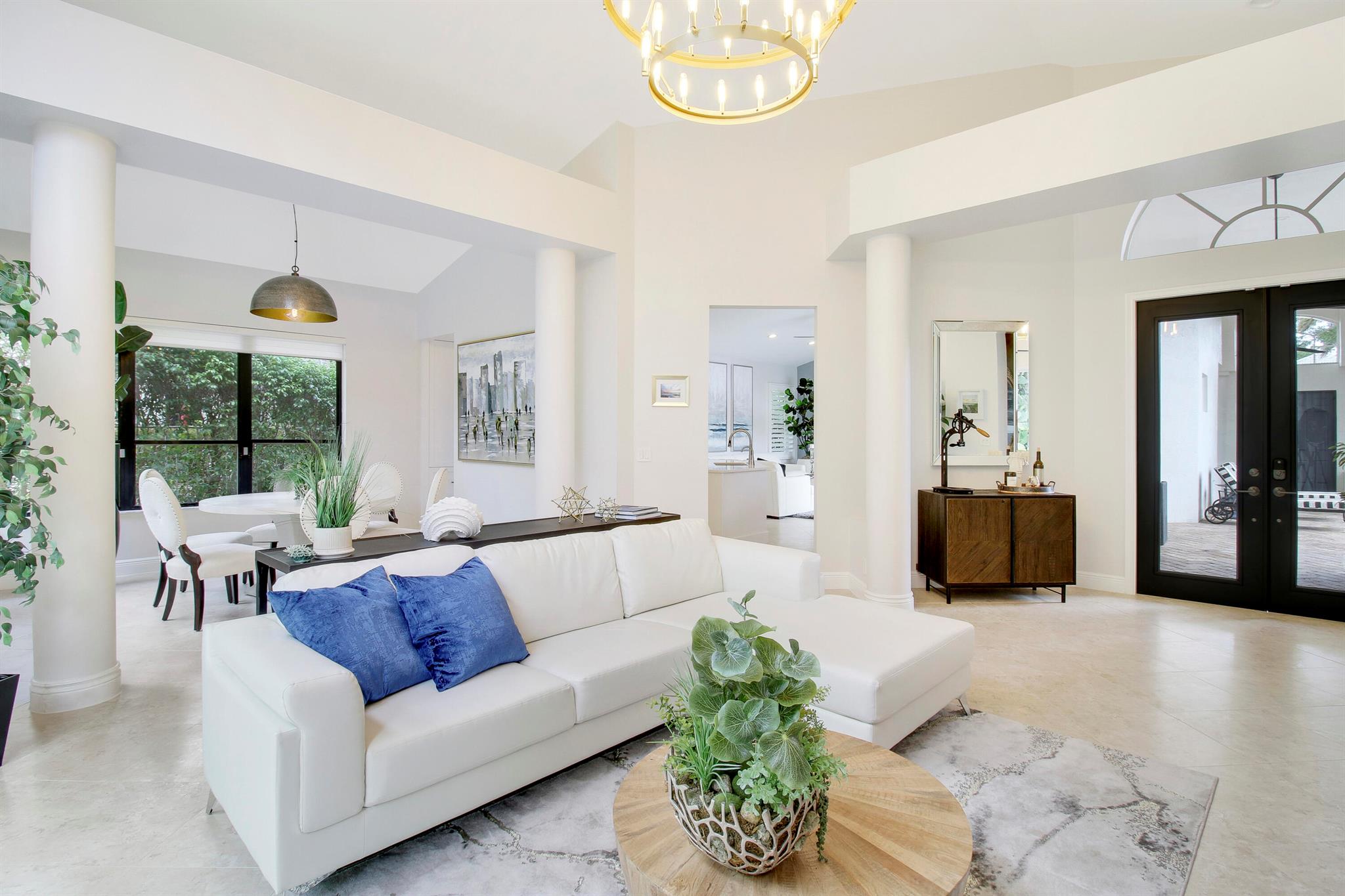 Stunning & private courtyard home is the desired community of La Corniche. No expense has been spared. Open floor plan, brand new kitchen, induction cooktop, stainless steel appliance Viking refrigerator, wine bar. Eat in kitchen, open family room. Amazing primary bedroom, and bath. Walk in shower free standing tub, his, and her sinks. 2 large walk-in -closets. State of the art sound systems throughout the home. New diamond bright pool, salt, /heated pool. new pool equipment. impact sliders. Roof 2015. 2023 impact garage doors, new garage epoxy floor. New landscaping, front courtyard, and backyard.