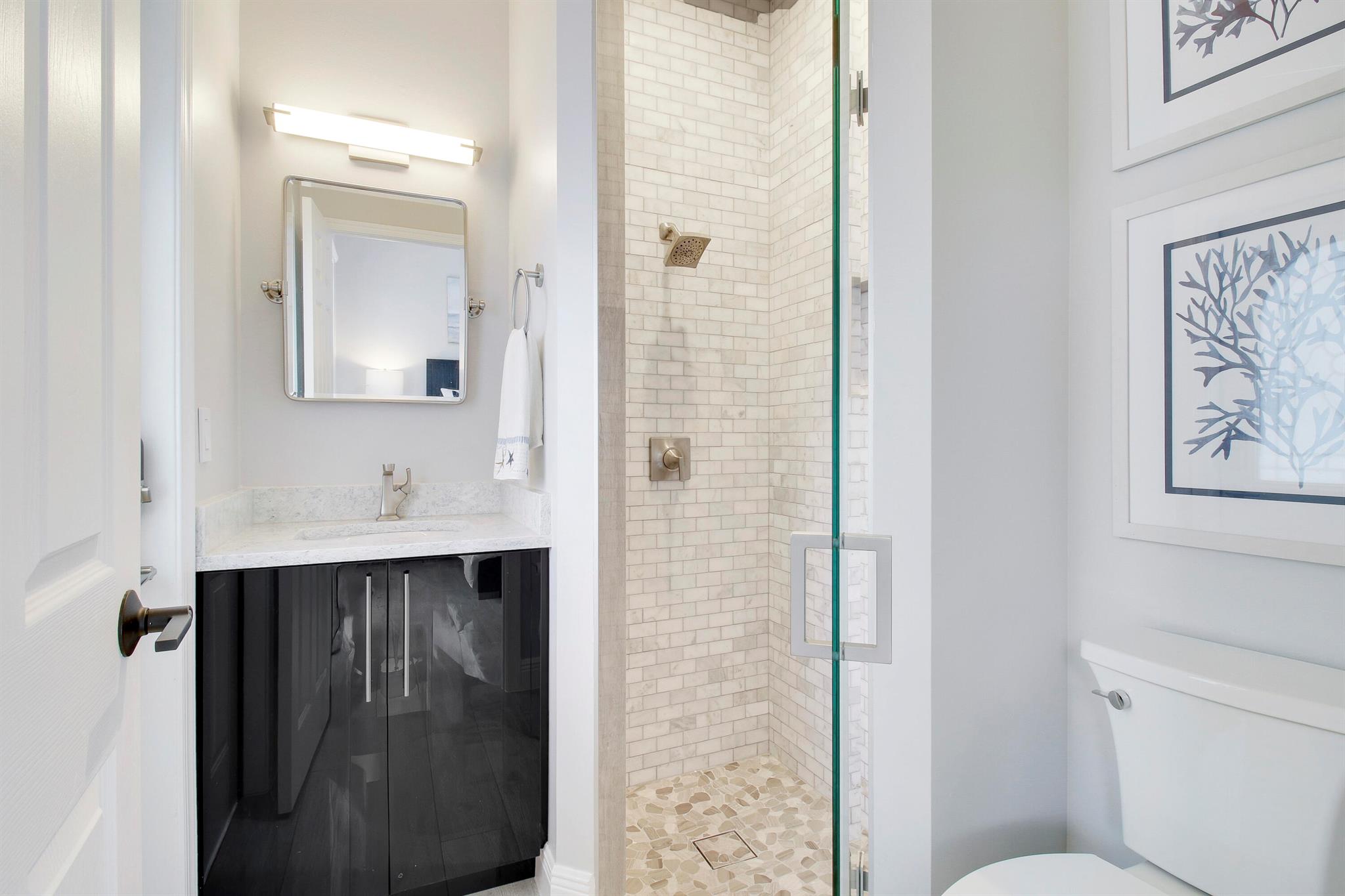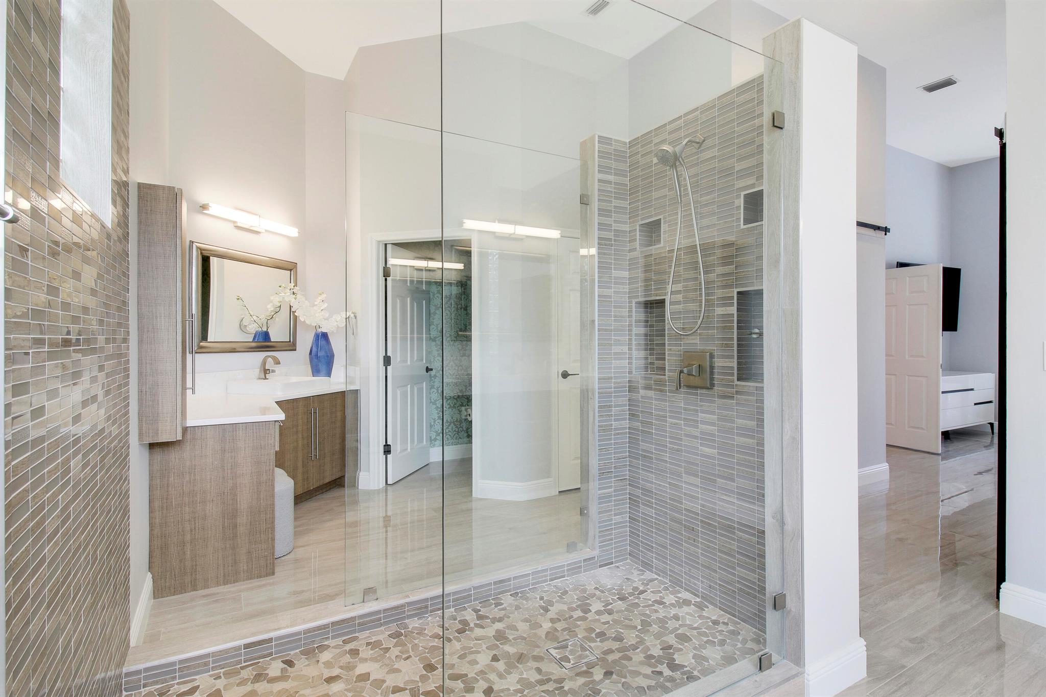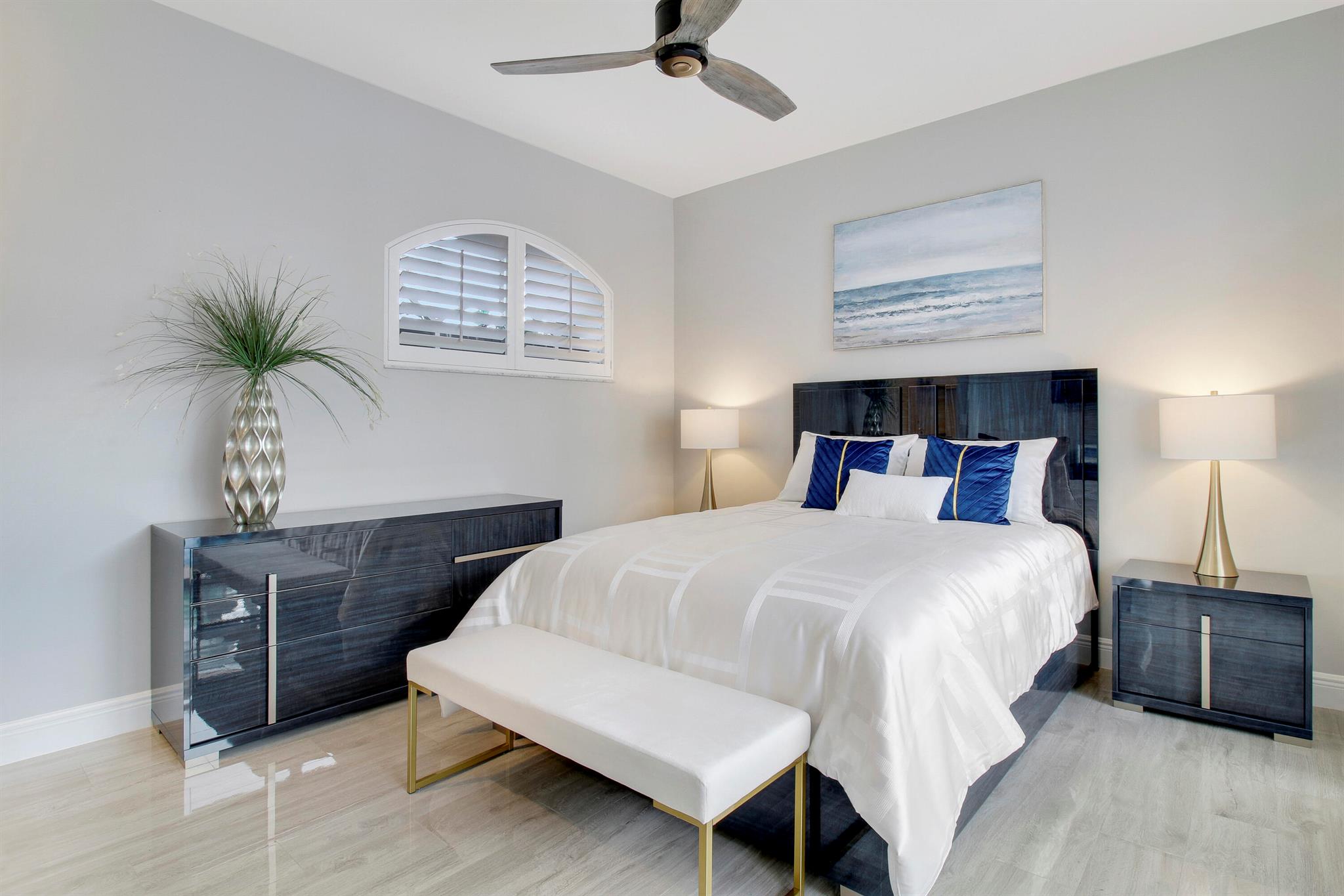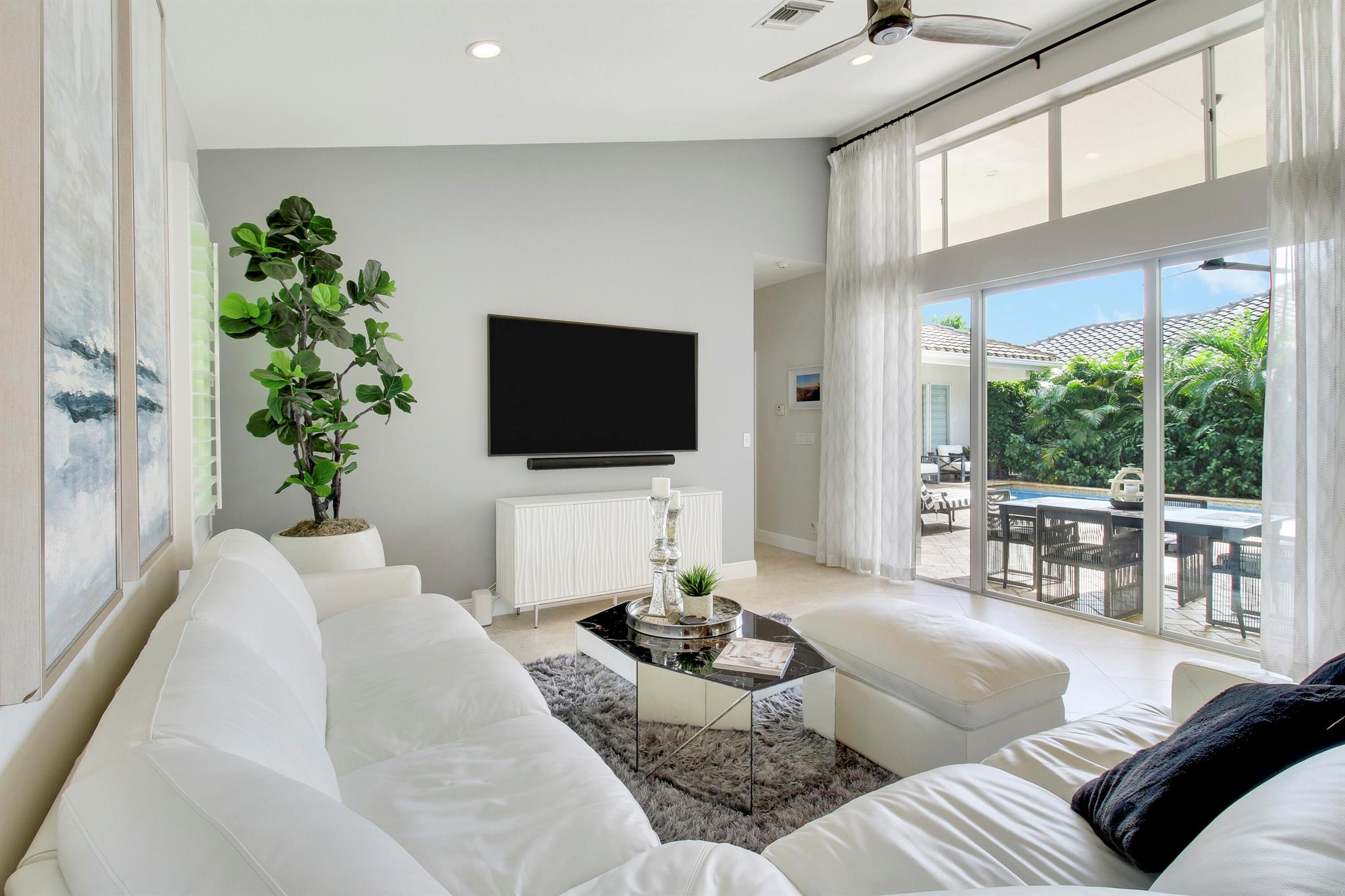 Stunning & private courtyard home is the desired community of La Corniche. No expense has been spared. Open floor plan, brand new kitchen, induction cooktop, stainless steel appliance Viking refrigerator, wine bar. Eat in kitchen, open family room. Amazing primary bedroom, and bath. Walk in shower free standing tub, his, and her sinks. 2 large walk-in -closets. State of the art sound systems throughout the home. New diamond bright pool, salt, /heated pool. new pool equipment. impact sliders. Roof 2015. 2023 impact garage doors, new garage epoxy floor. New landscaping, front courtyard, and backyard.