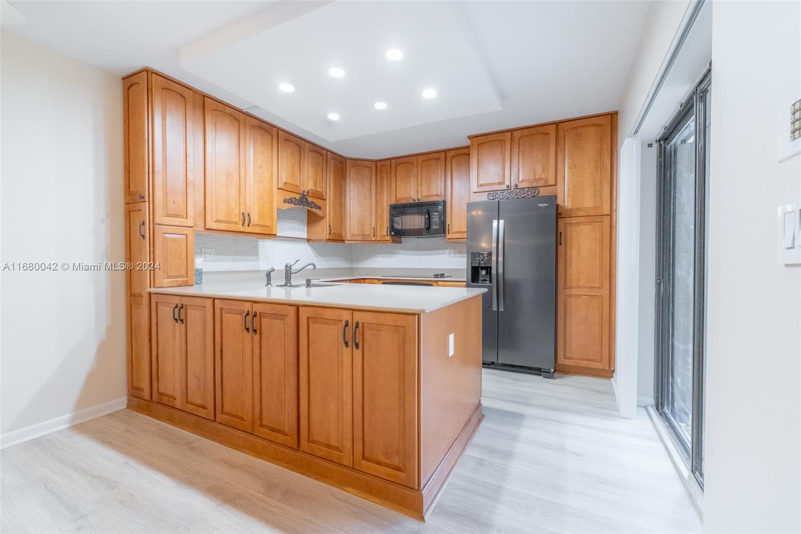 This beautiful lakefront 3-bed, 2.5-bath corner townhome in The Lakes at Boca Rio combines elegance and comfort with exceptional views and updates. A tiled, screened-in porch with an outdoor heated shower welcomes you. Tankless water heater for energy efficiency. Inside, the first floor features new tile, a modern kitchen with soft-close drawers, a half bath on first floor with washer/dryer. First Floor bedroom with Hurricane impact sliding door. Accordion Hurricane Shutters in rest of house. Upstairs, the lakeview master suite offers two walk-in closets, Roman tub, shower, and double sinks. The guest room has an en suite bathroom and a large balcony.