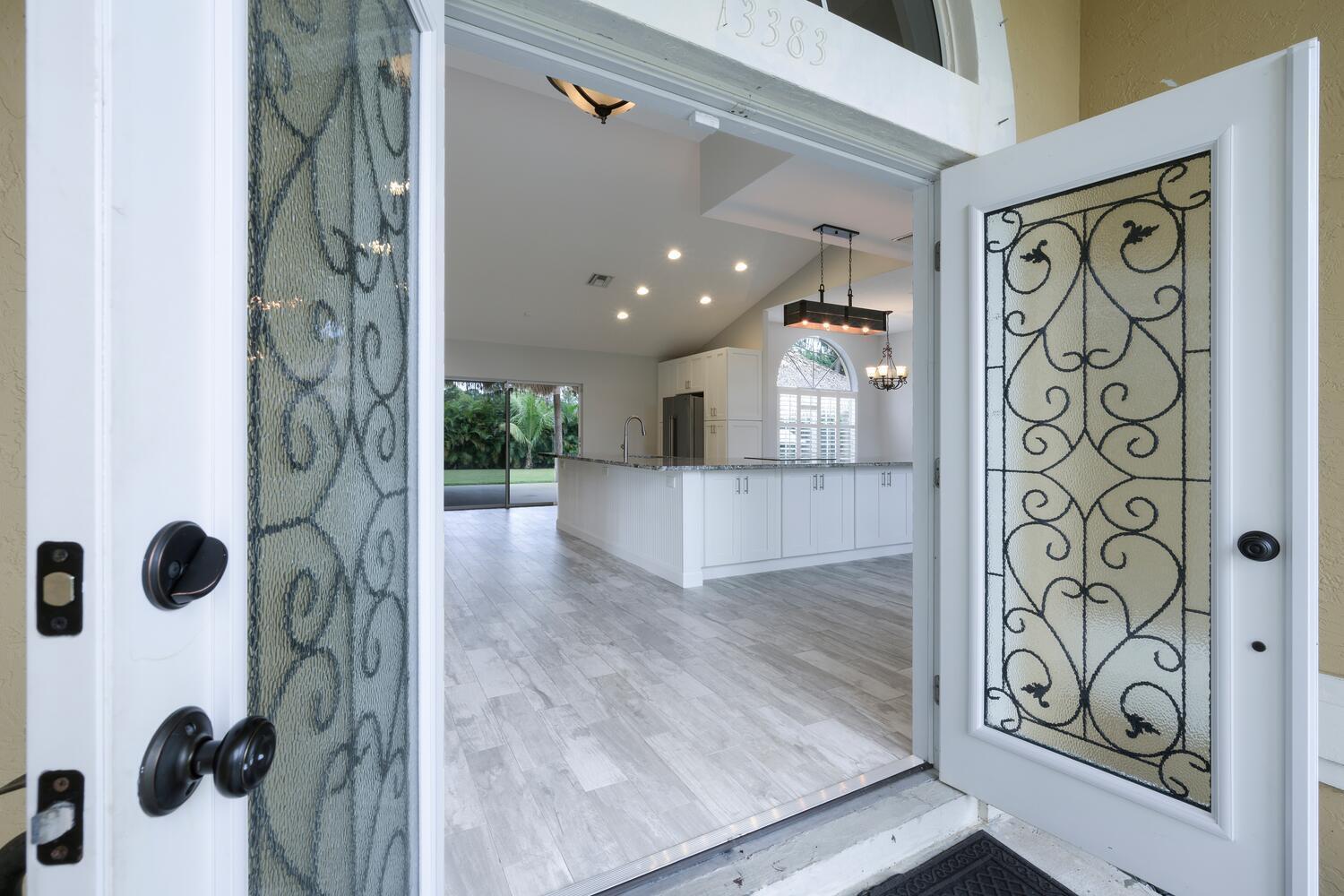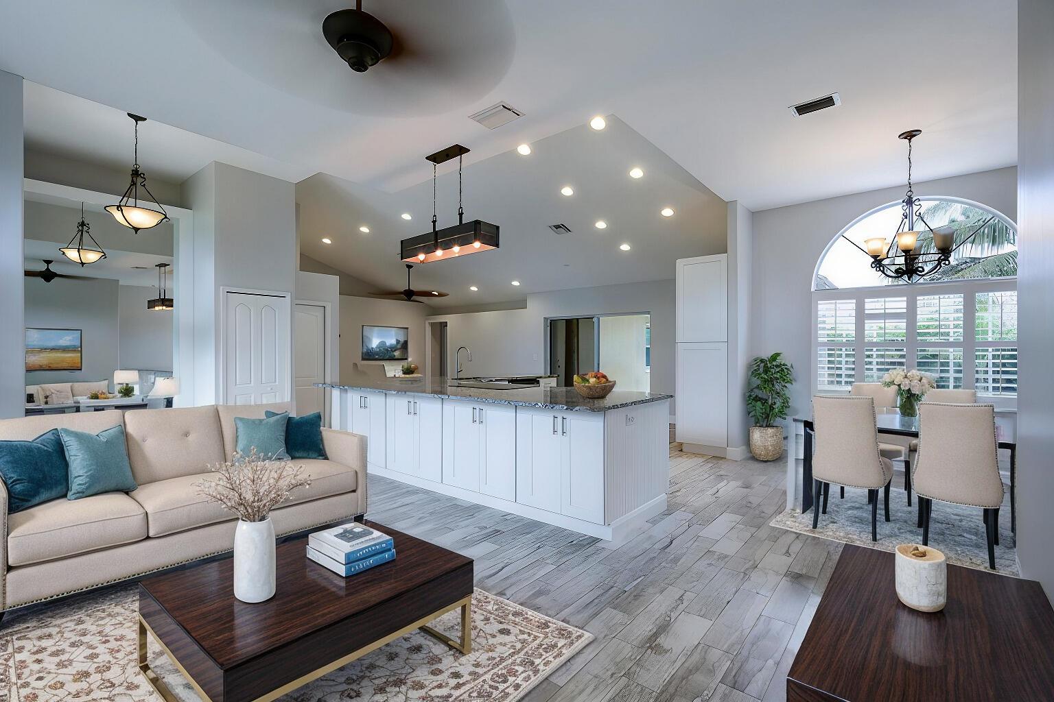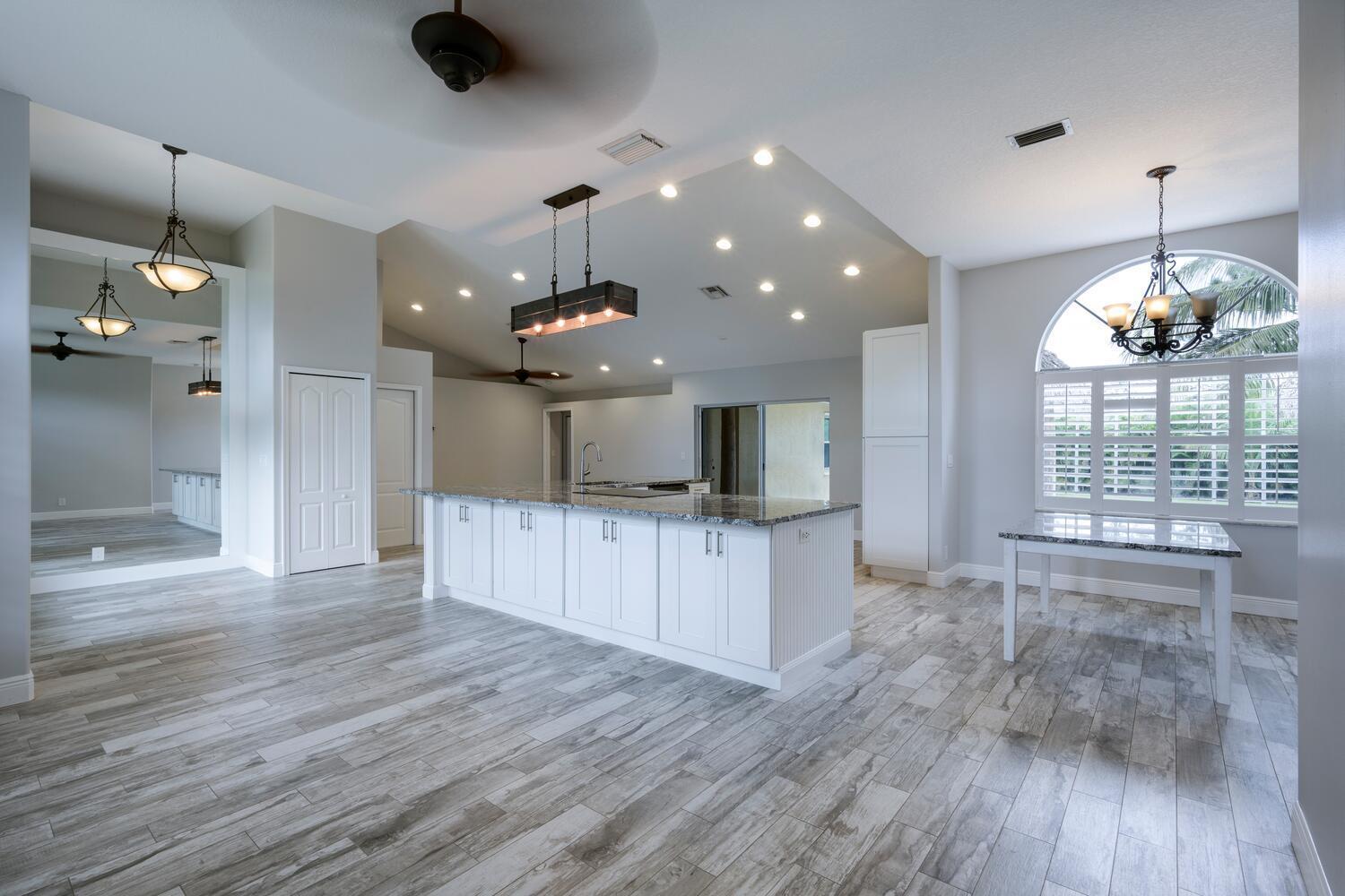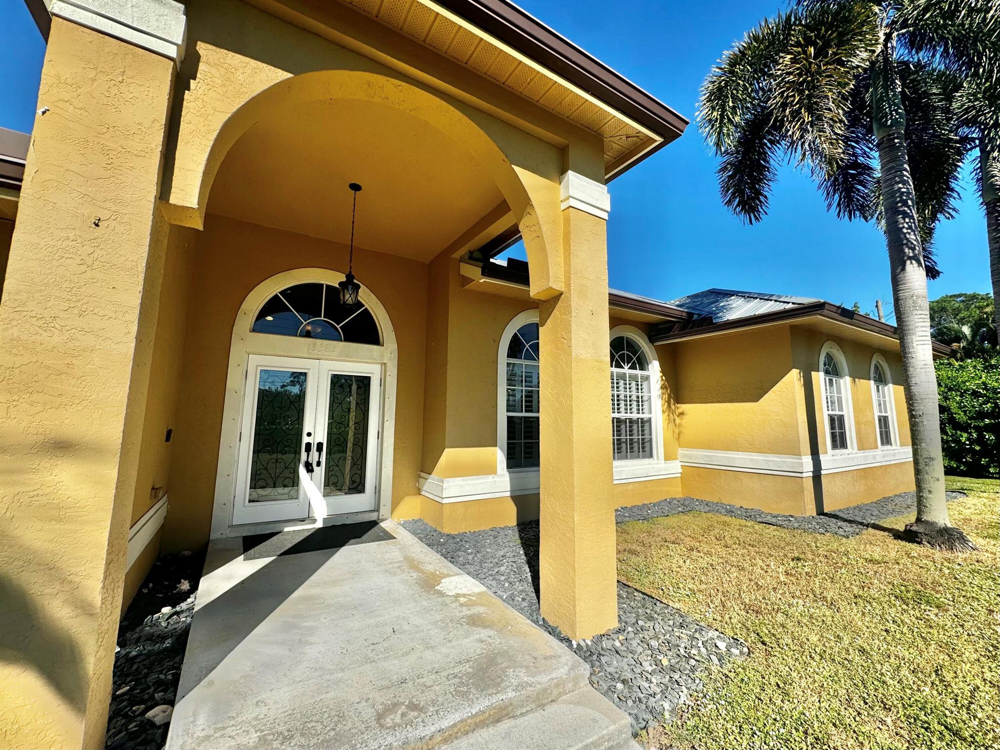 WELCOME HOME to this beautifully upgraded 4 bedroom 2 bathroom house nestled on 1.15 acres in Loxahatchee! Spacious with a newer metal roof installed in 2018 and sleek renovations throughout, this open-concept home is designed for modern living and entertainment. This home features an expansive chef's kitchen with white shaker cabinetry, granite countertops, a cooktop, and brand-new stainless steel appliances.The home's split floor plan offers privacy and functionality, including multiple living spaces, enhanced by vaulted ceilings, ceramic plank tiles throughout, and abundant natural light. The luxurious master suite is a private retreat with a spa-inspired bathroom, complete with a large soaking tub, rainfall shower, granite countertop, a custom mirror, and stacked stone accents.