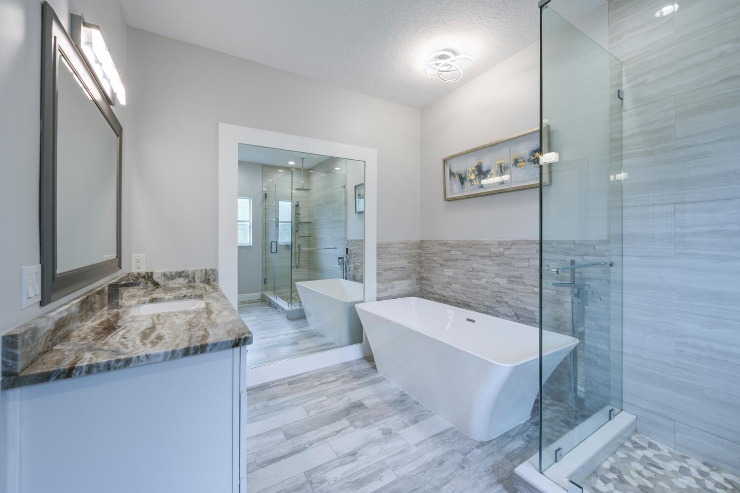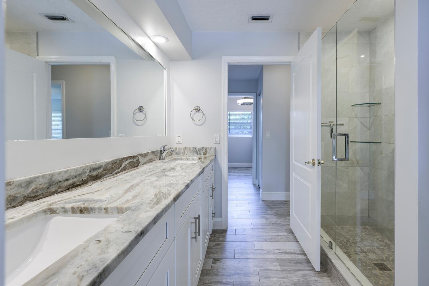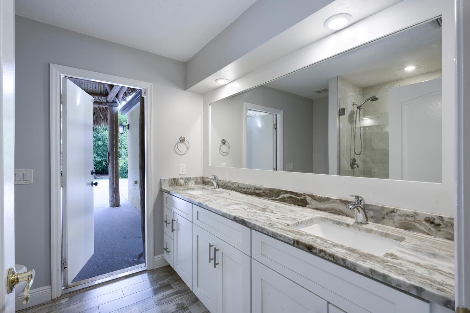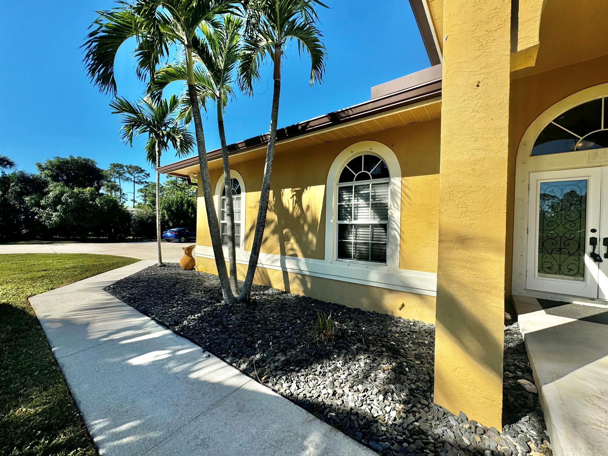 WELCOME HOME to this beautifully upgraded 4 bedroom 2 bathroom house nestled on 1.15 acres in Loxahatchee! Spacious with a newer metal roof installed in 2018 and sleek renovations throughout, this open-concept home is designed for modern living and entertainment. This home features an expansive chef's kitchen with white shaker cabinetry, granite countertops, a cooktop, and brand-new stainless steel appliances.The home's split floor plan offers privacy and functionality, including multiple living spaces, enhanced by vaulted ceilings, ceramic plank tiles throughout, and abundant natural light. The luxurious master suite is a private retreat with a spa-inspired bathroom, complete with a large soaking tub, rainfall shower, granite countertop, a custom mirror, and stacked stone accents.