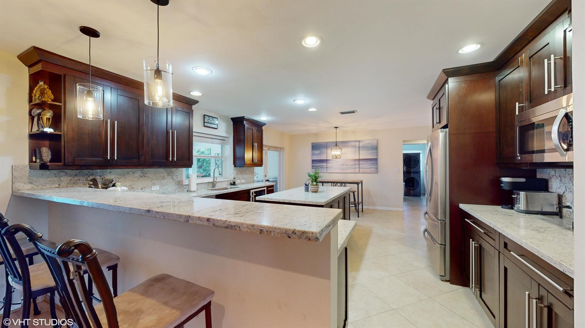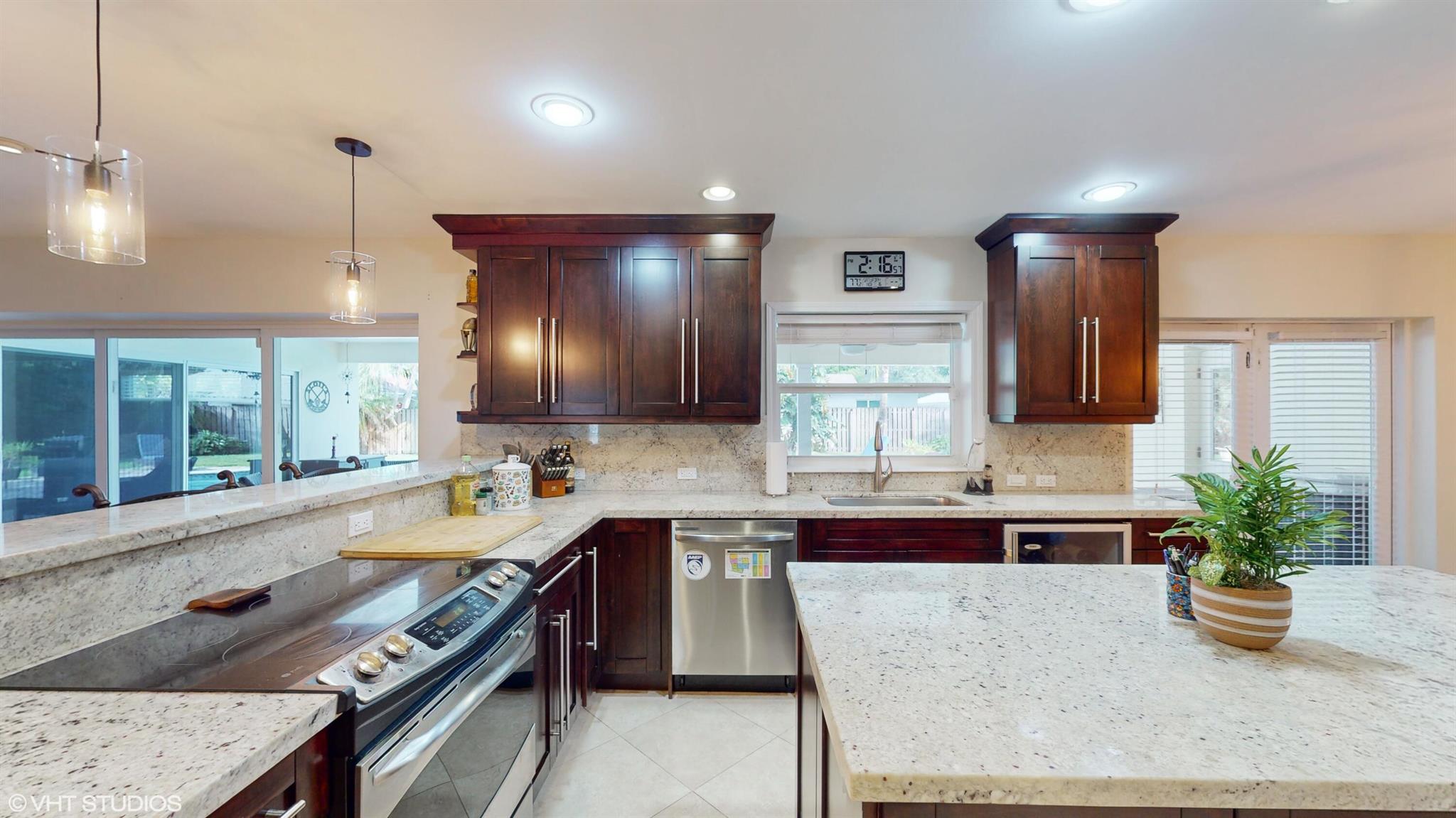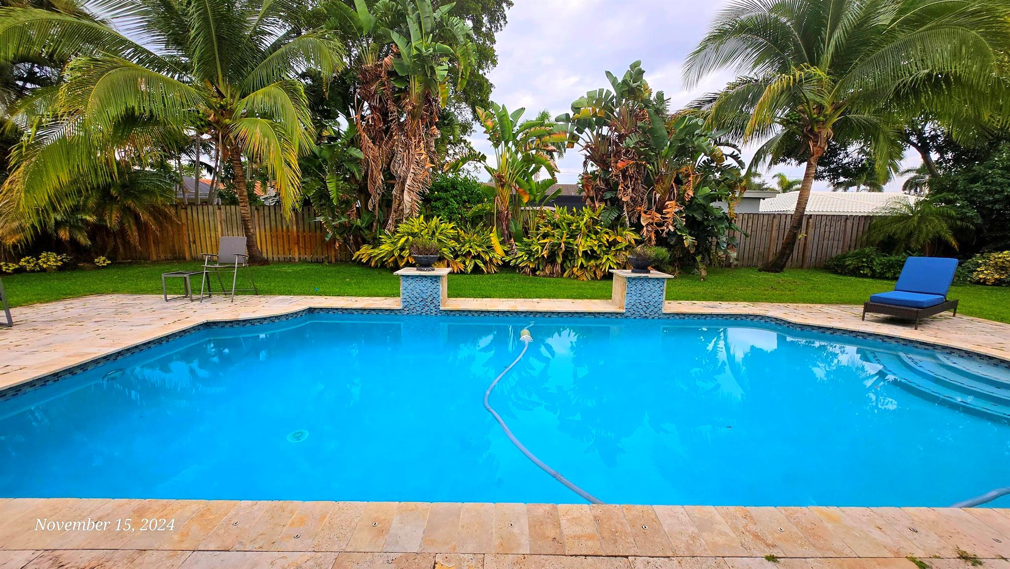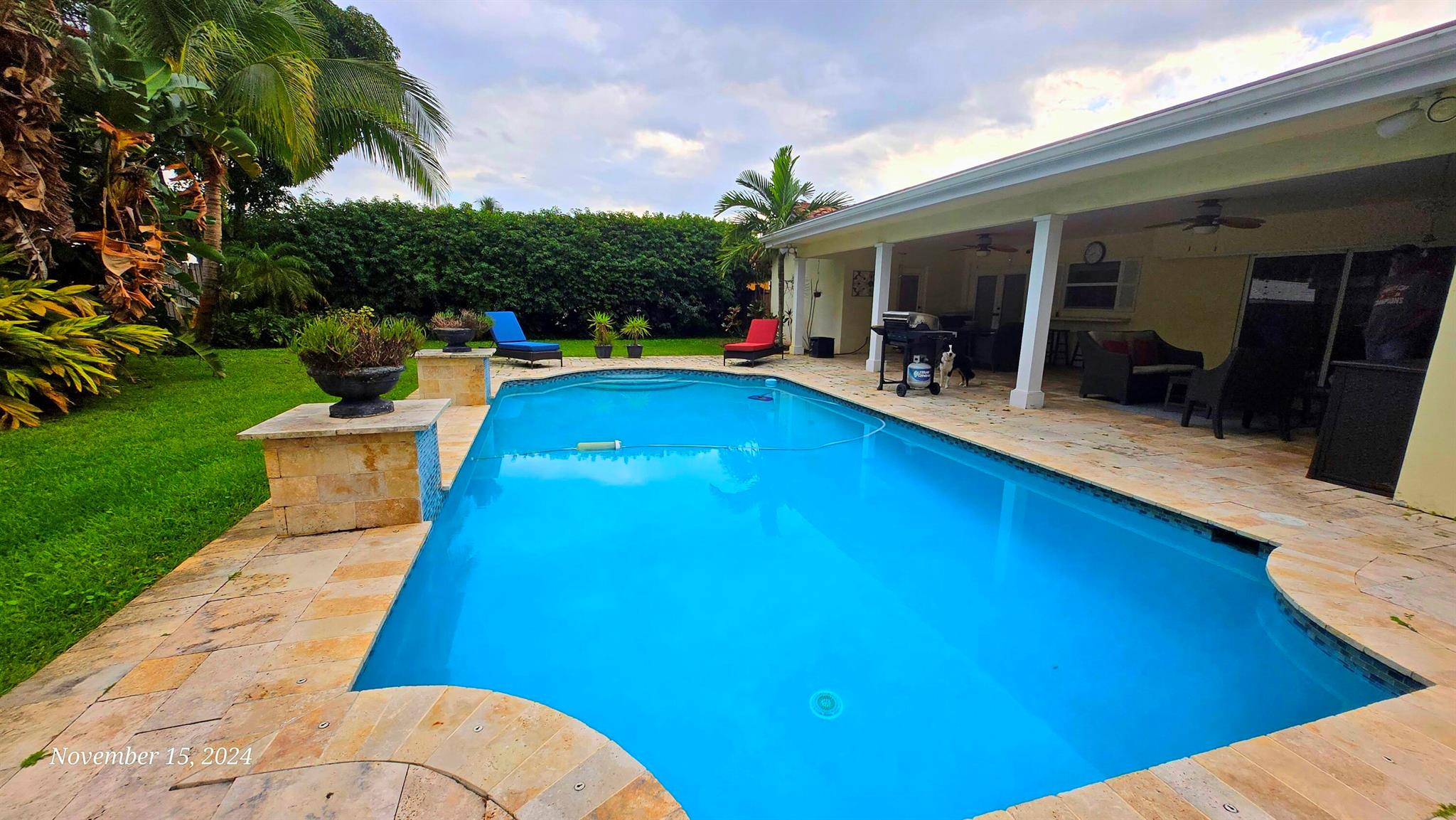 Located in the Highly sought after private community of El Dorado Estates, this spacious home on 1/3 acres offers a prime location that features 4 bedroom 3 bath retreat private resort style pool, fenced in spacious backyard. Newer kitchen with large eat in area, newer master bath, 2 car garage + large circular driveway. Private office, formal dining room - come see this upgraded, one of a kind floor plans! Newer pool/deck & newer pump, master bath, gutters, landscaping lighting, shutters. Equipped with tankless water heater. The A/C 2023, new dishwasher 2024, washer and dryer 2021. Impact windows back all sides, patio doors plus built in panels for the front 3 windows. By appointment only, schedule online, or speak with the listing agent.