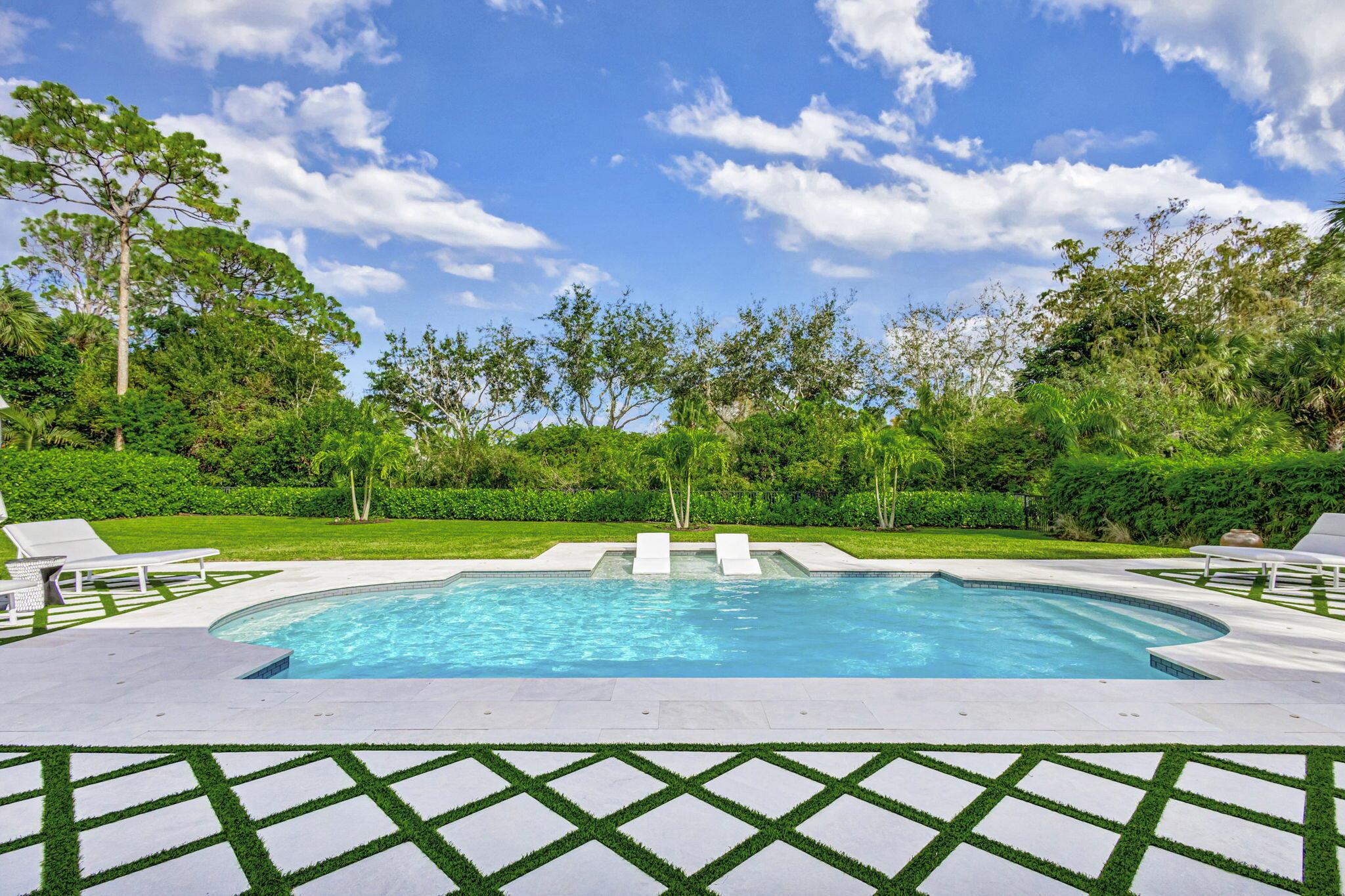 Stunning, chic renovated contemporary home nestled on a lush, half-acre lot, offering a perfect blend of style and sophistication. Upon entering this home you'll be immediately captivated by the abundant natural light streaming through 16-foot floor-to-ceiling windows. The home exudes striking beauty and suburb meticulous design of every room. High-end finishes and thoughtful details abound, including porcelain tile flooring throughout, hurricane-impact glass windows, Brazilian walnut cabinetry, Thermador appliances, a wet bar, and a 2020 roof. The home also features an integrated indoor/outdoor Sonos sound system and elegant architectural details at every turn. Covered loggias offer serene views of the salt water heated pool and meticulously landscaped gardens in the spacious private