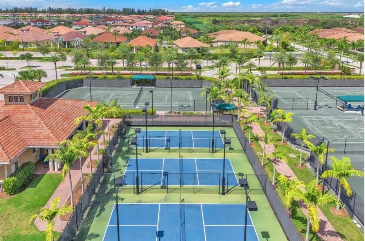 Never Available! Immaculate Lakefront Bianca Model with Guest House! Live the 55+ Active Lifestyle in Four Seasons At Parkland. 4 Bedrooms, 3 1/2 baths with over 3,900 sq feet of living space. 3 Car garage w epoxy floor. Designer decorated w/ over $150,000 of upgrades. Huge white shaker gourmet Kitchen with additional built in bar with wine fridge. Soaring 12 foot ceilings throughout the home. Full impact windows and doors and newly built in 2023! Spa like primary bath with 11' shower. Tons of upgraded closet space. Natural gas cooktop, tankless hot water heater and clothes dryer. Fantastic community w 24,000 sq ft clubhouse and countless amenities including a Cafe, Fitness center, Ballroom, Craft room and more. 2 pools and hot tub to enjoy! Turnkey perfect. Hurry this one will not last!!