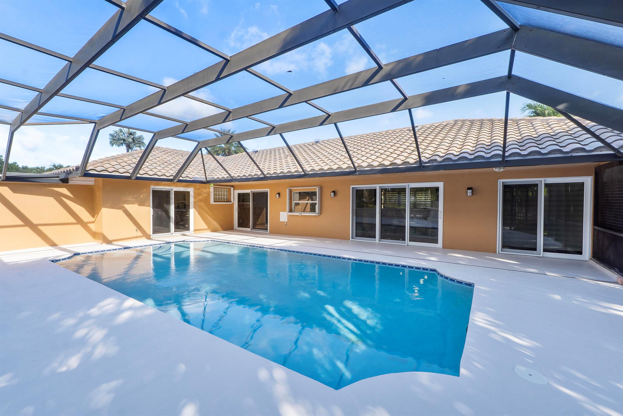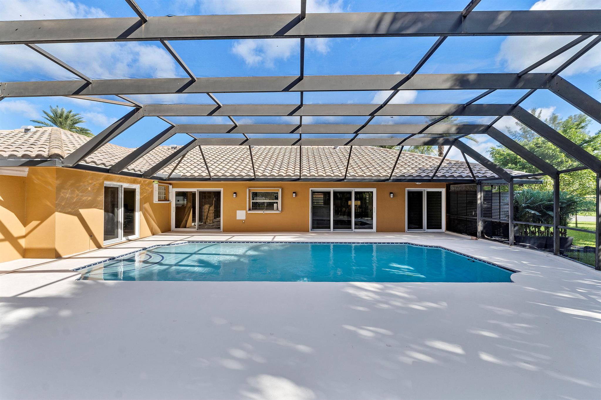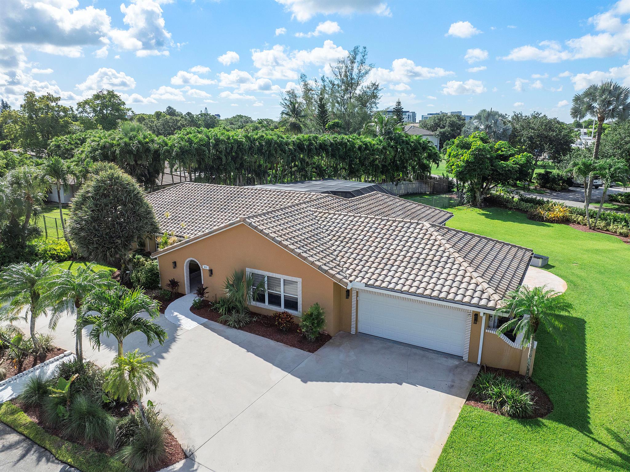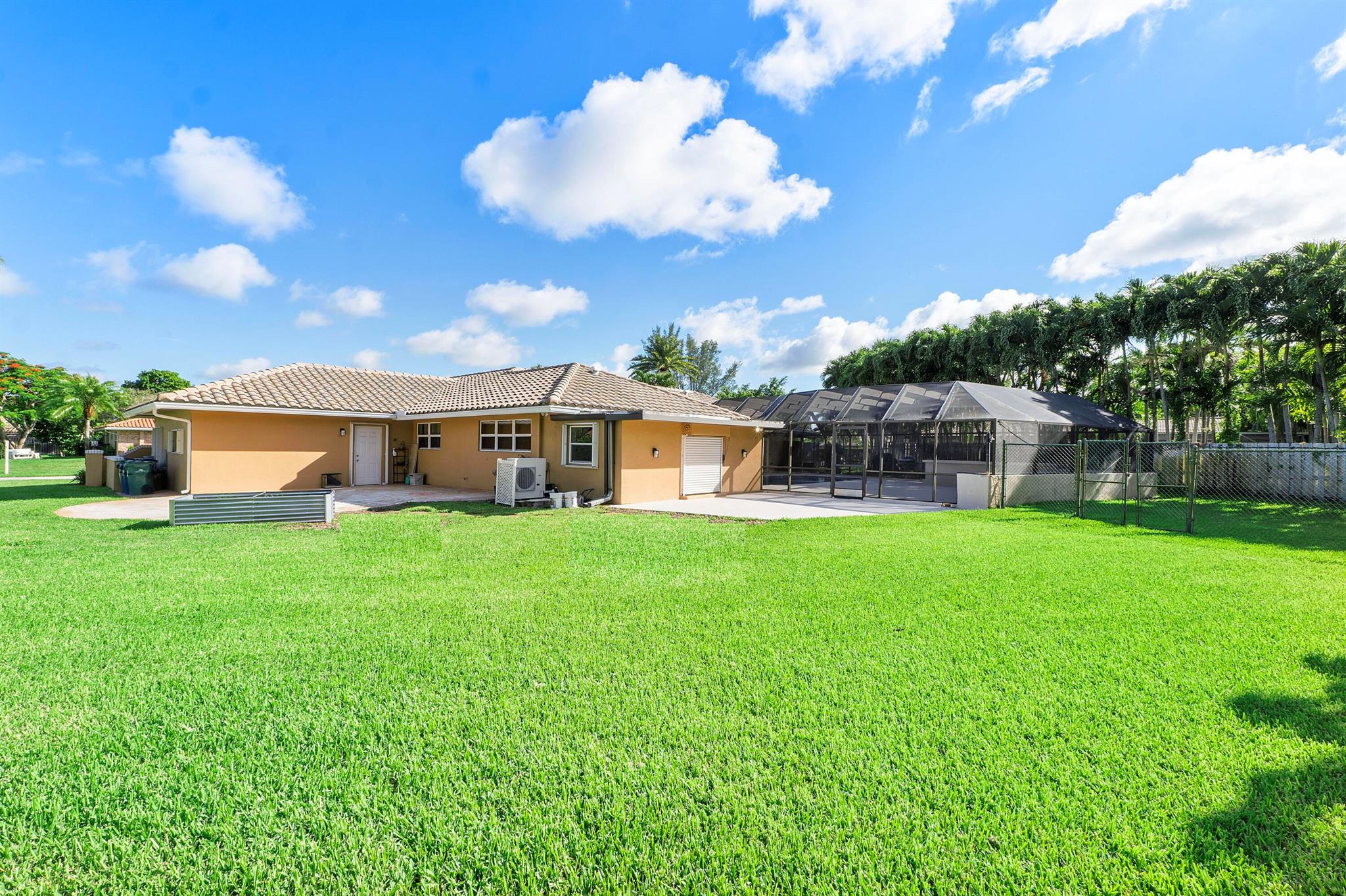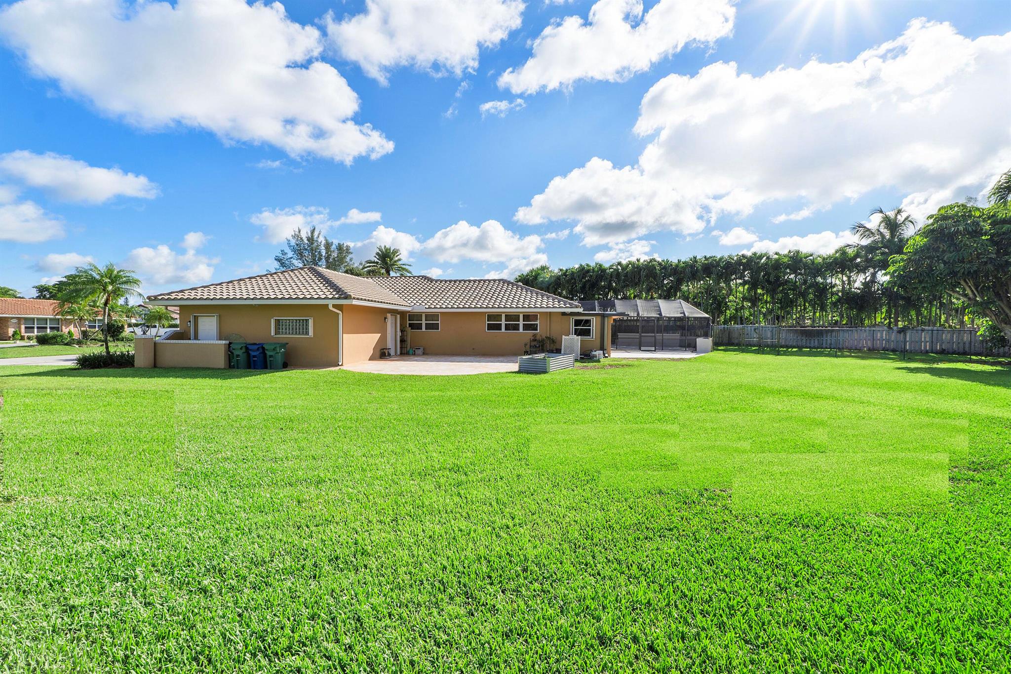 Rarely available Ranch style Estate in Coral Springs. Massive 27,674 sq.ft lot with NO HOA! offering 4 bedrooms, 3 bathrooms in a sprawling 3,065 sq.ft with screened-in pool. This cul-de-sac home was built for those wanting solitude, situated on a huge open oasis of land, where the lush manicured landscaping screams tropical Florida. Bring your furry friends too. They can exercise in the partially fenced side yard while you luxuriate in the Mansard-screened pool, and also pamper yourself in the outdoor shower spa. You may never shower inside your home again!Both the interior of the home and the surrounding yard represent space. Only two families have made this their home, and it's now looking for a third. No expense has been spared on the
