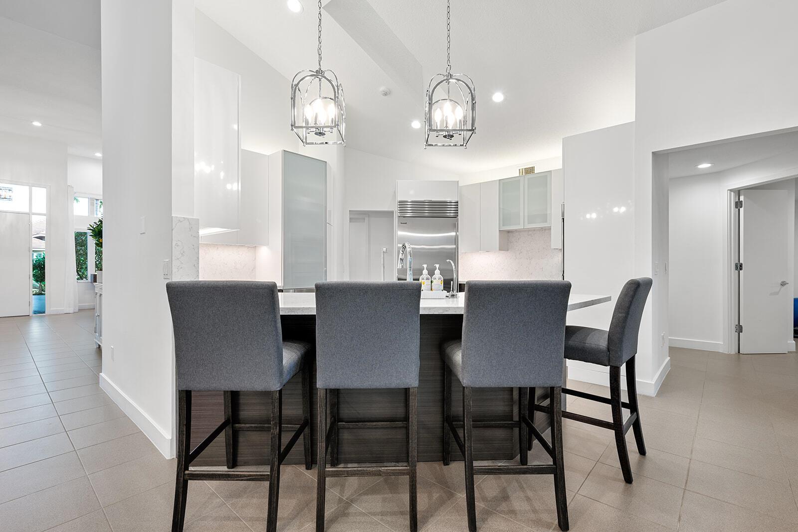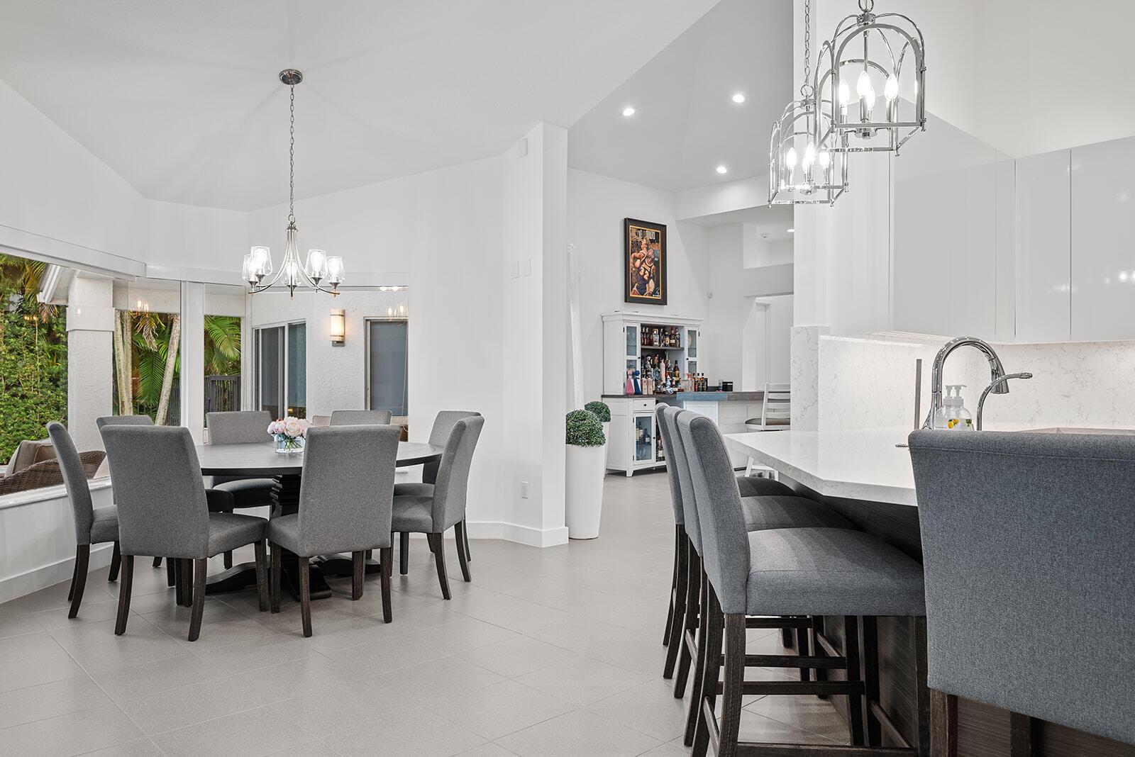 Located in Boca Raton's most prominent golf and country club, St Andrews Country Club, 17160 Northway Circle offers the perfect blend of luxury and comfort while offering breathtaking panoramic lake & golf course views. Spanning more than a 1/3 of an acre this furnished single story modern retreat with no step downs features 4,235 square feet of living space with 6 spacious bedrooms, 7 stylish bathrooms, home office & bonus room. This exquisite residence offers an exceptional blend of luxury and comfort, giving an unparalleled living experience with its sleek design and luxurious amenities. Step inside to a welcoming foyer that leads you into bright and open living space, perfect for both everyday living & entertaining. The open-concept living area is complemented by a state-of-